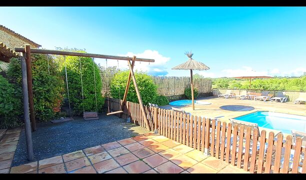 The garden is large, entirely fenced, spacious area of 3100m2, with various trees and plants, and shared between the different houses. In the garden you will find numerous activities/facilities.