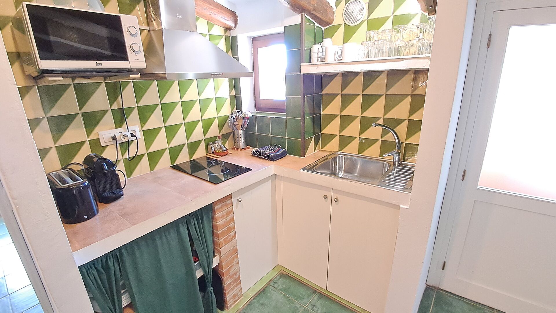 Can de Gato - El Rebost is a 60m2 apartment, located on the first floor on the property's farmhouse. It consists of an open, 17m2 combined kitchen-dining room. In the kitchen you will find a fridge / freezer, toaster, capsule coffee maker Nespresso and microwave. The dining room is airconditioned. You will also find a satellite TV and a fireplace.