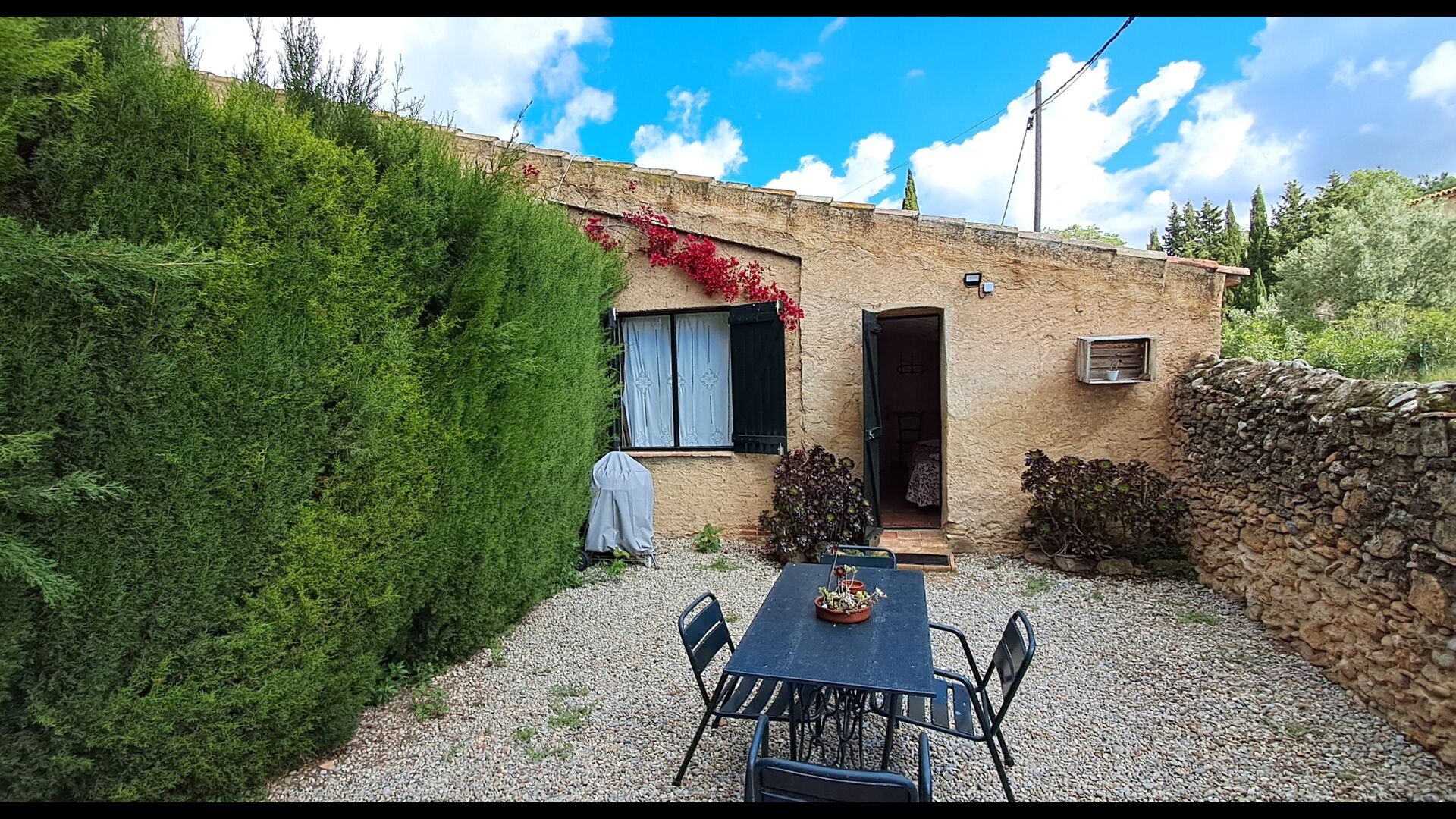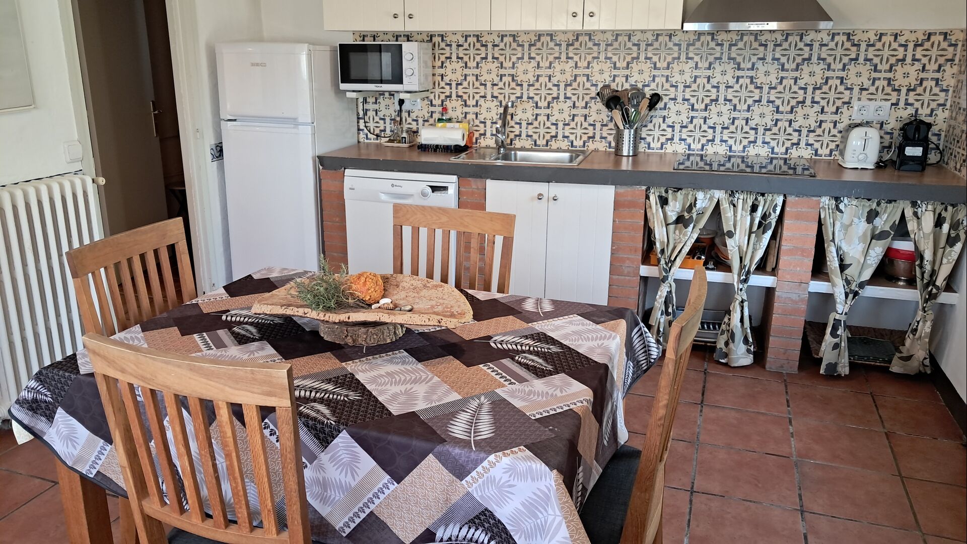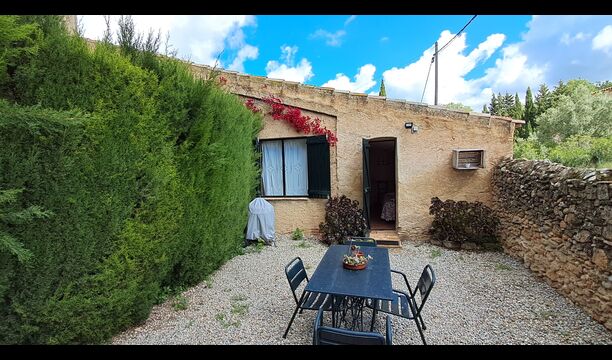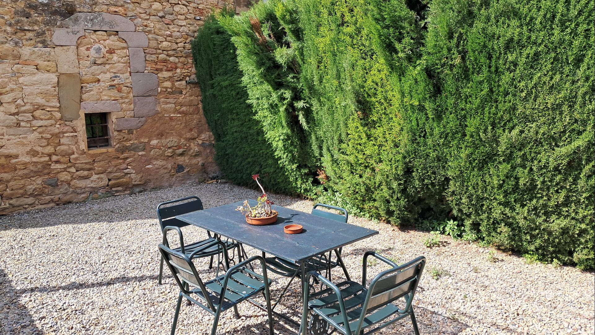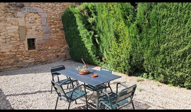 The private patio is ideal if you bring a dog, as it is fully closed and about 30 m2. It is of course also ideal as terrace, with table and chairs, and a propane gas heating if you come off season. There is a second terrace in front of the entrance of the apartment as part of the shared facilities, but ideal for this apartment. It provide shade under the trees on warm days.