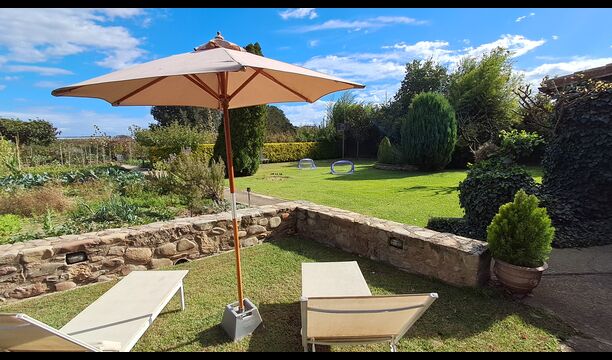 Outside, you have your own terrace table with a view over the garden and the fields in the distance. In the garden there is a BBQ. On the other side of the house, you can have a refreshing swim in the pool.