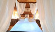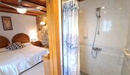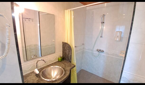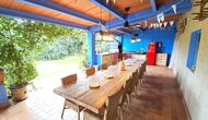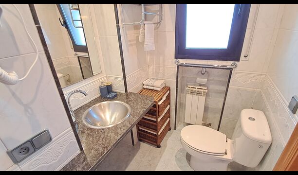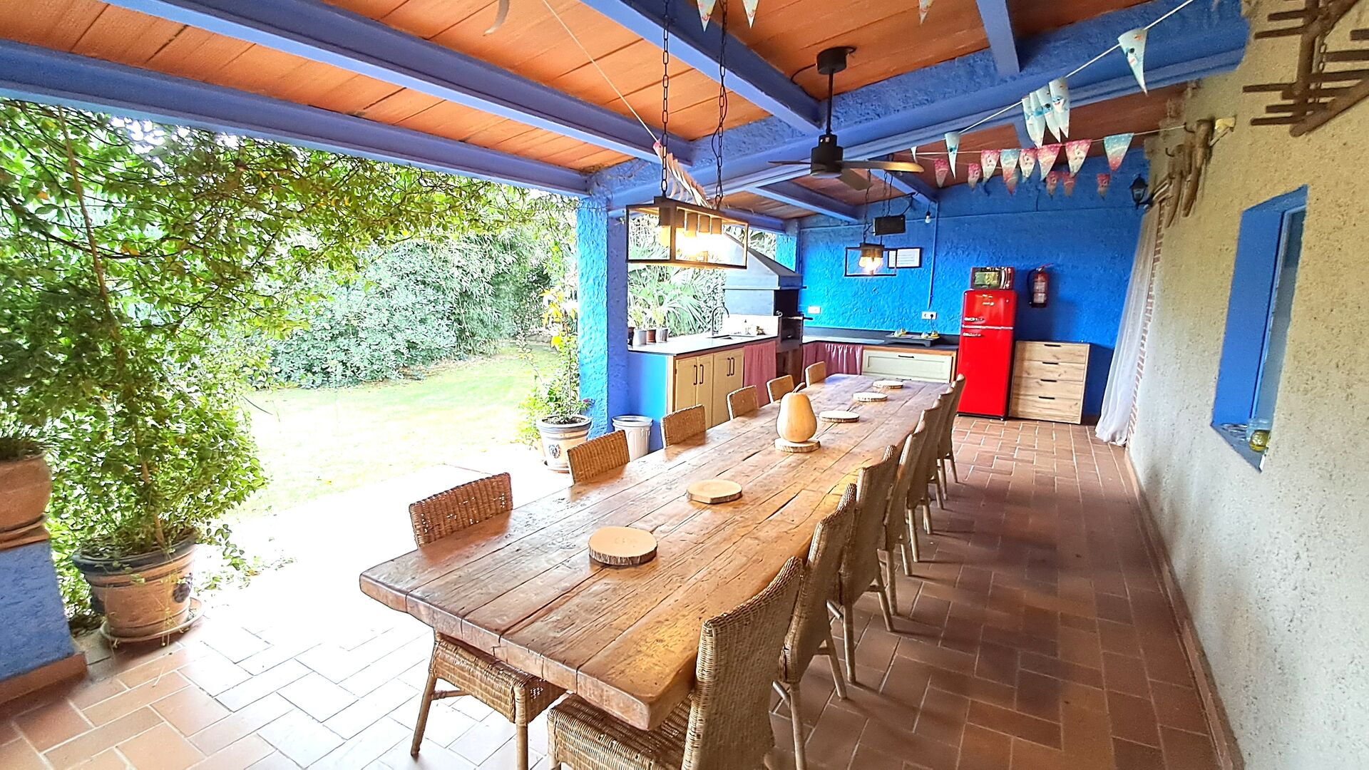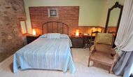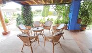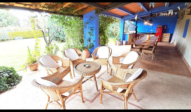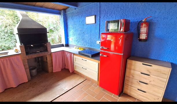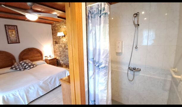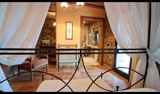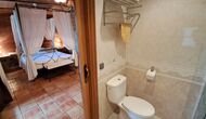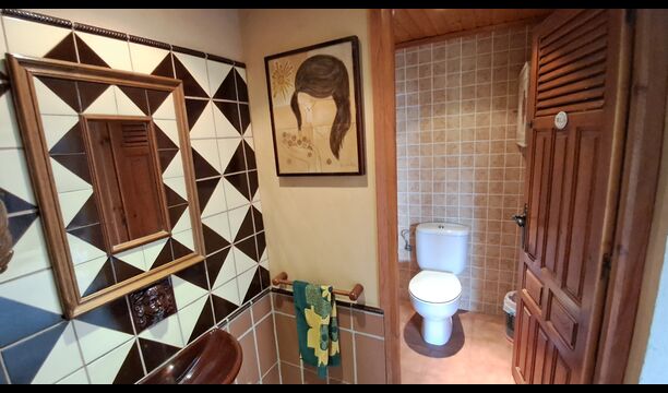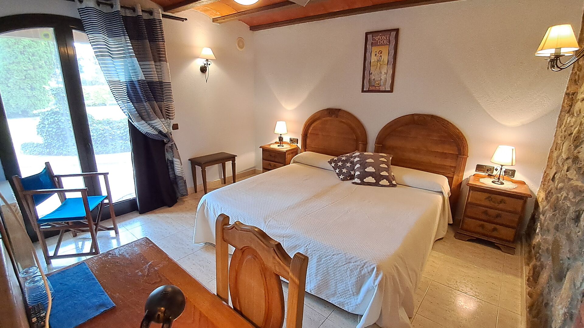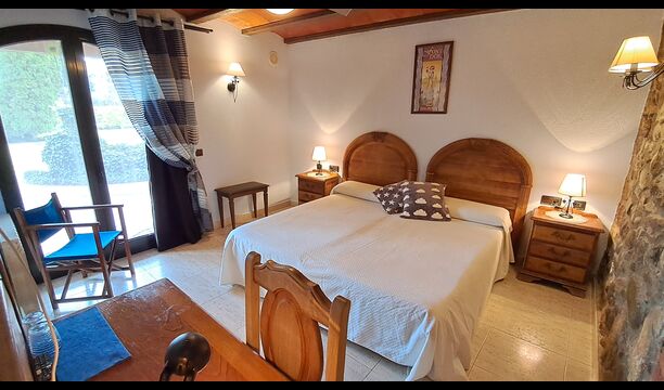 The main house has four big bed rooms. Two of them are connected, with one having direct access to the garden and the other with access to the big common room. From the two other bedrooms, you have access to the garden in one side and to the common room in the other side . Each bedroom is equipped with a double bed, TV. radio and hair dryer.