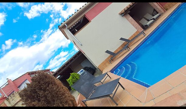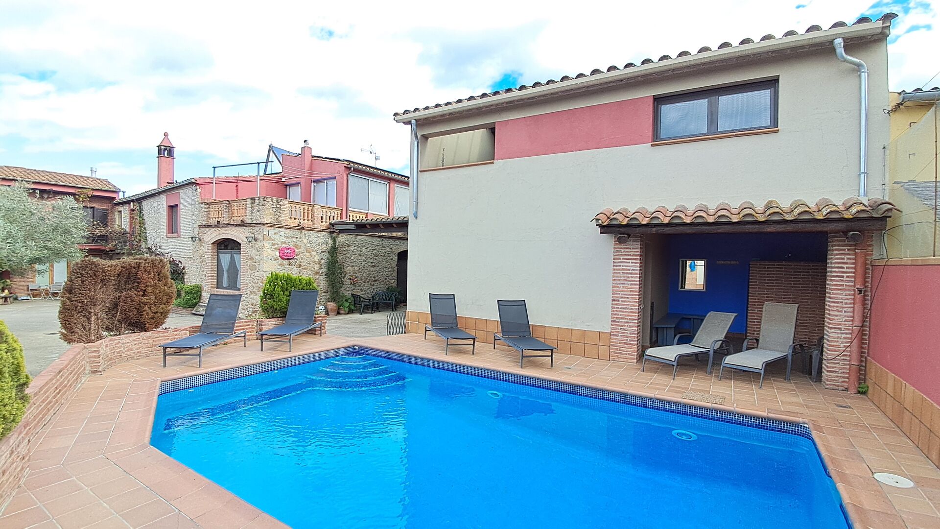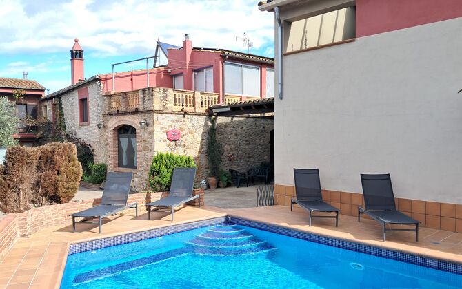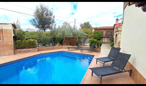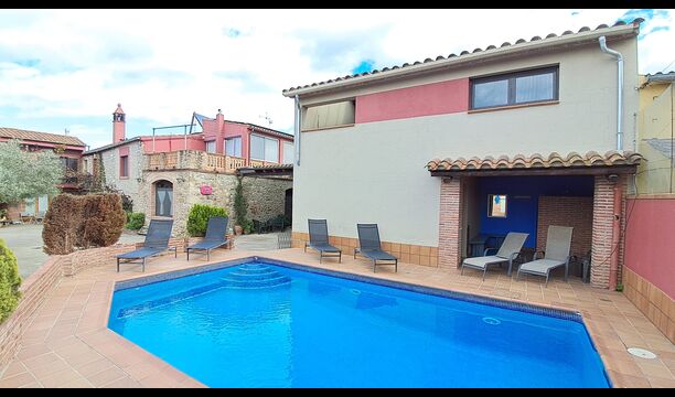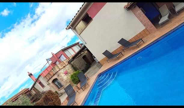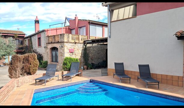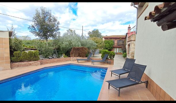 In a village only 8 km. from the regional capitol Girona, you find beautiful Casa Cajeras with swimming pool and room for 10+3 persons. It is an old house dating from the 19th century, which has been turned into a guest house. It has recently been restored using noble building materials and keeping its original aspect.
