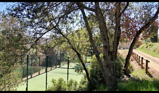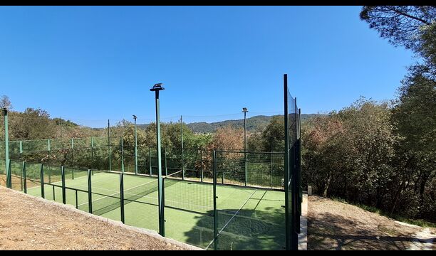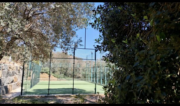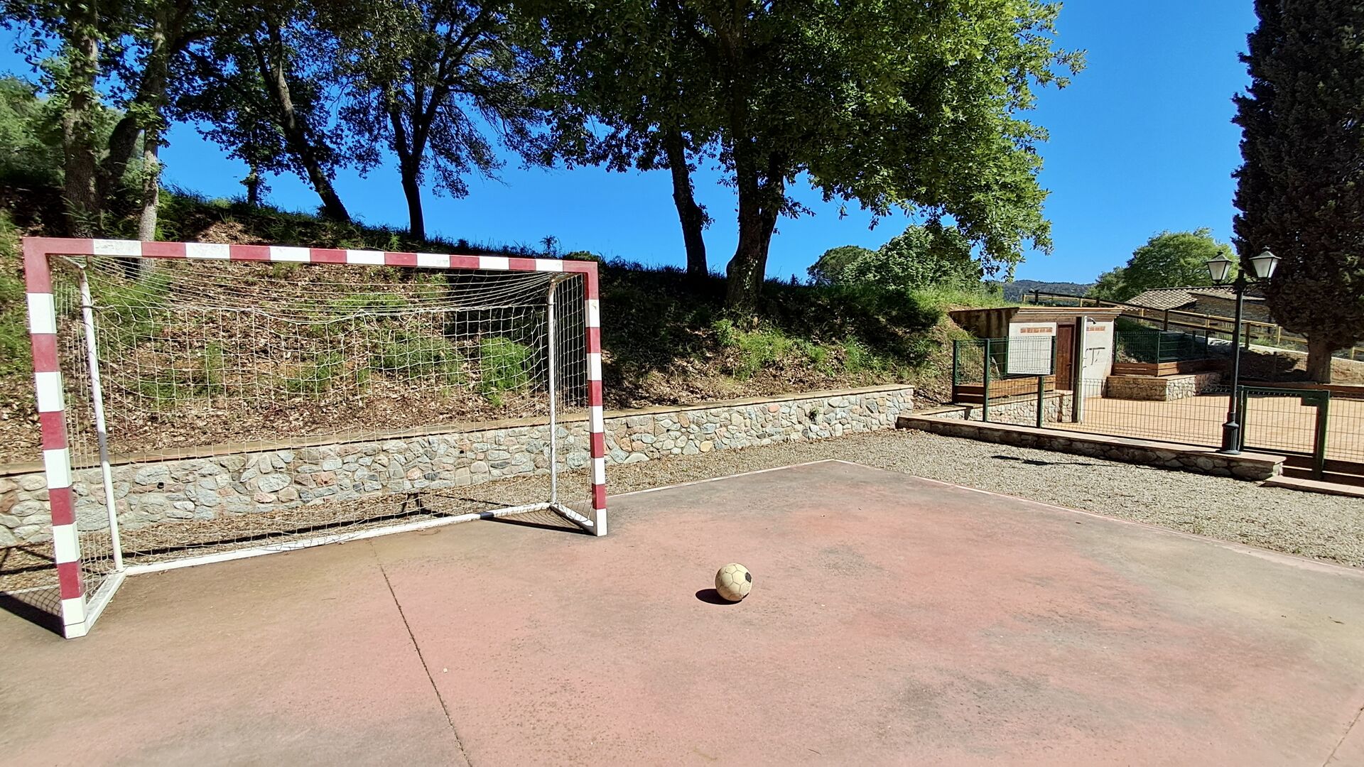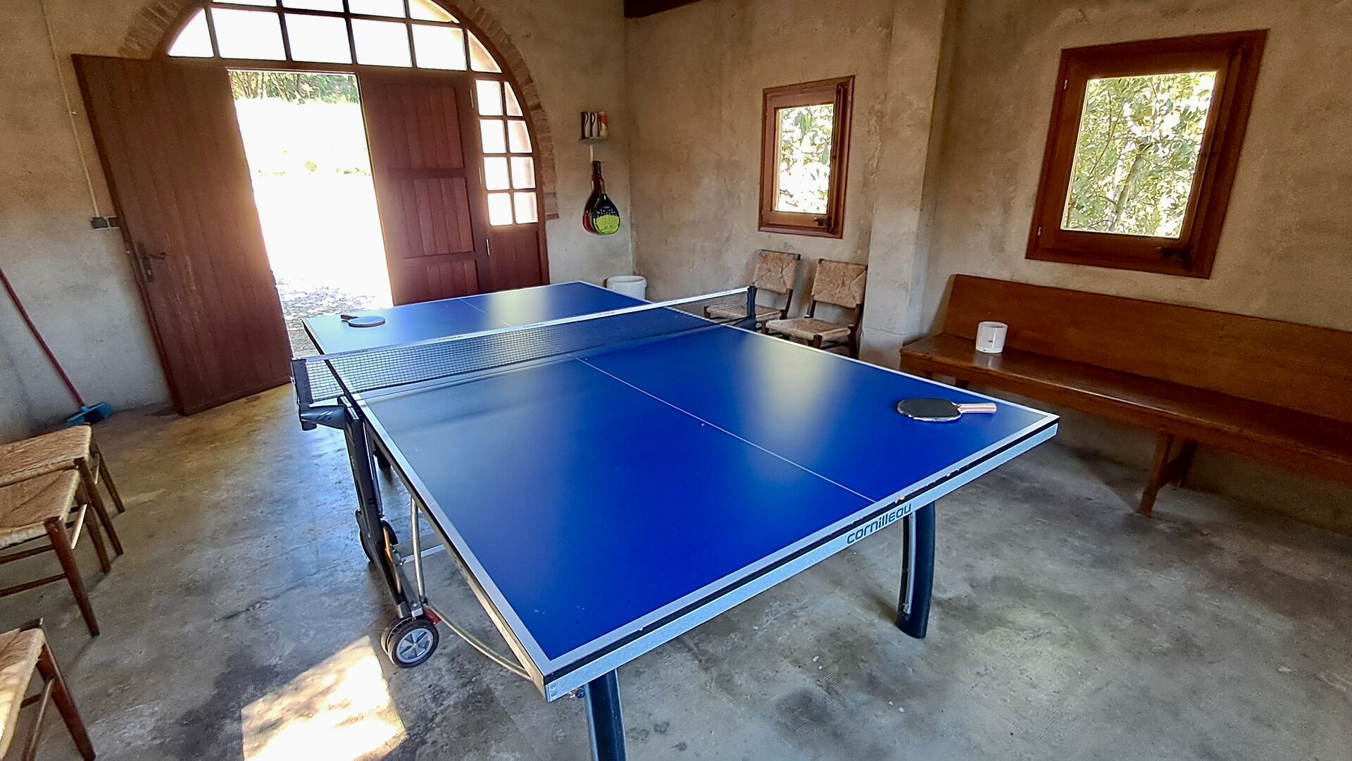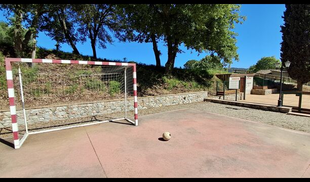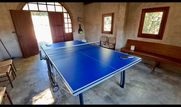 The garden has a lovely fenced pool area with plenty of loungers and here is also an area for playing football or basketball. At a little house in the back is set up a table tennis and a little seating area. The entire outdoor area is huge and the view here is stunning and from here you are really able to enjoy the silence and the stunning nature.