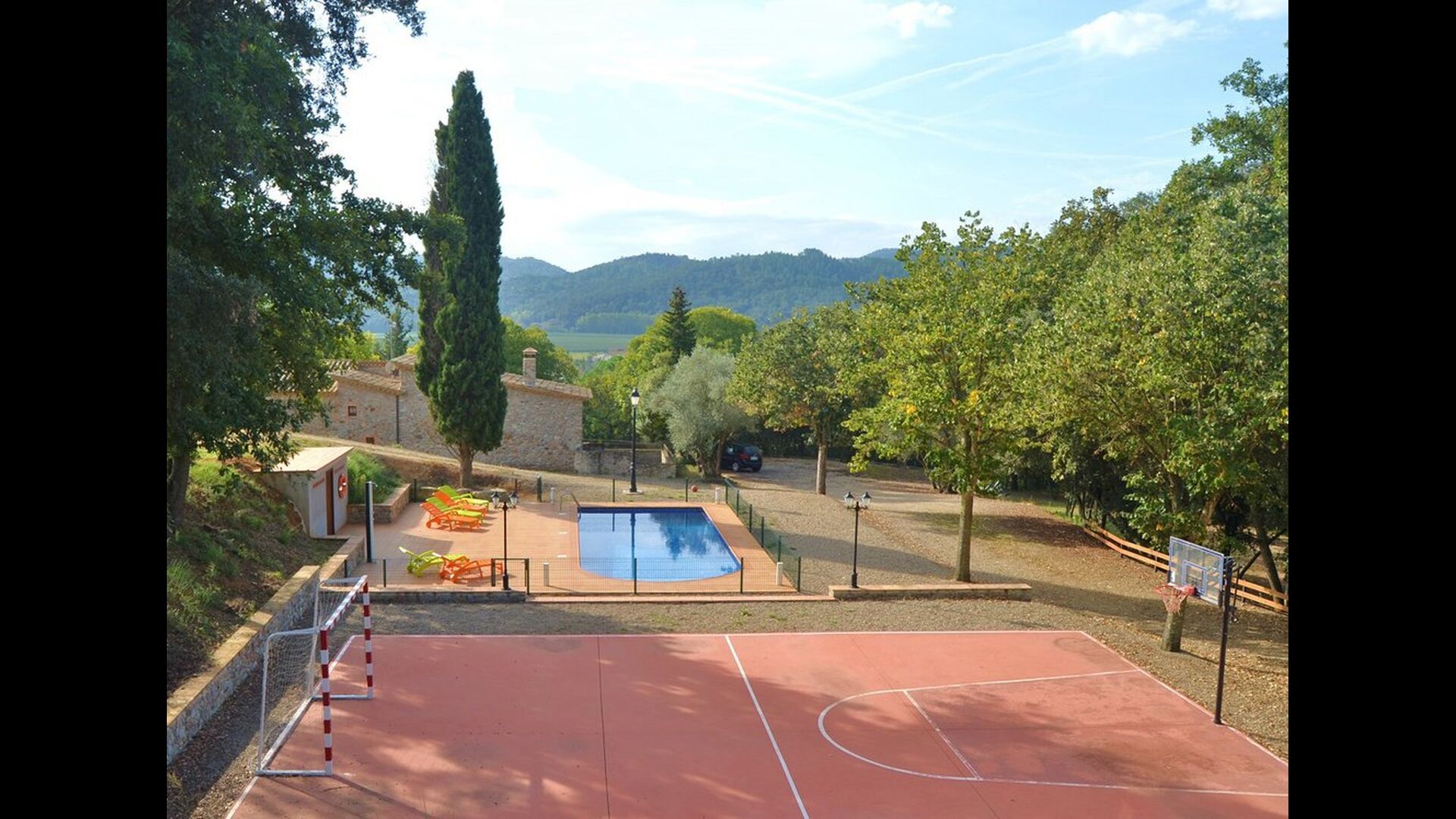 The house itself is fully renovated, which has been done with great respect for the house, which dates back from the early 18th century. The house has 6 roomy and nicely decorated bedrooms. There are 3 rooms with double beds and 3 rooms with single beds. There are 3 modern bathrooms and a traditional Spanish kitchen with all modern amenities. Next to the kitchen you will find the beautiful diningroom and next to the lounge area is another smaller dining area. The lounge area has satellite TV and fireplace (for the winther).