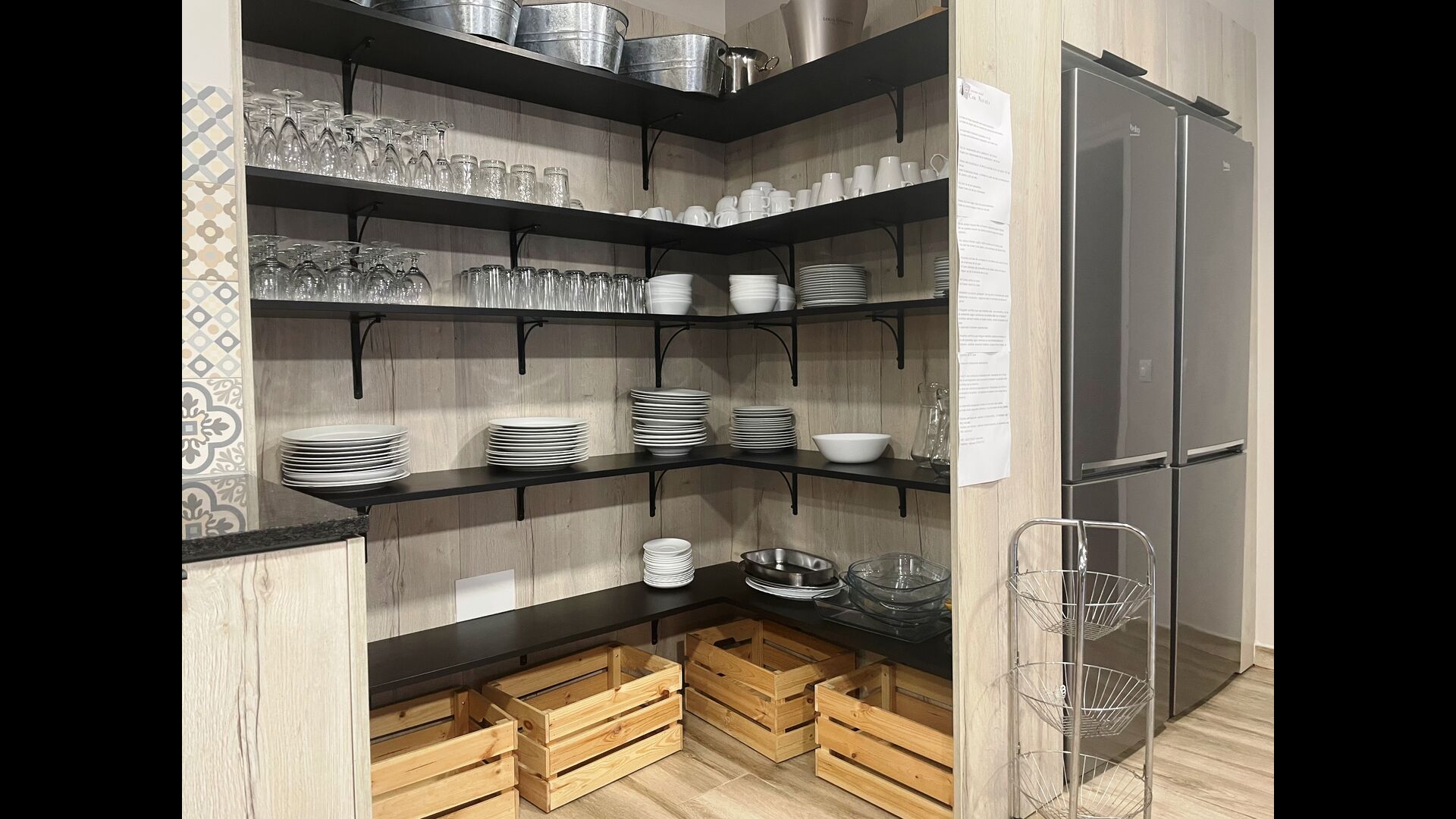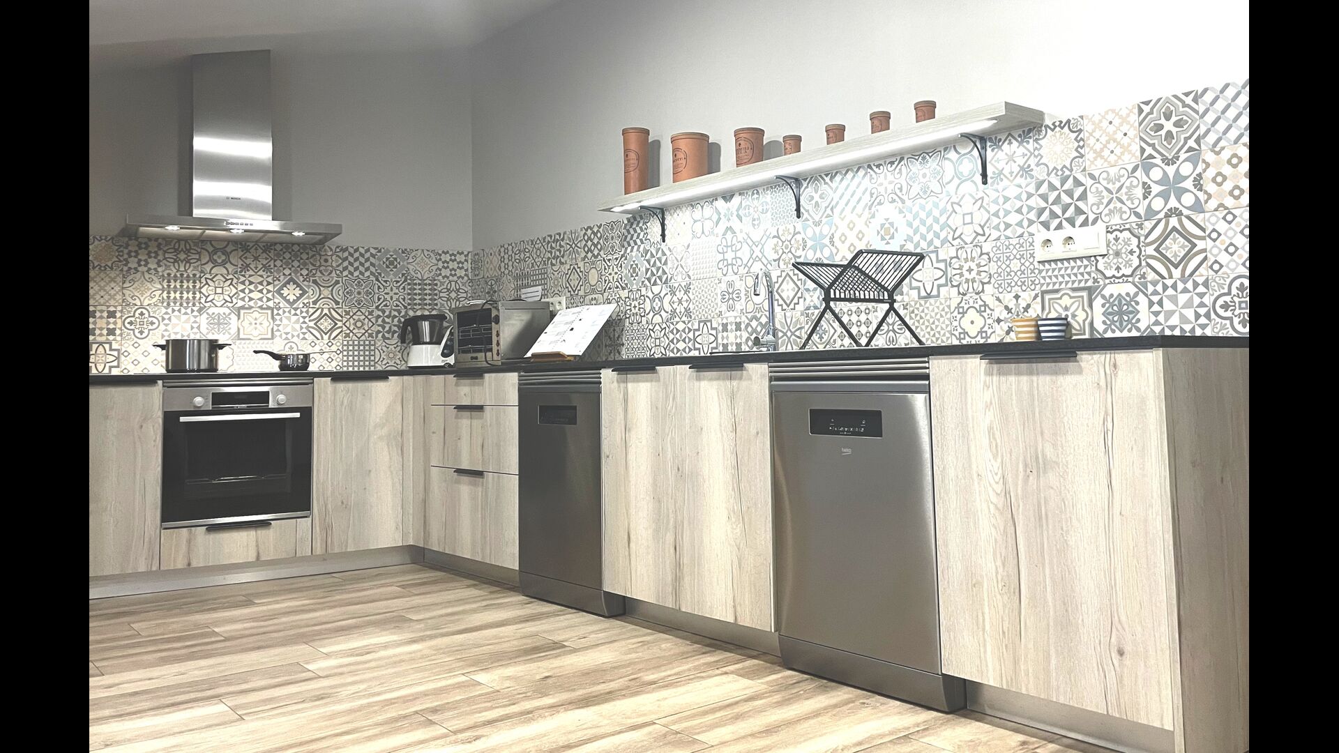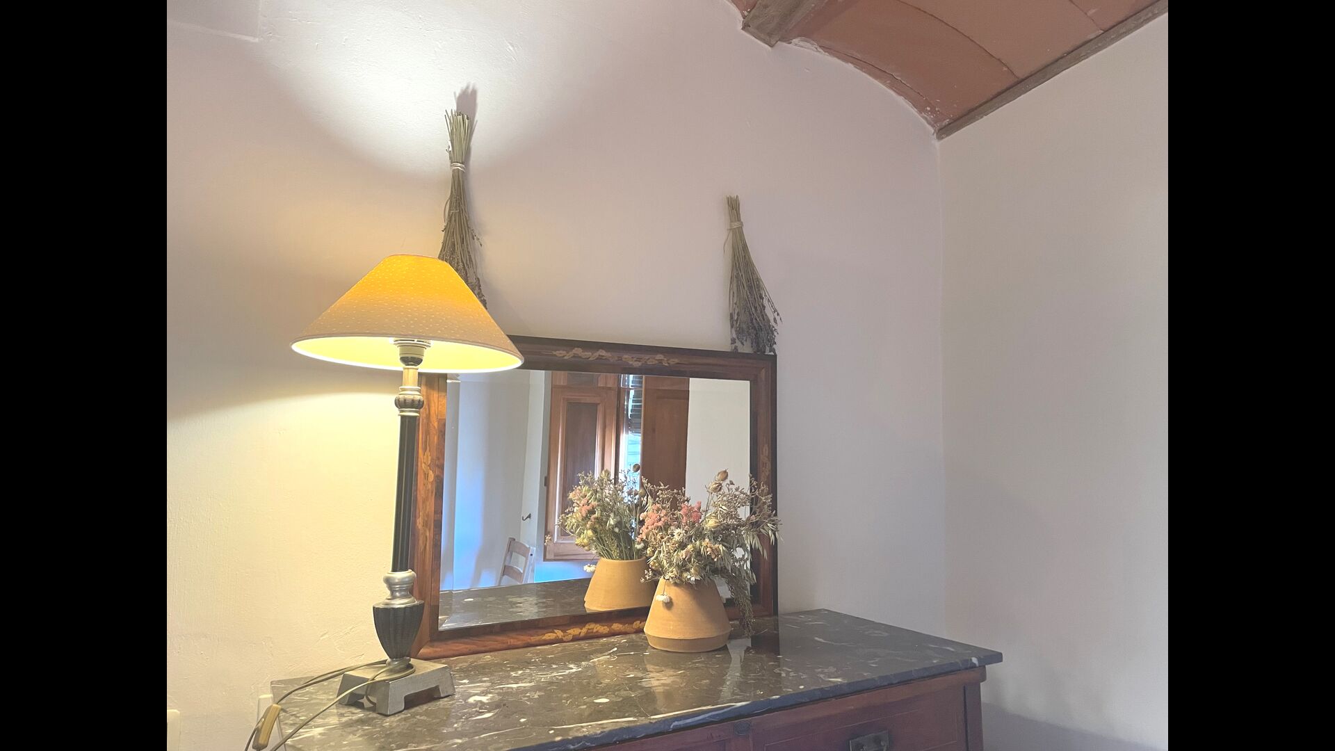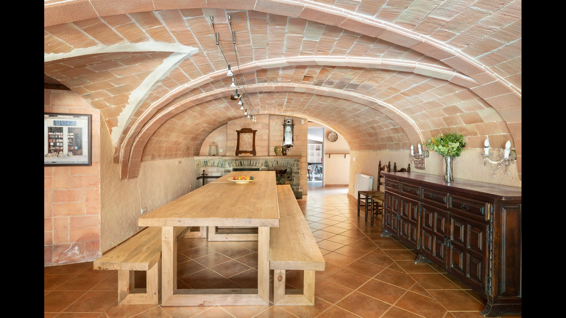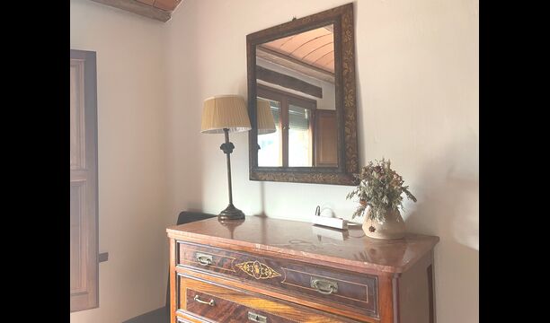 The beautiful ground floor takes you back in history, as the authentic structure has been preserved, which the gorgeous arches making the ceiling in both the dining room, the sitting room and the library with the billiards. With a view to the garden, there is a more modern sitting room with sofas and TV. Finally, there is big modern kitchen, with a lot of kitchen equipment and easy access with open cupboards. It is of course also equipped with oven, ceramic hot plats, two dishwasher, double fridge/freezer and more. There is also a table, which is convenient for breakfast.