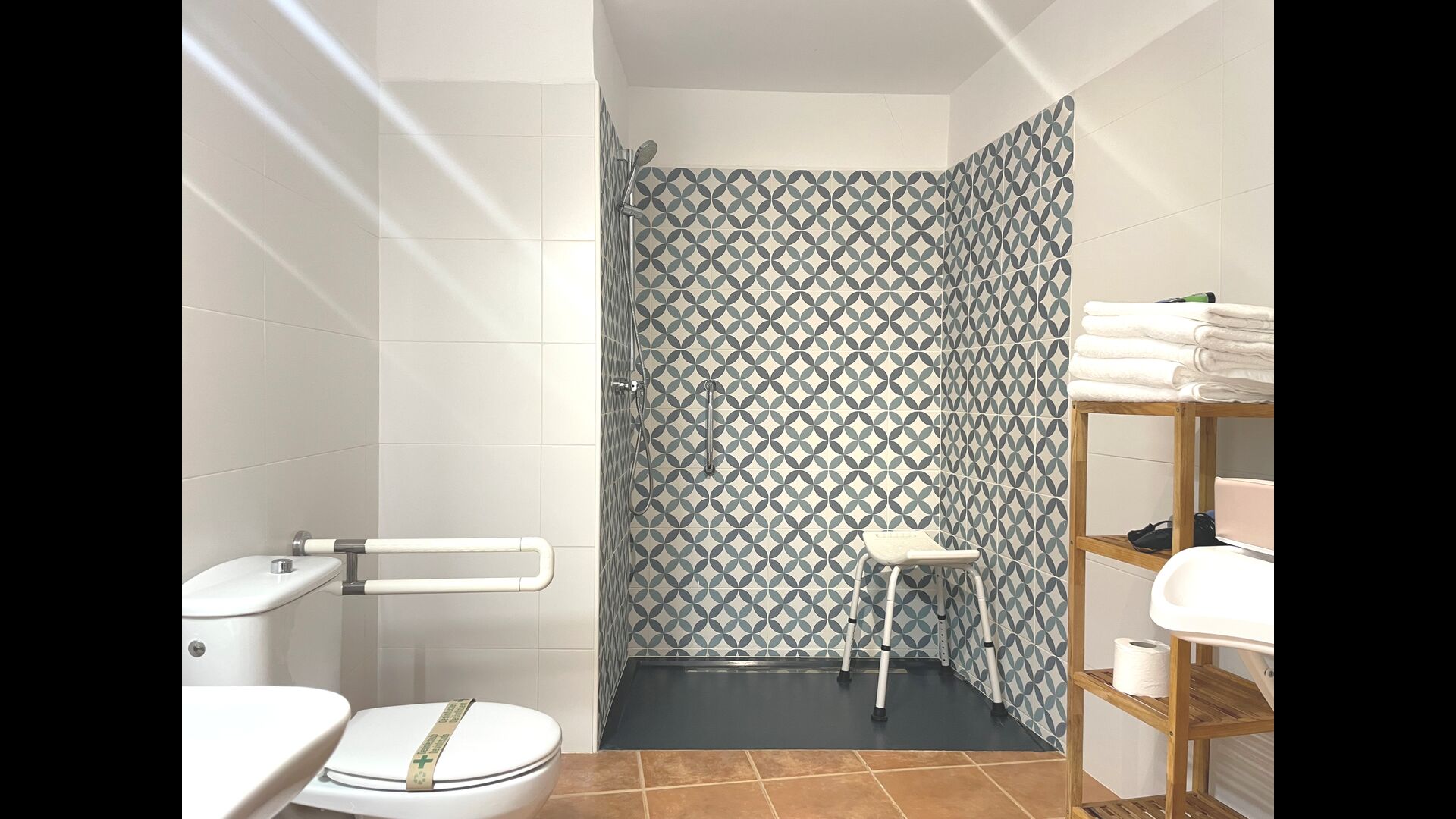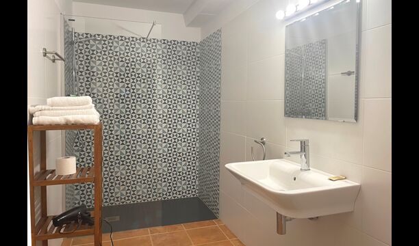 The house is very large, offering 9 bedrooms, 7 of them with bathrooms ensuite. There are two additional bathrooms in the house, and also the possibility of arranging a 10th bedroom if necessary. The bed setup is also very flexible, so depending on your needs, triple or four-bed rooms can be arranged. Two of the bedrooms on the first floor also have access to the first floor terrace, which is the perfect place to read a book or have glass of wine in the sunset.