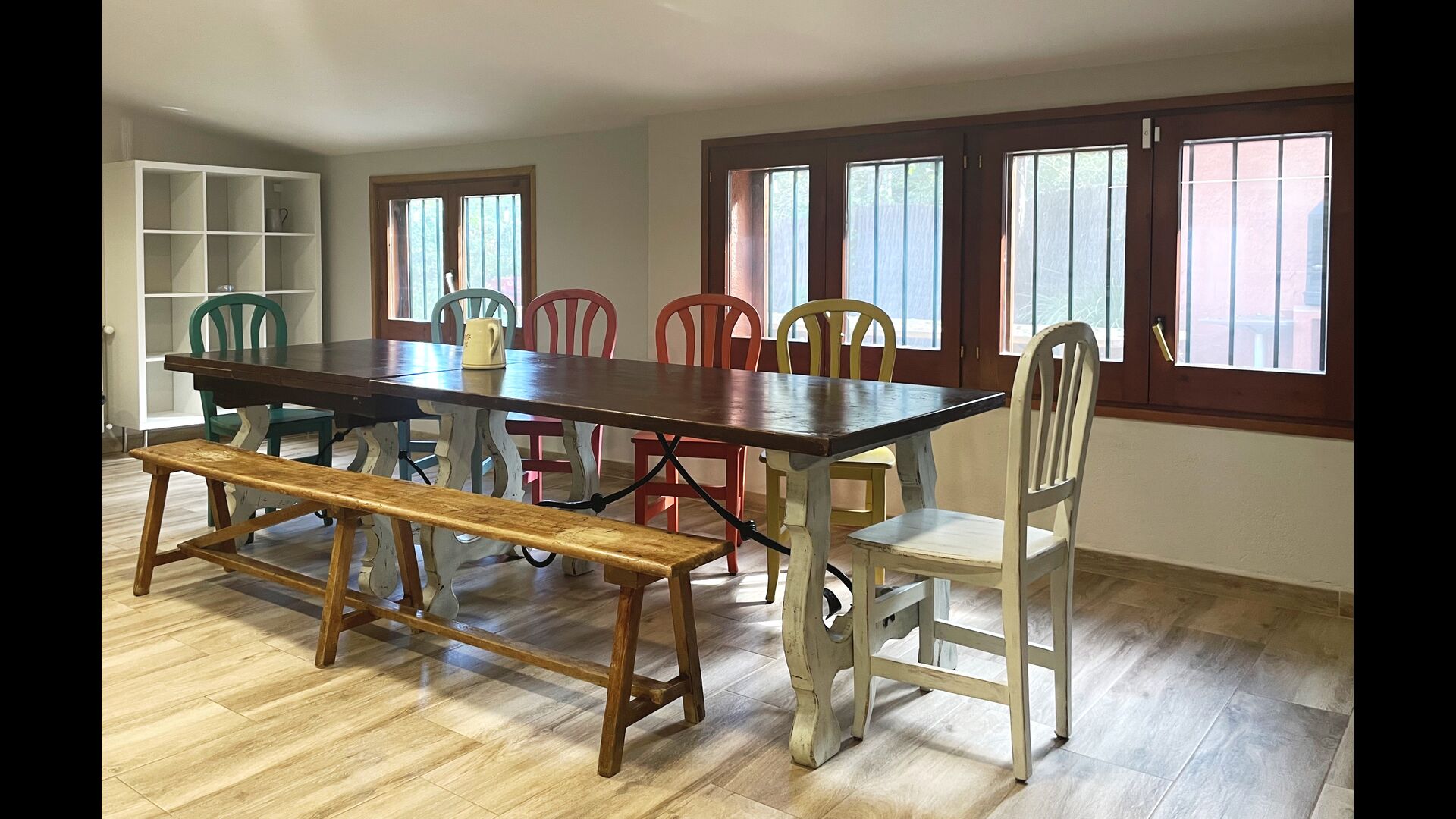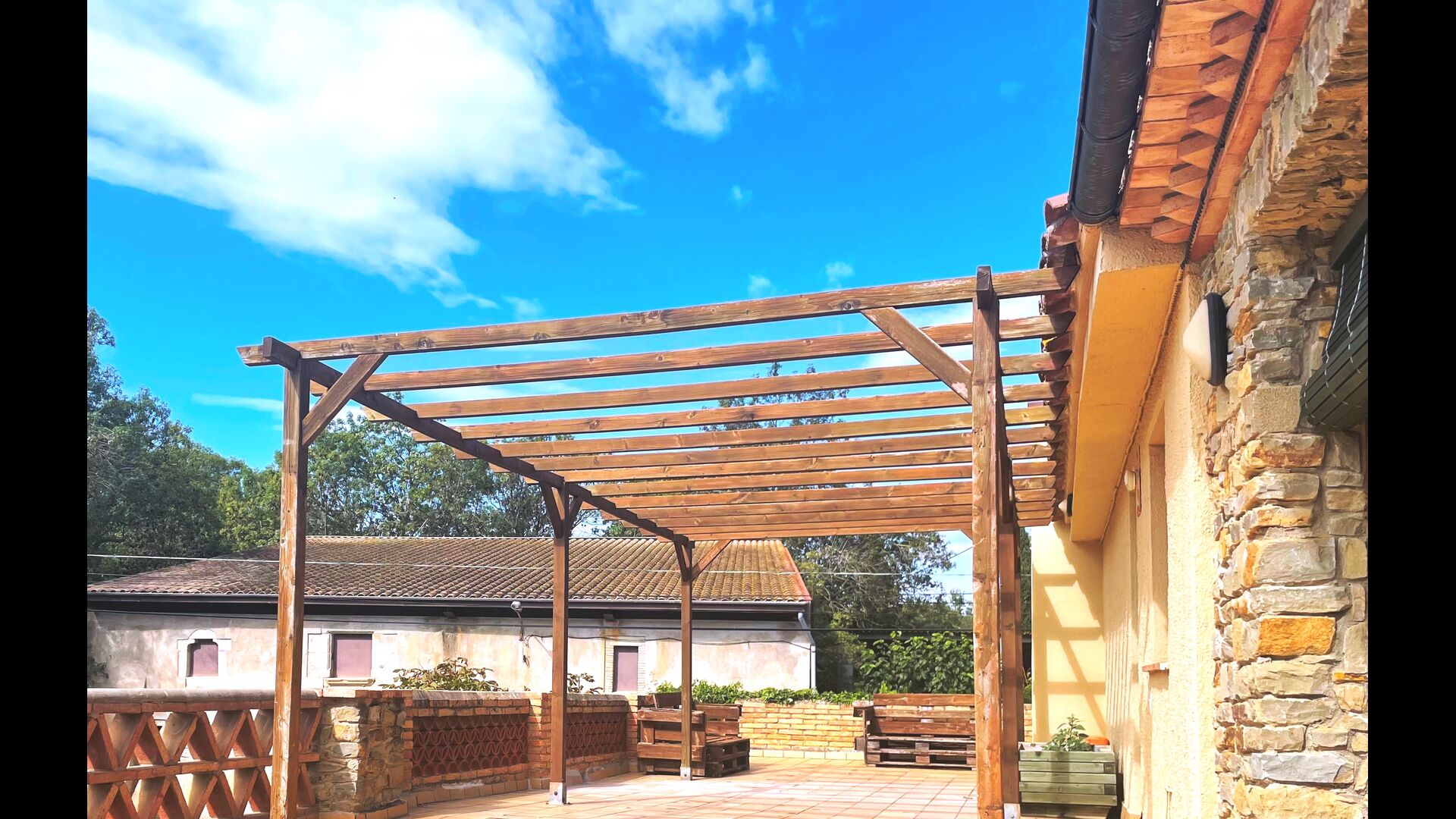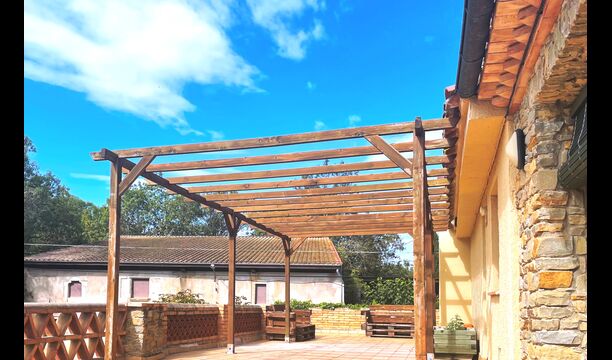 The terrace is situated so you can easily keep and eye on the swimming pool and the rest of the garden, and it is also close to the barbecue, which is situated in the courtyard. The courtyard is ideal for your meals, as there is also a big table and then it is directly connected to the kitchen.