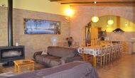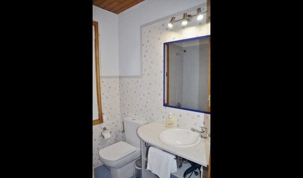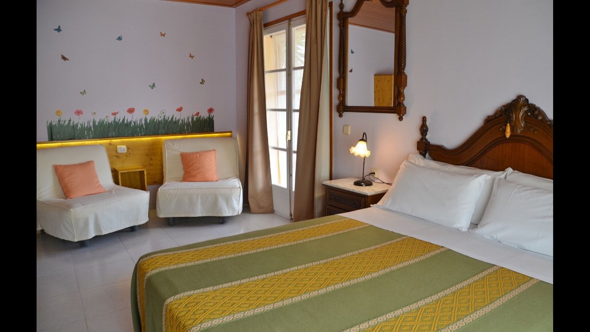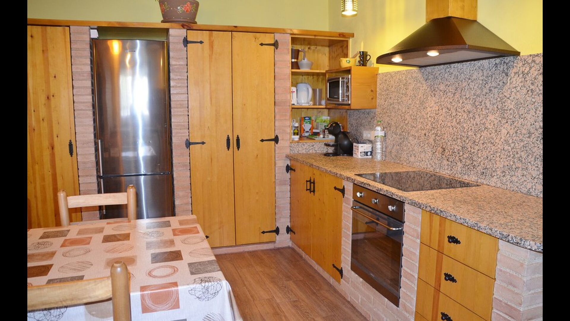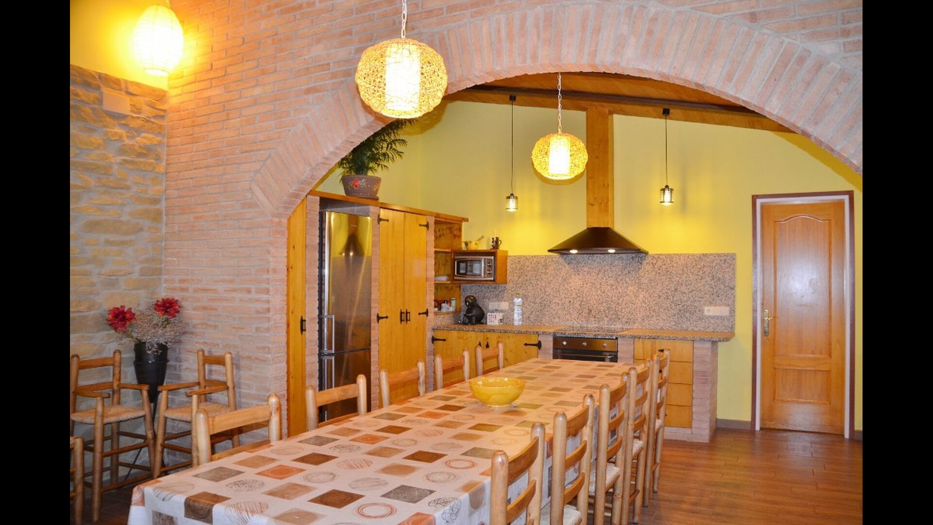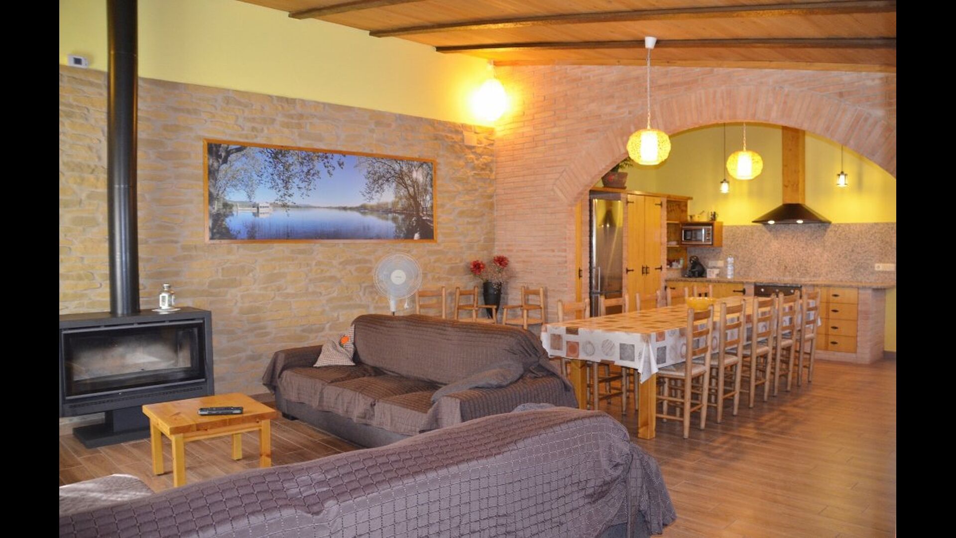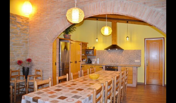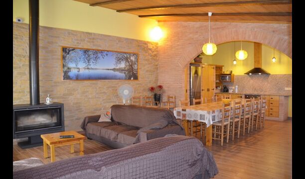 The holiday home has 5 bedrooms, one of which is for four guests and thus perfect for a family with two small children, or for a group of small children. There are also 2 double rooms and 2 tripple rooms. The large common area is one big open environment with a cozy living room, a long Spanish table and a smaller kitchen. There are also three bathrooms in the house.