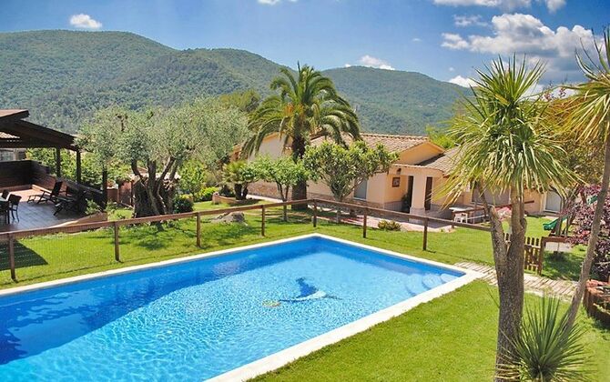 Casa de Solena is a great and modern holiday house for 10 (+2) guests. The house is situated on a hilltop with a glorious view of the hilly Catalan landscape and has a great garden. The very nice town Banyoles is 4.5. Km. away. In addition to the weekly market, cafes and restaurants there are buses directly to Barcelona from the town, so you do not have to worry about parking and driving in Barcelona if you are going there doing your holiday.
