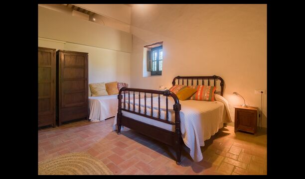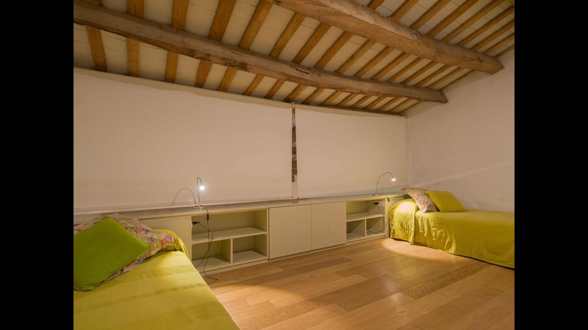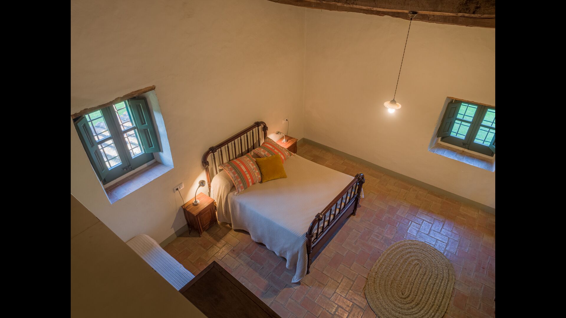 There is a large twin bedroom on the first floor of Casa Piferan-Porxo. The second bedroom is on the upper loft, and has two twin beds, with the possibility of having another bed set up. There is also a bathroom on the first floor.