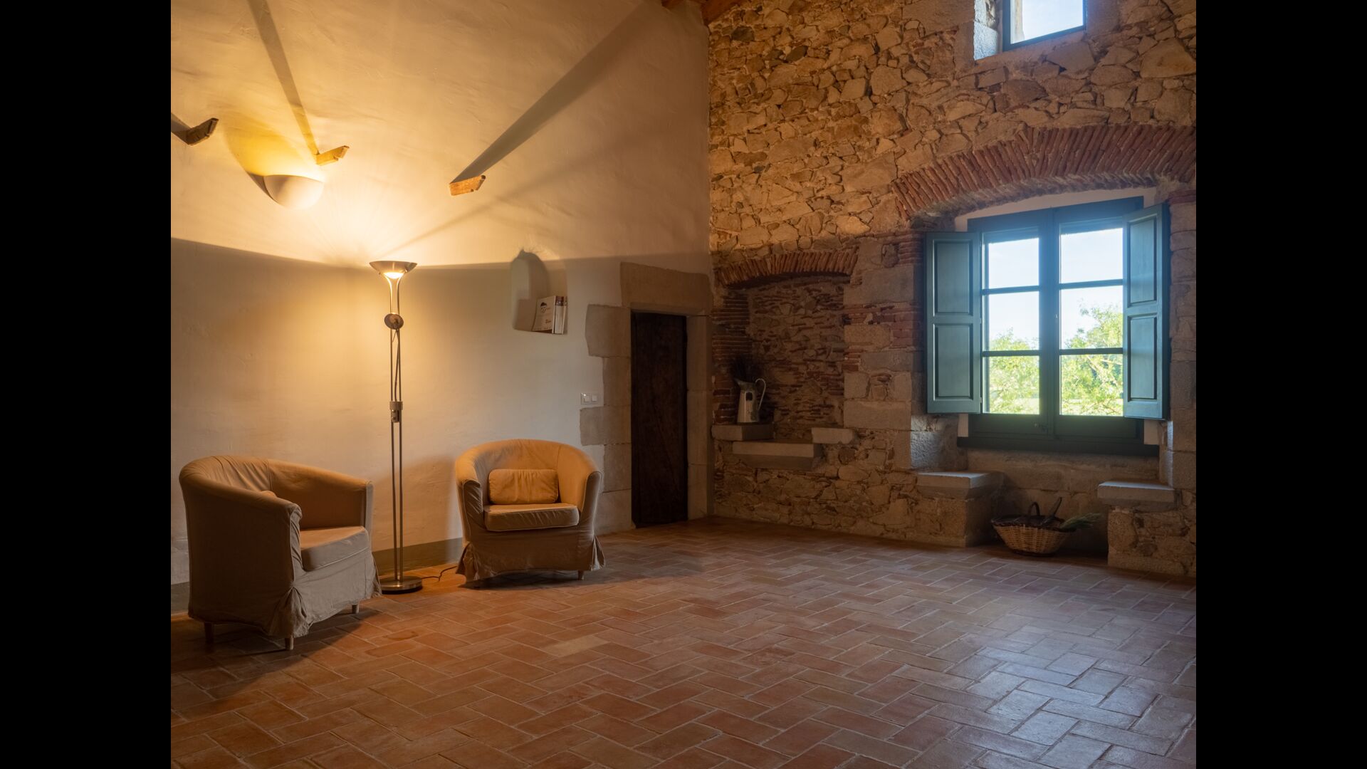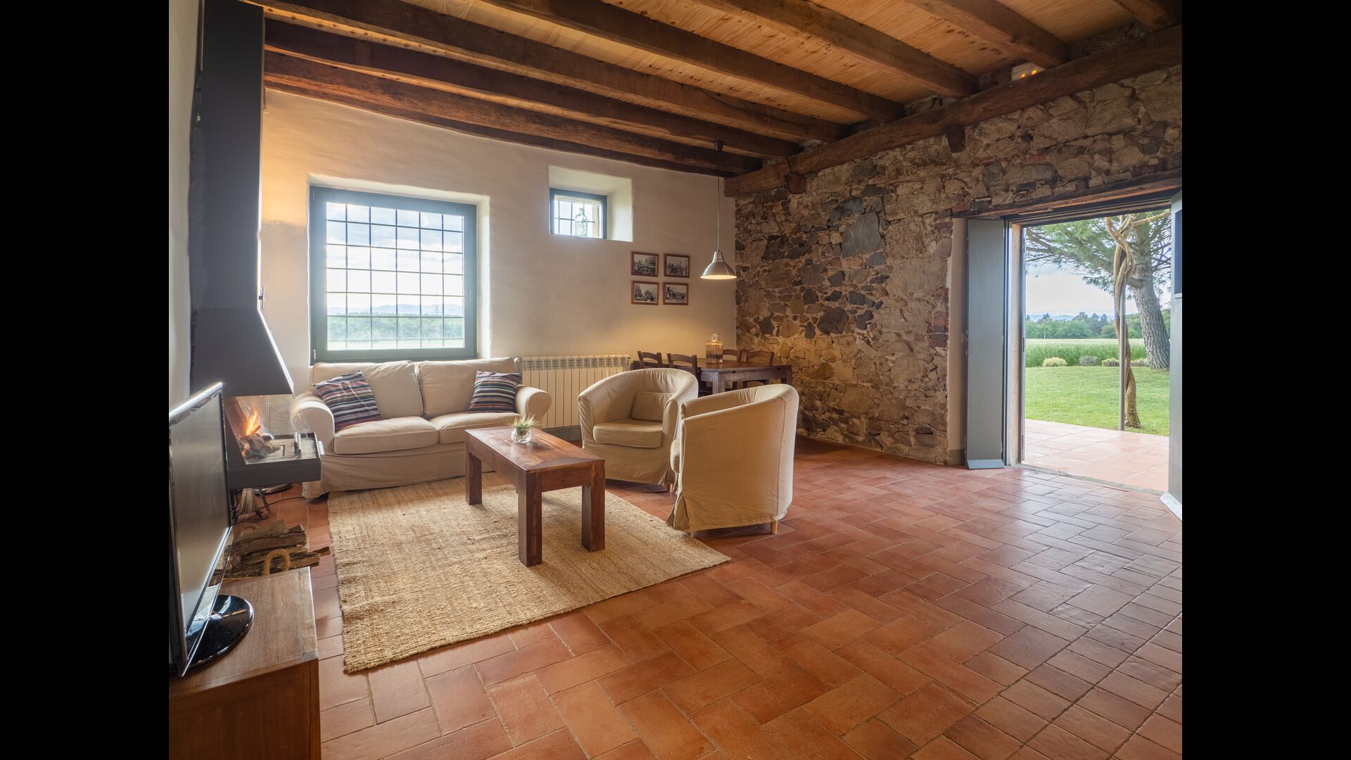 The house has a fantastic location! Surrounded by lush nature, and with its exceptional views of the Montseny, the plain of La Selva and a good proportion of the Catalan Pyrenees and their foothills.