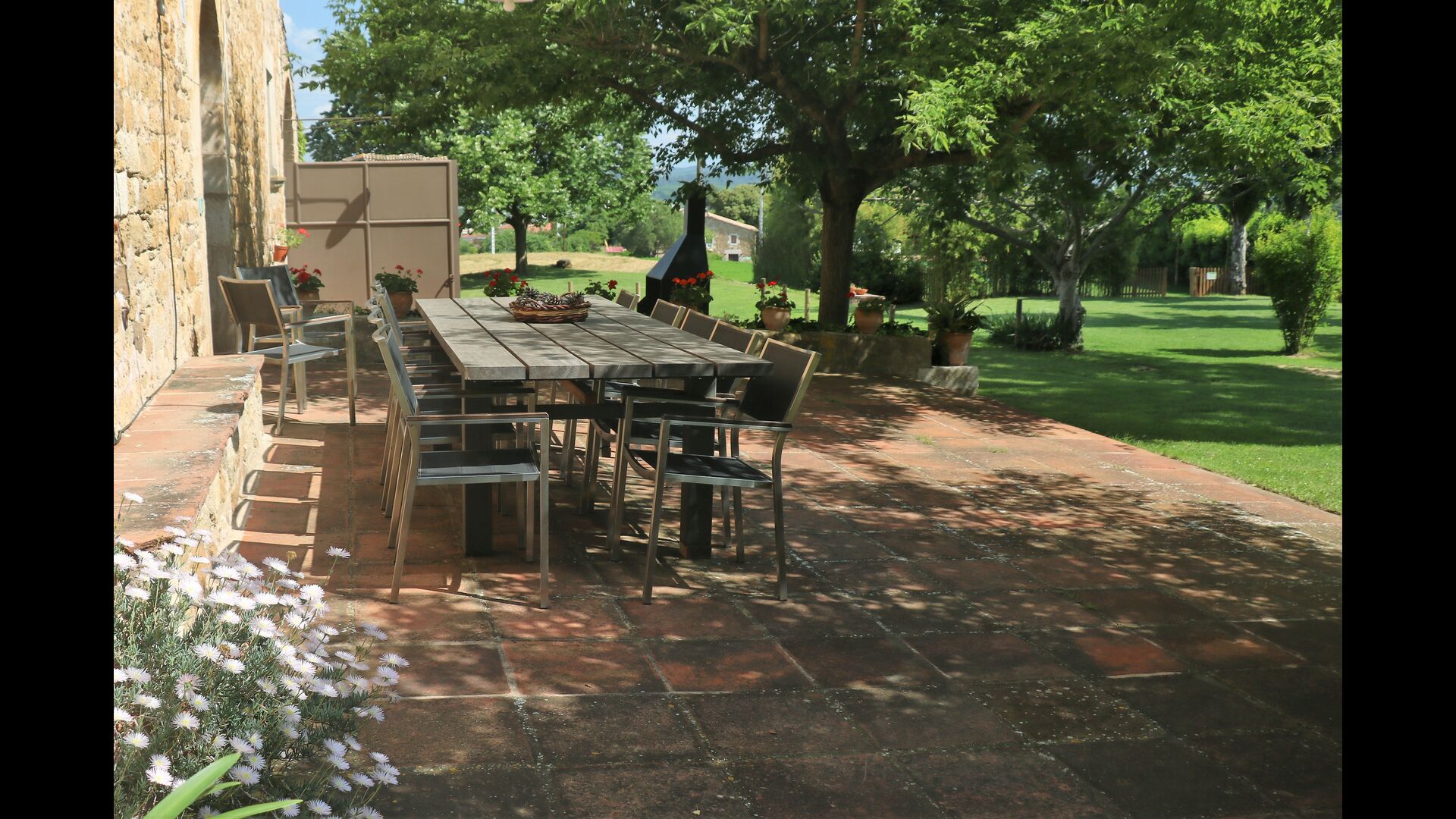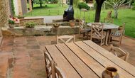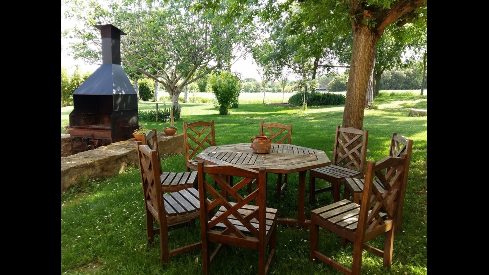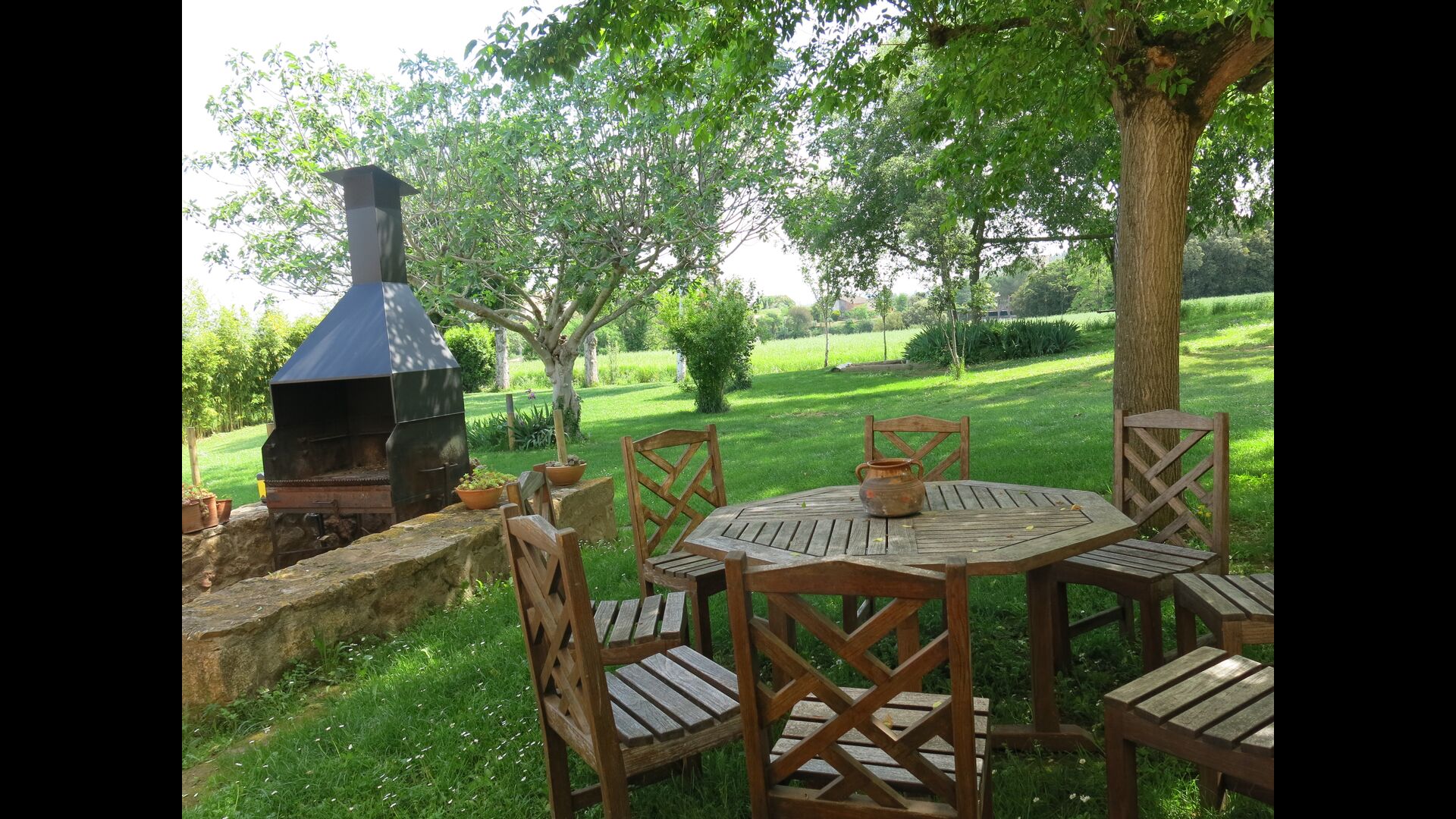 Outside, in front of the house, is the large area with grass with many shadows, created by trees, where you can have coffee in the morning or relax with a good book and a glass of wine. Next to the house there is also a terrace with a large table and a barbecue. There is also a playground and swings for children.