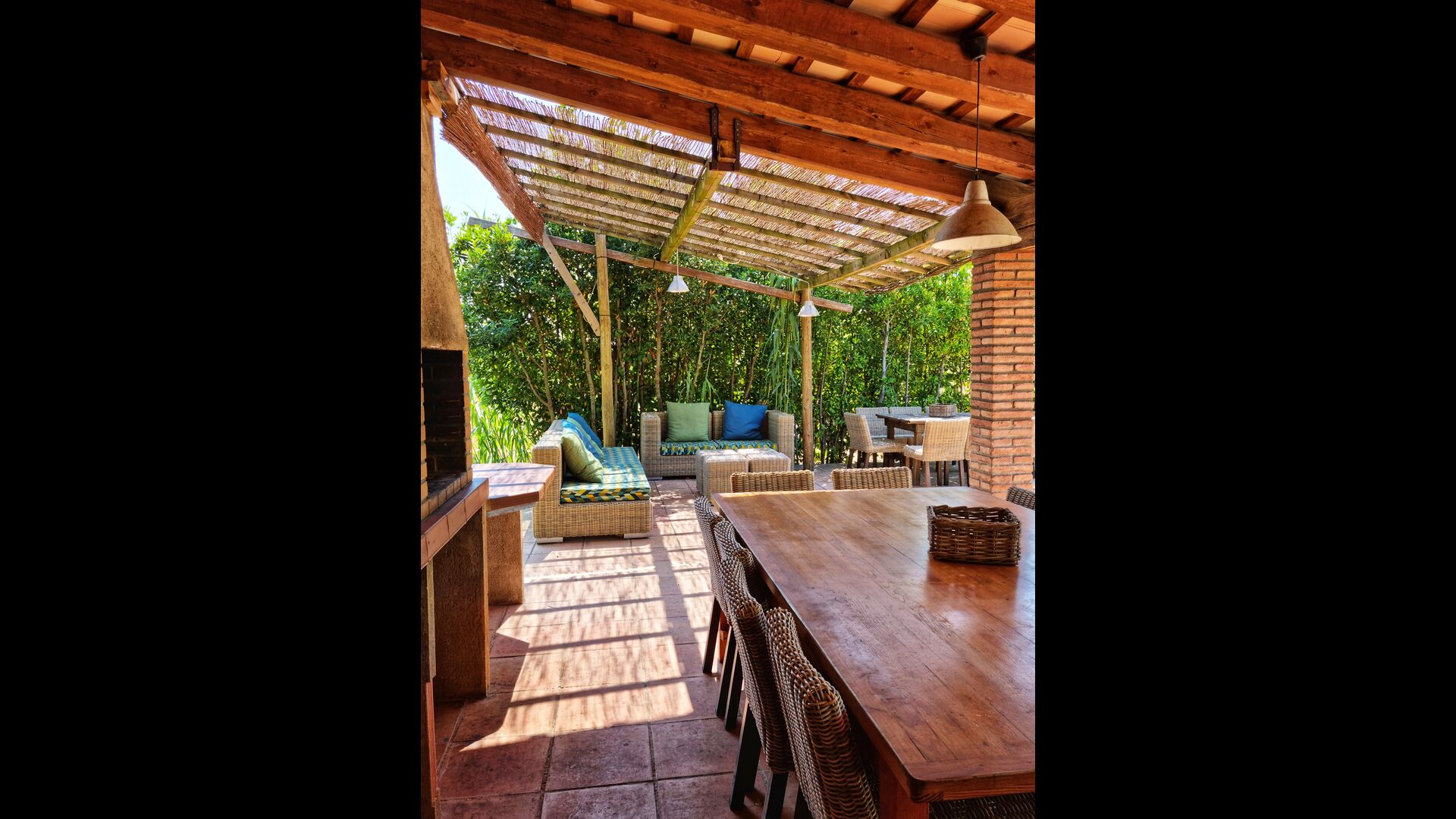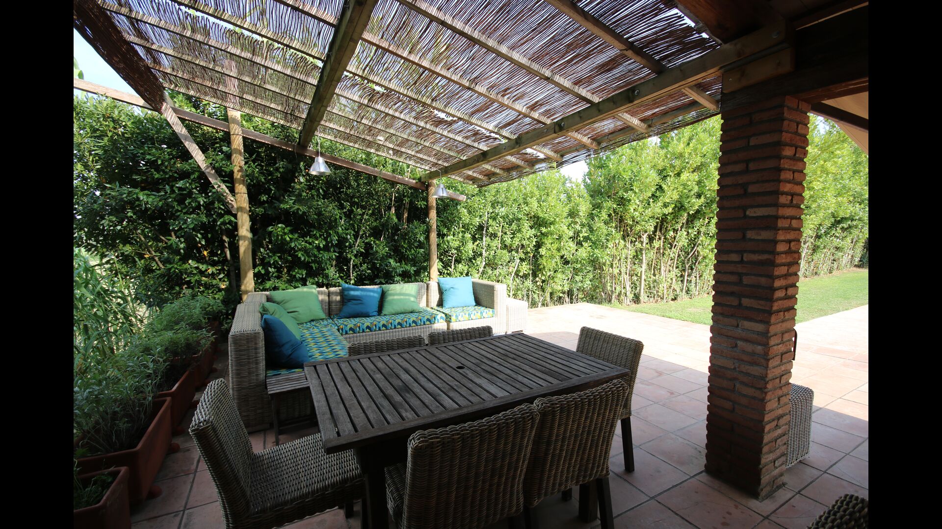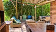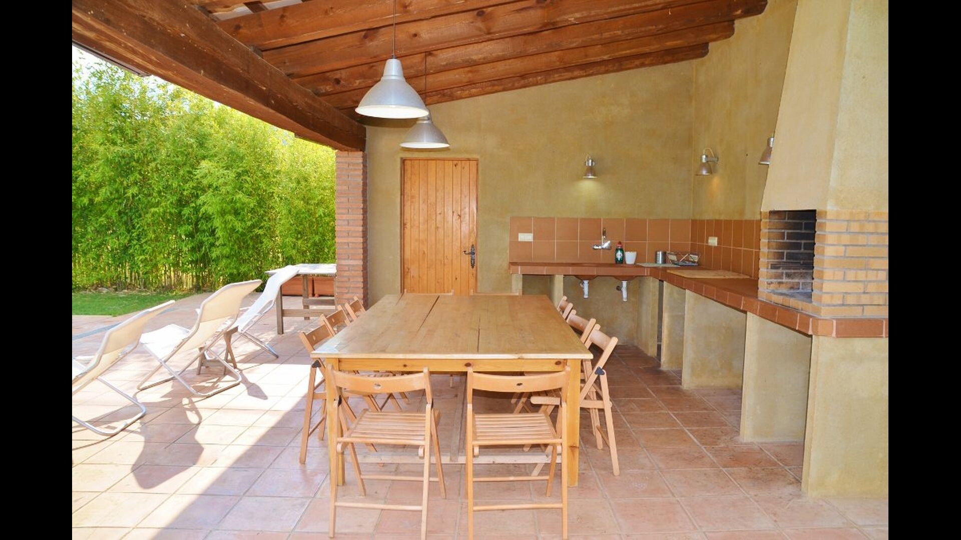 Outside, in front of the house, is the large area with grass with many shadows, created by trees, where you can have coffee in the morning or relax with a good book and a glass of wine. Next to the house there is also a terrace with a large table and a barbecue. There is also a playground and swings for children.