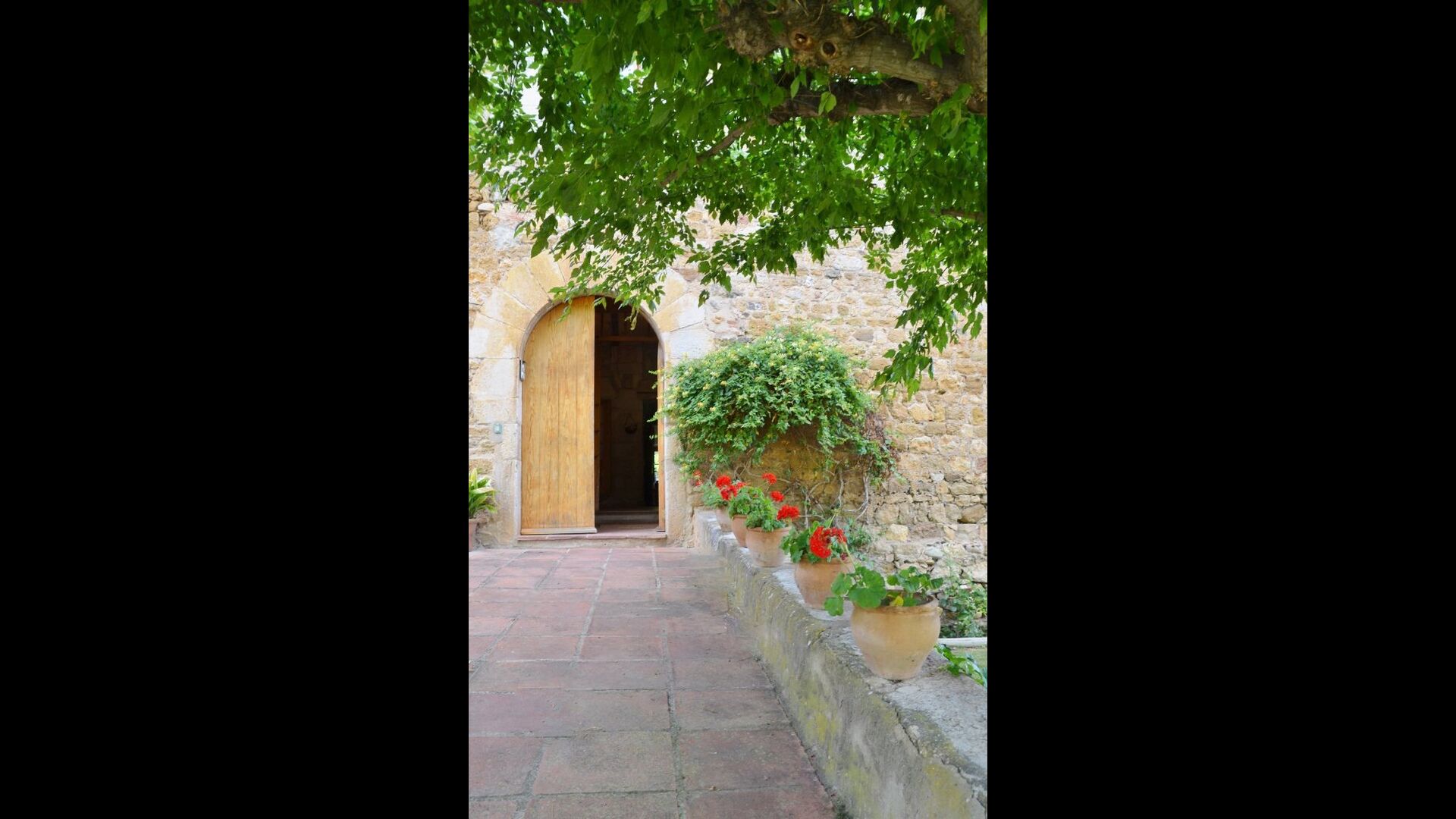 In the other direction, you will enter village and follow the sloping road through a small quarter of villas before entering the antique town centre with some shops and restaurants. The village is a charming, Catalan village with almost no tourists. On the other side of this town centre, you will find the train station with direct trains to Barcelona and Girona. Hence, it is actually possible to stay in this house without car. A bit further, there is a big supermarket near the main road between Girona and the beaches of Costa Brava, only 30 minutes away.