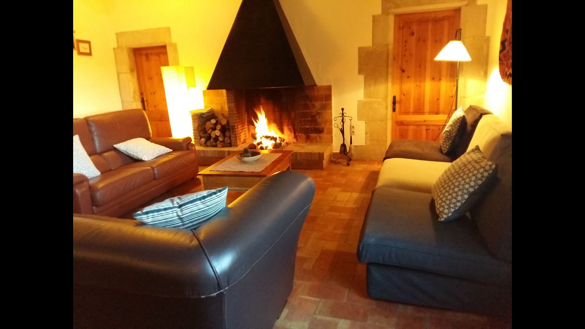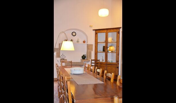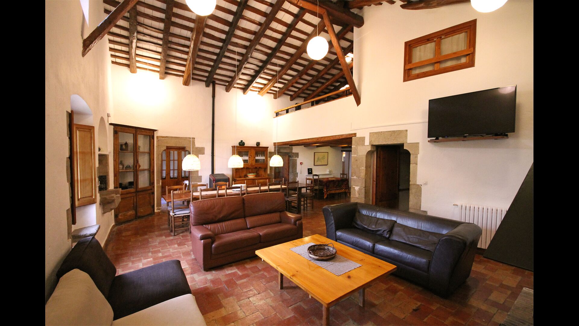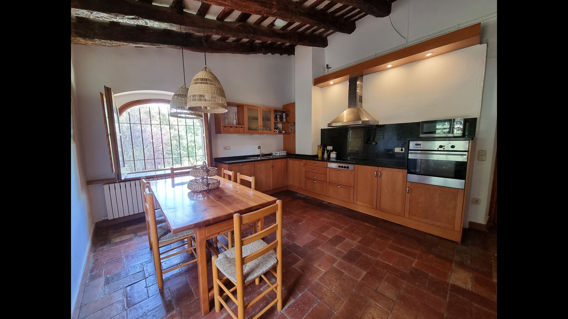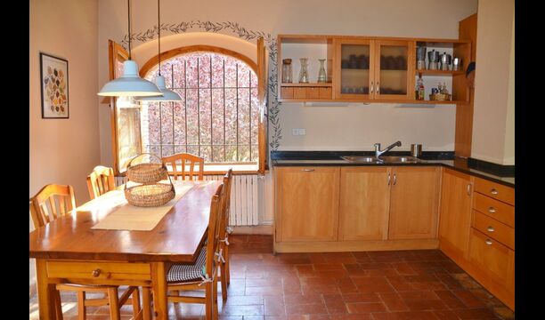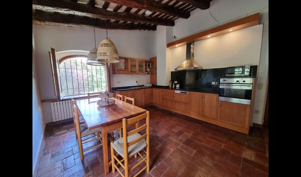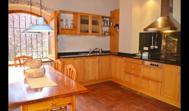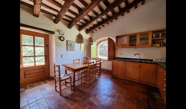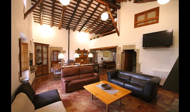 At the first floor, there is a very big common area in more classic Catalan style, where you will really sense the long history of the house. In this big area, there is a sofa-corner with TV and DVD and a long dining table. In connection, there is a fully equipped kitchen (dish washer, stove, hotplates, American fridge etc.) with a small dining area. In the house, there is a WIFI Internet connection.