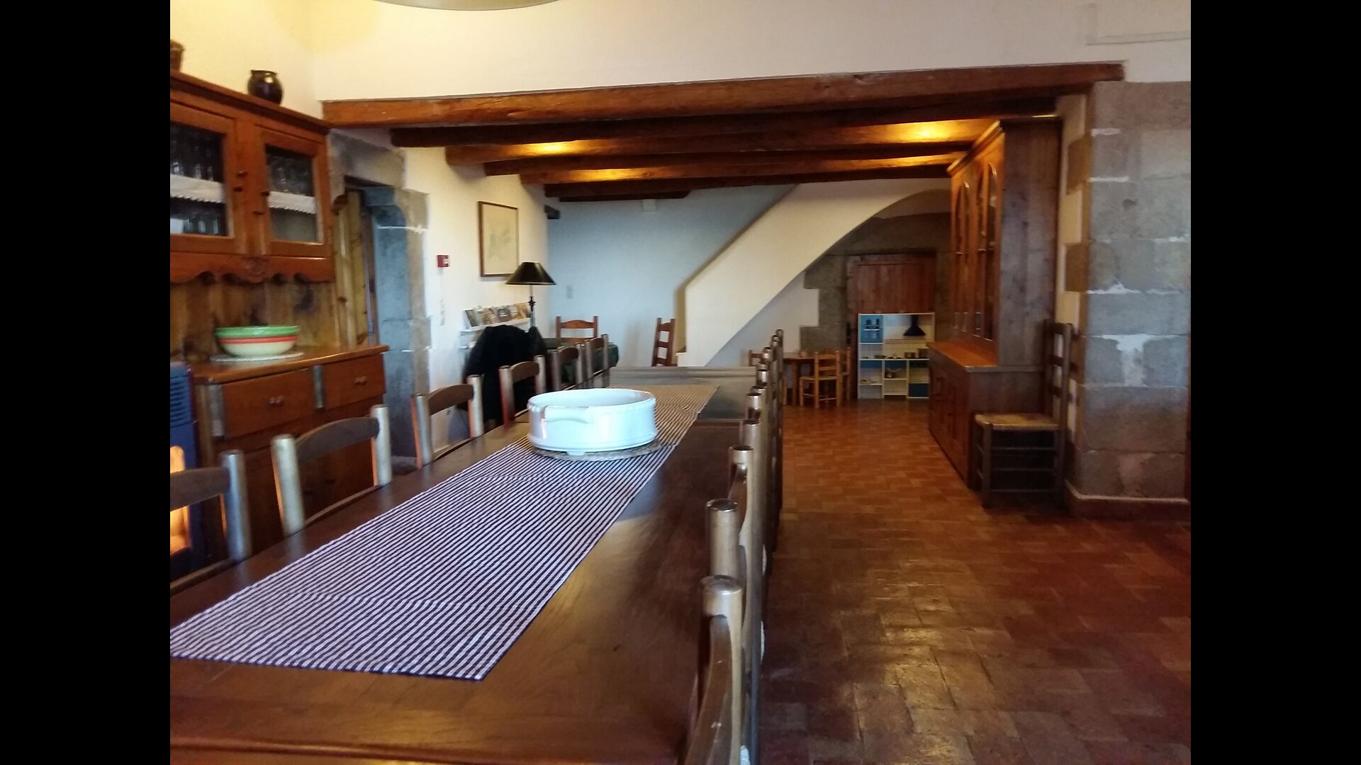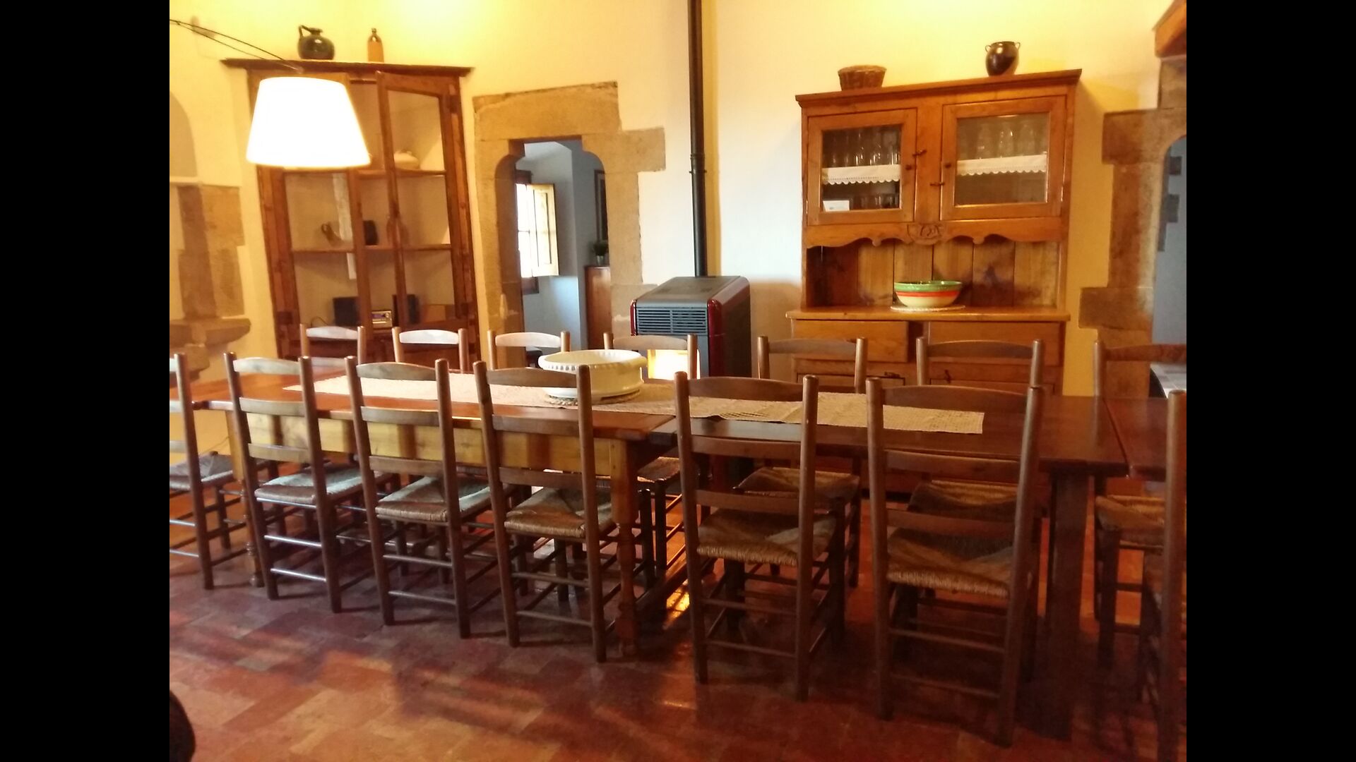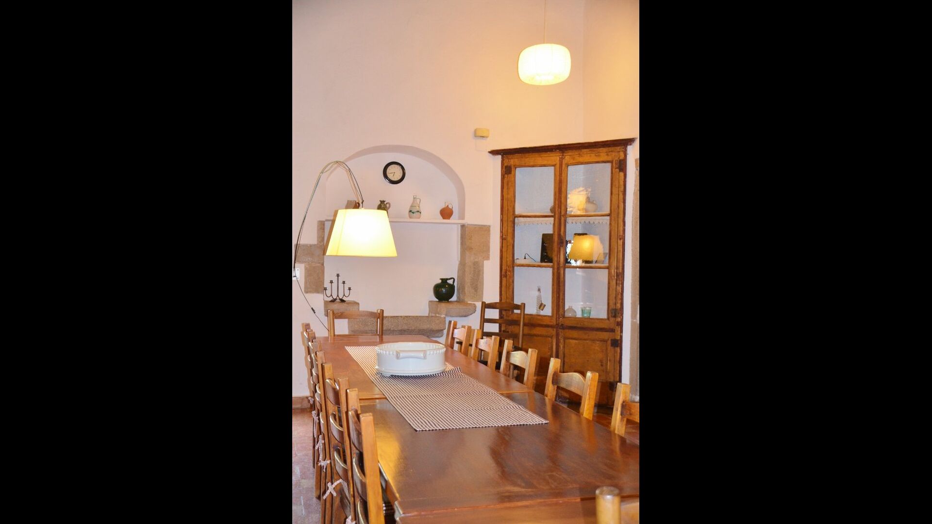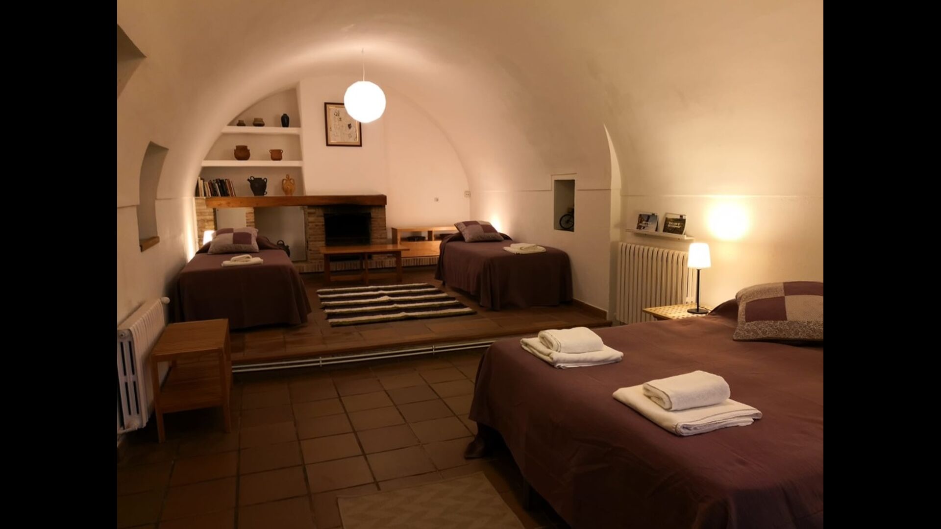 At the first floor, there is a very big common area in more classic Catalan style, where you will really sense the long history of the house. In this big area, there is a sofa-corner with TV and DVD and a long dining table. In connection, there is a fully equipped kitchen (dish washer, stove, hotplates, American fridge etc.) with a small dining area. In the house, there is a WIFI Internet connection.