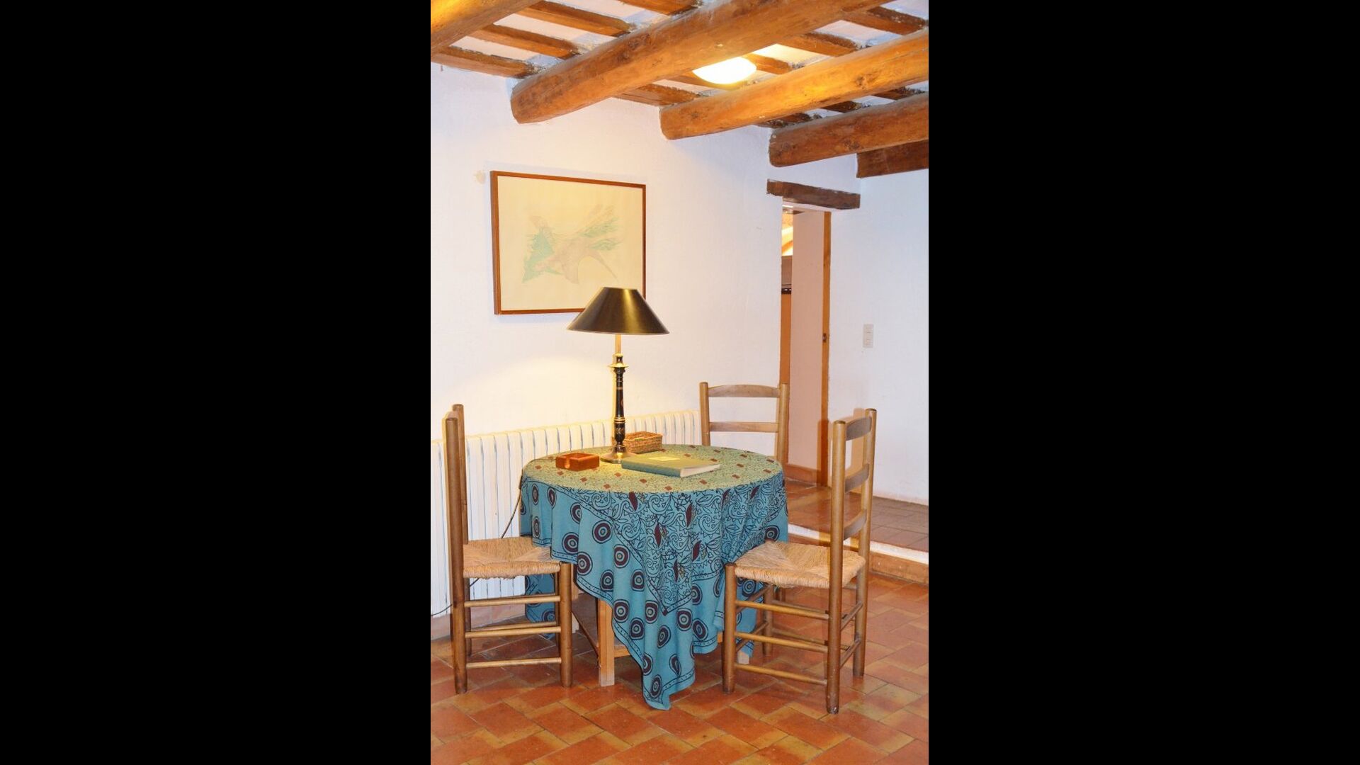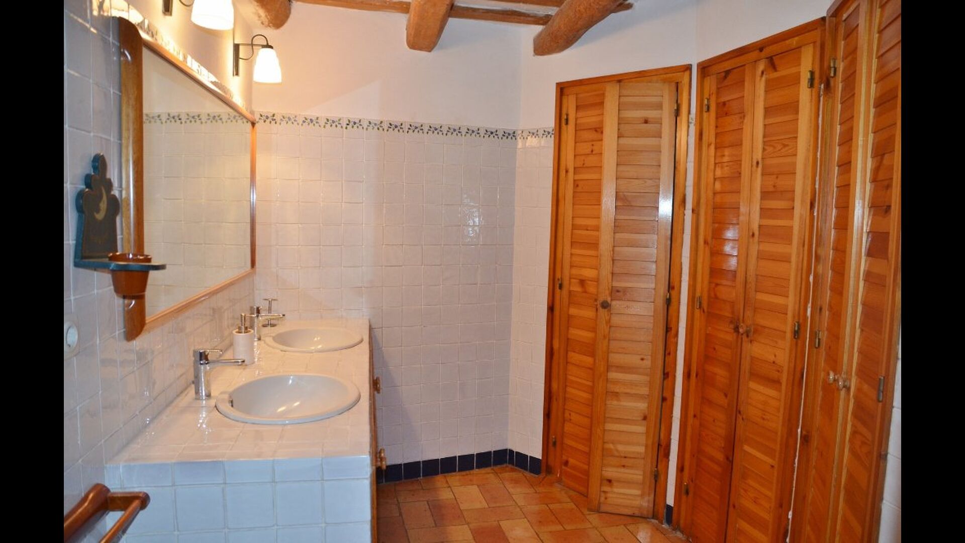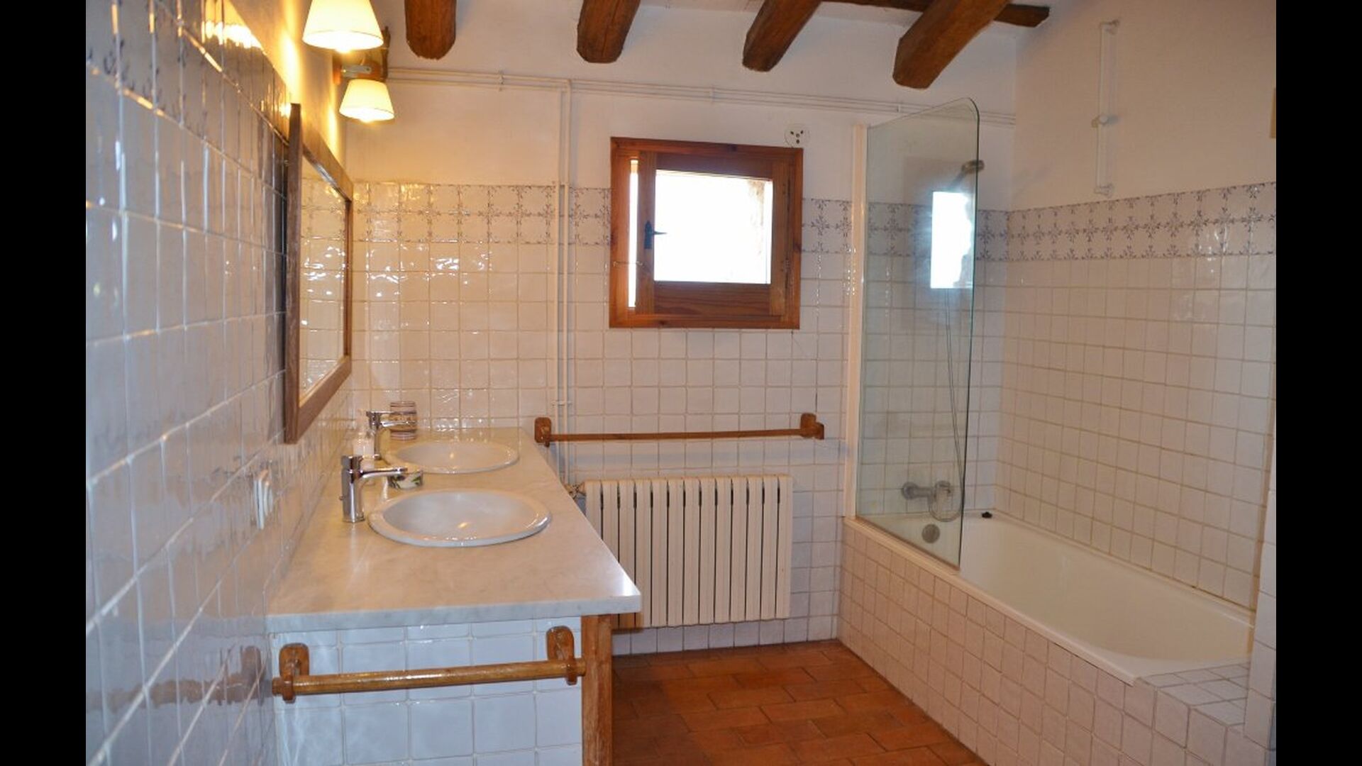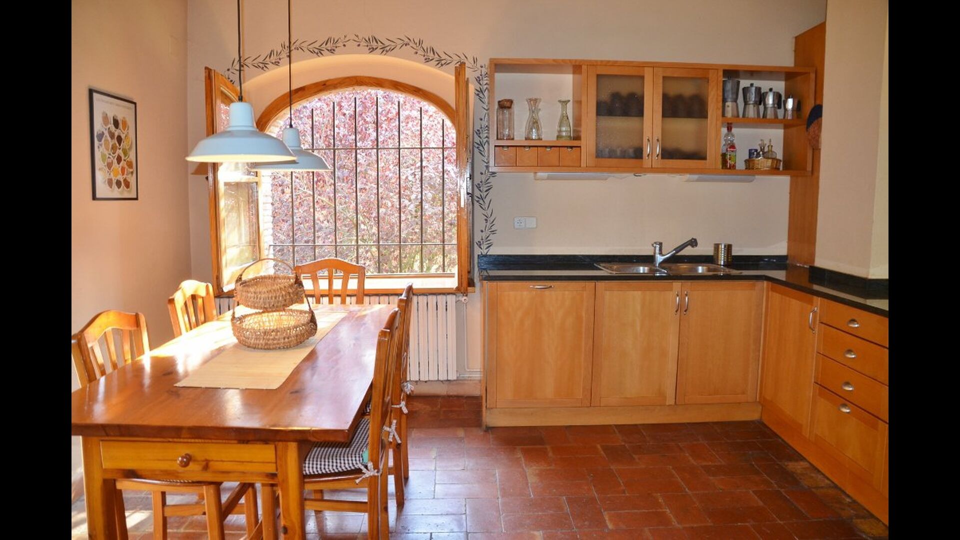 At the first floor, there is a very big common area in more classic Catalan style, where you will really sense the long history of the house. In this big area, there is a sofa-corner with TV and DVD and a long dining table. In connection, there is a fully equipped kitchen (dish washer, stove, hotplates, American fridge etc.) with a small dining area. In the house, there is a WIFI Internet connection.