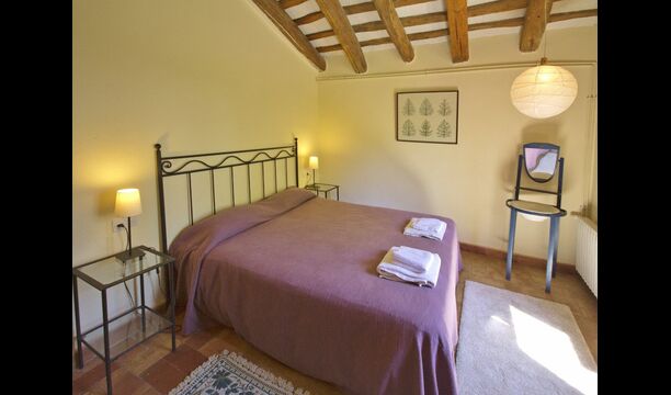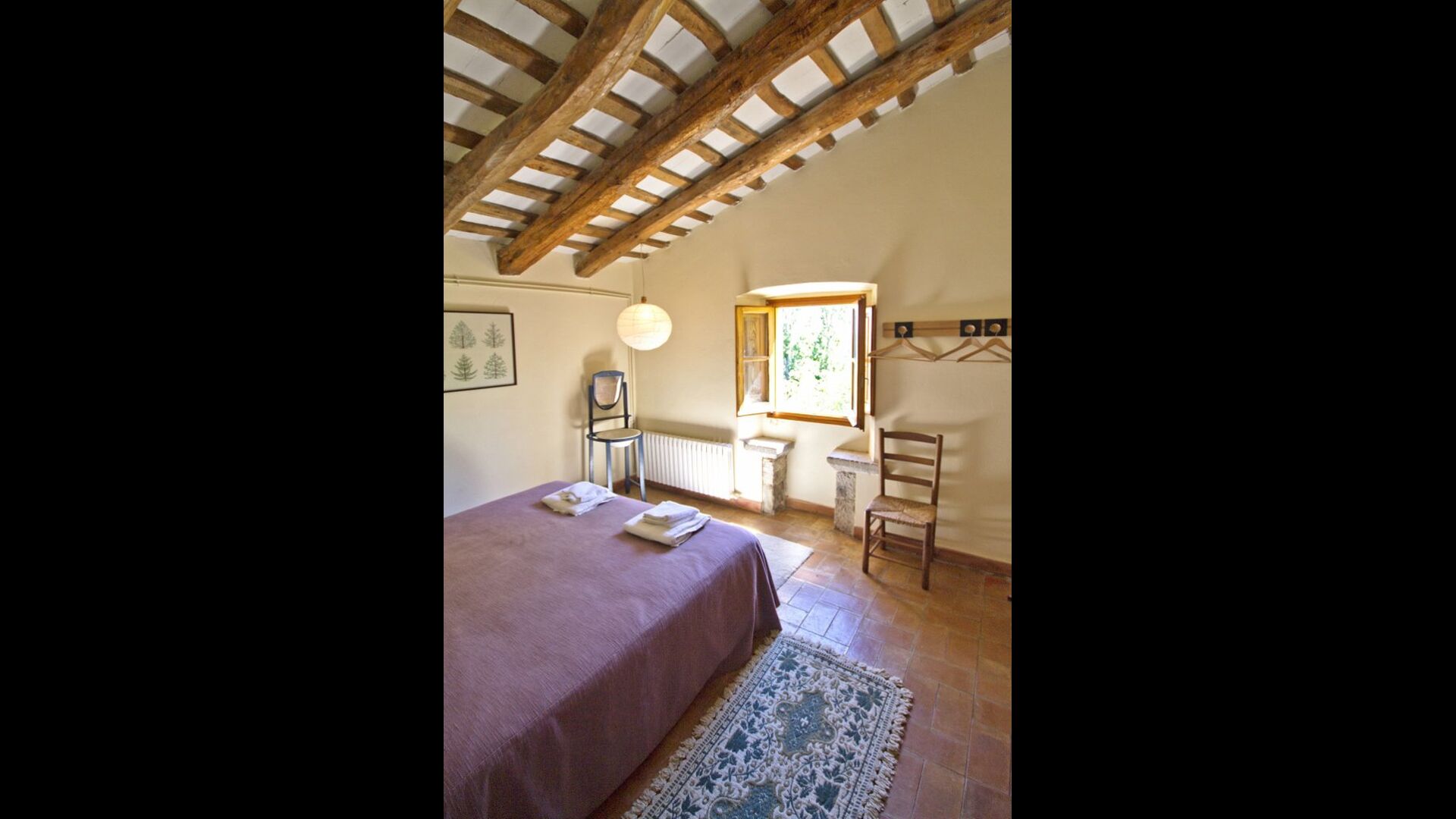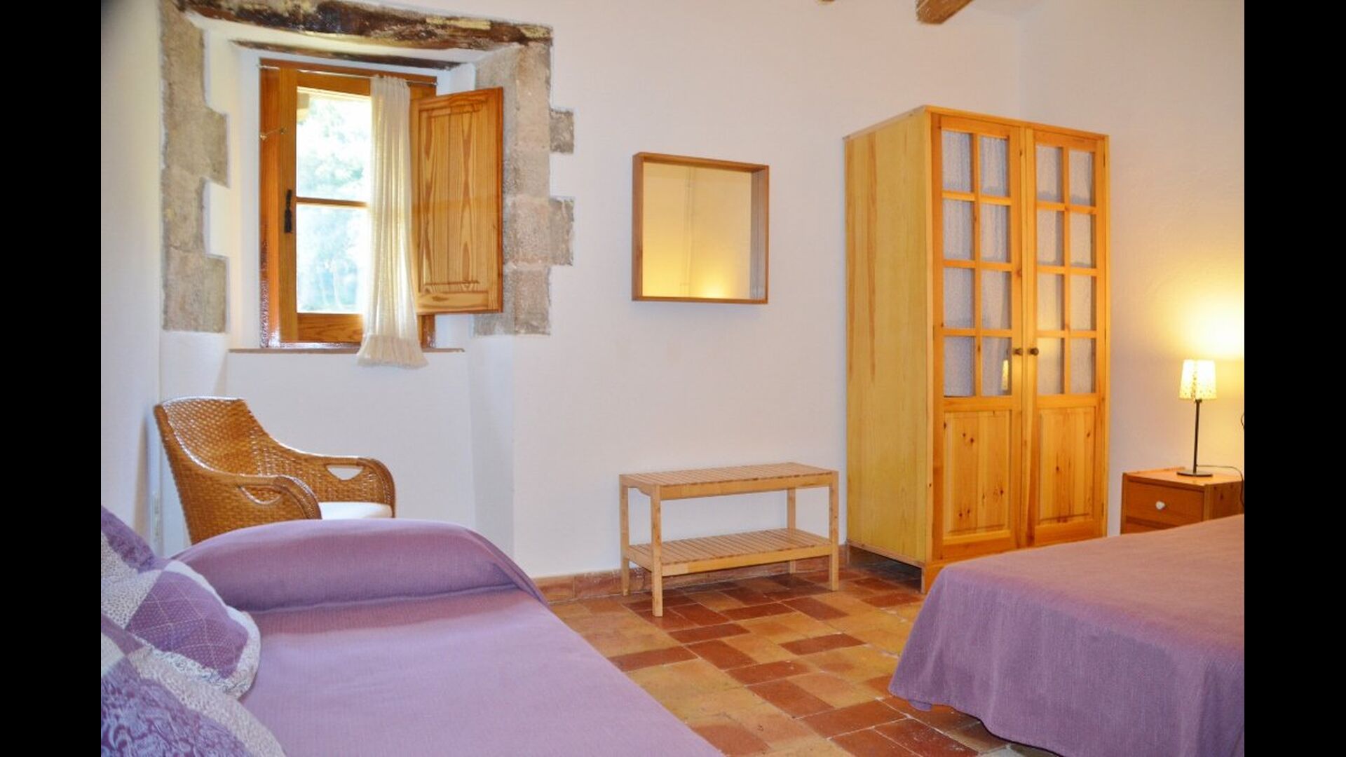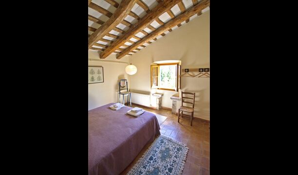 From the common area, there are access to five additional bedrooms, two of them doubles with double bed, one double with two single beds and one of them triple with 3 single beds. The rooms have a very nice view over the landscape and down towards the village. On this floor, there are two bathrooms to share.