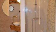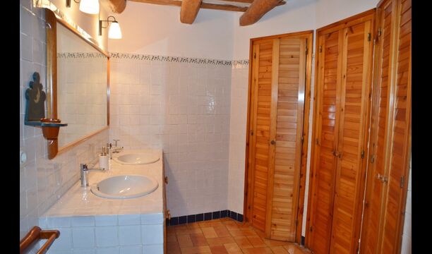 The house is entered in the ground floor by a beautiful hall with high ceiling and arches and a very nice atmosphere created by the limestones and many authentic details. This living room on the ground floor can be converted into a cozy family room. There is also a table tennis. In this floor, there is a sitting room and a double bedroom with bathroom ensuite and two steps up, a second beautiful family room with double bed and two single beds. Two steps up, there is another double room and a nice bathroom to share.