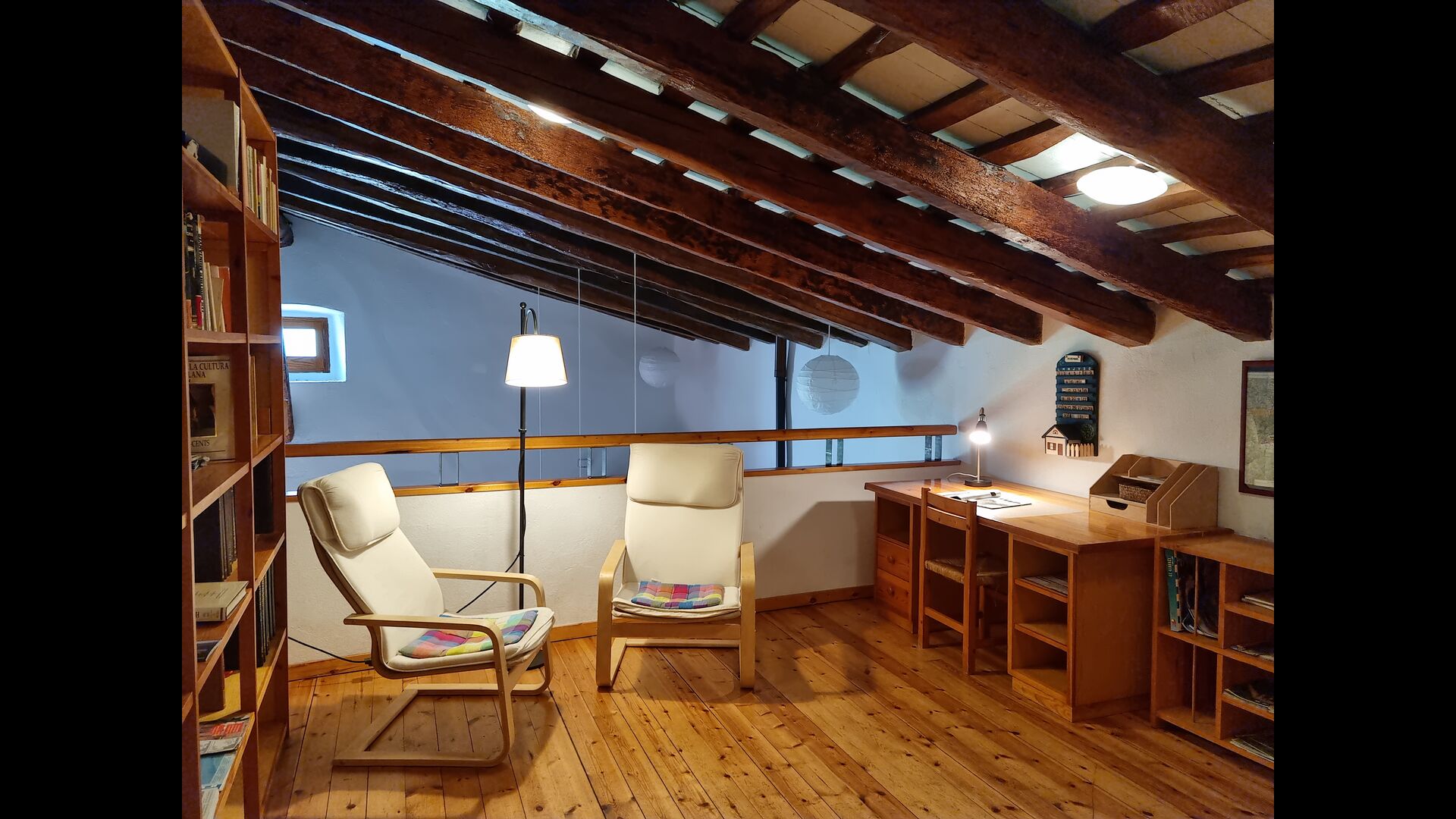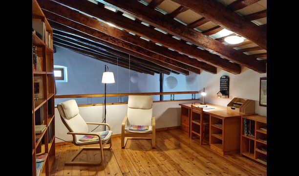 On the second floor, there is an area with is used as zone for children to play, and also a small “library” with some books and table games and also a lot of tourist information. Also on this floor, there is a double room with double bed and a double room with two single beds. These bedrooms share bathrooms with the first-floor bedrooms.