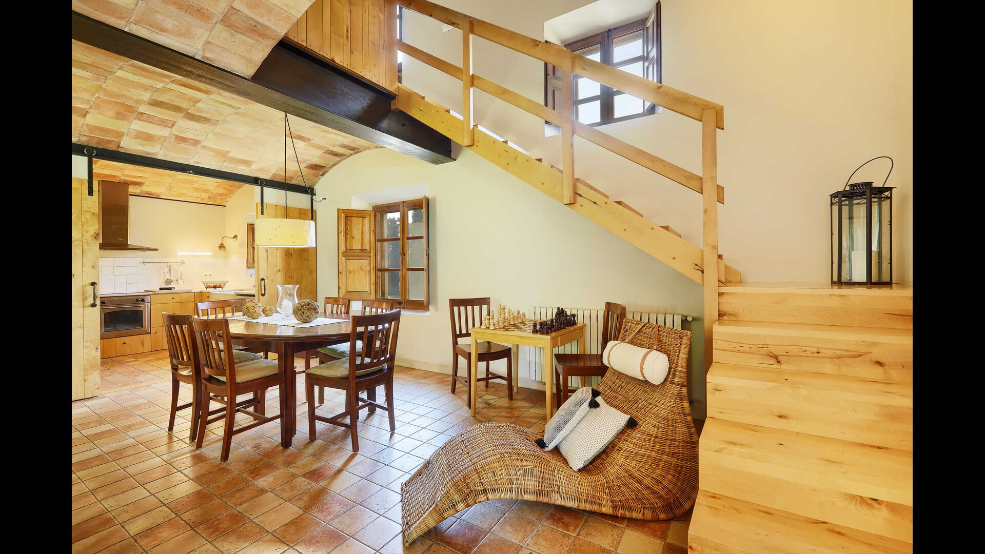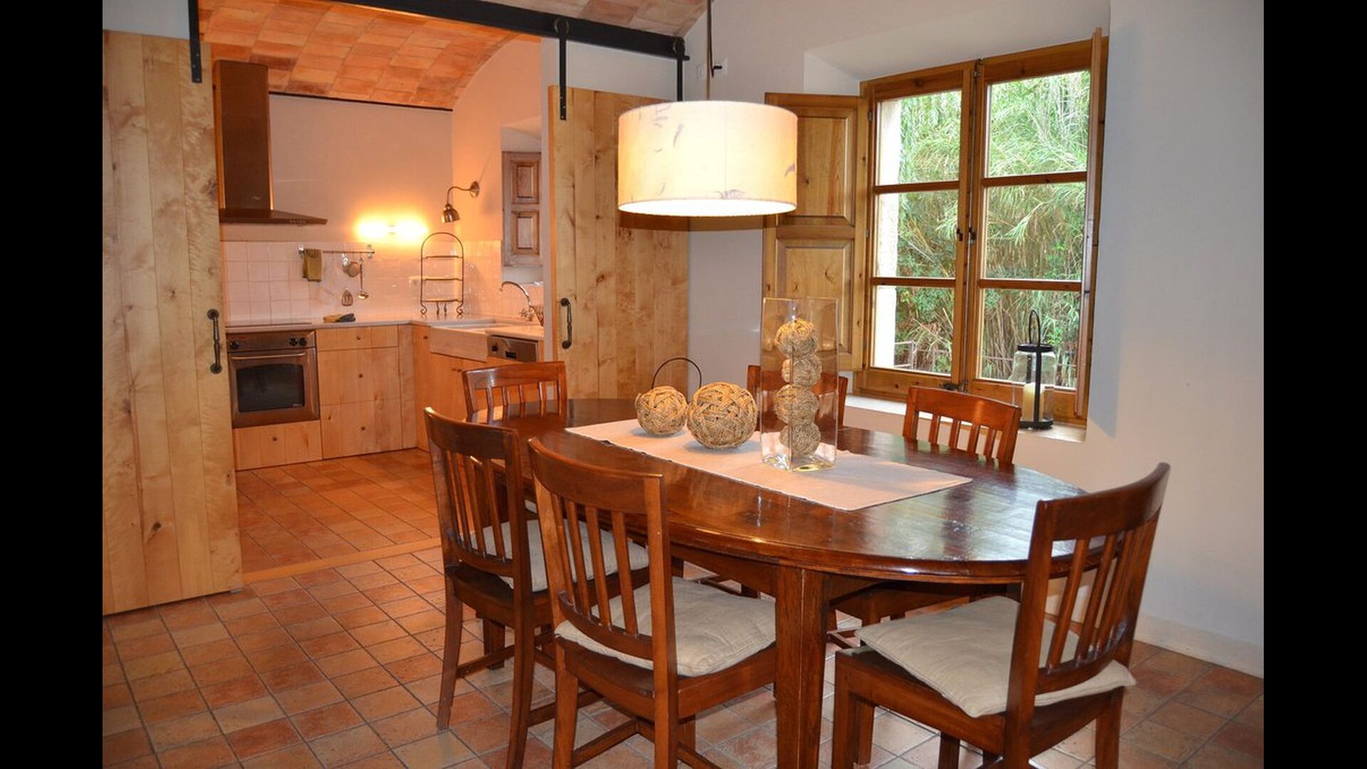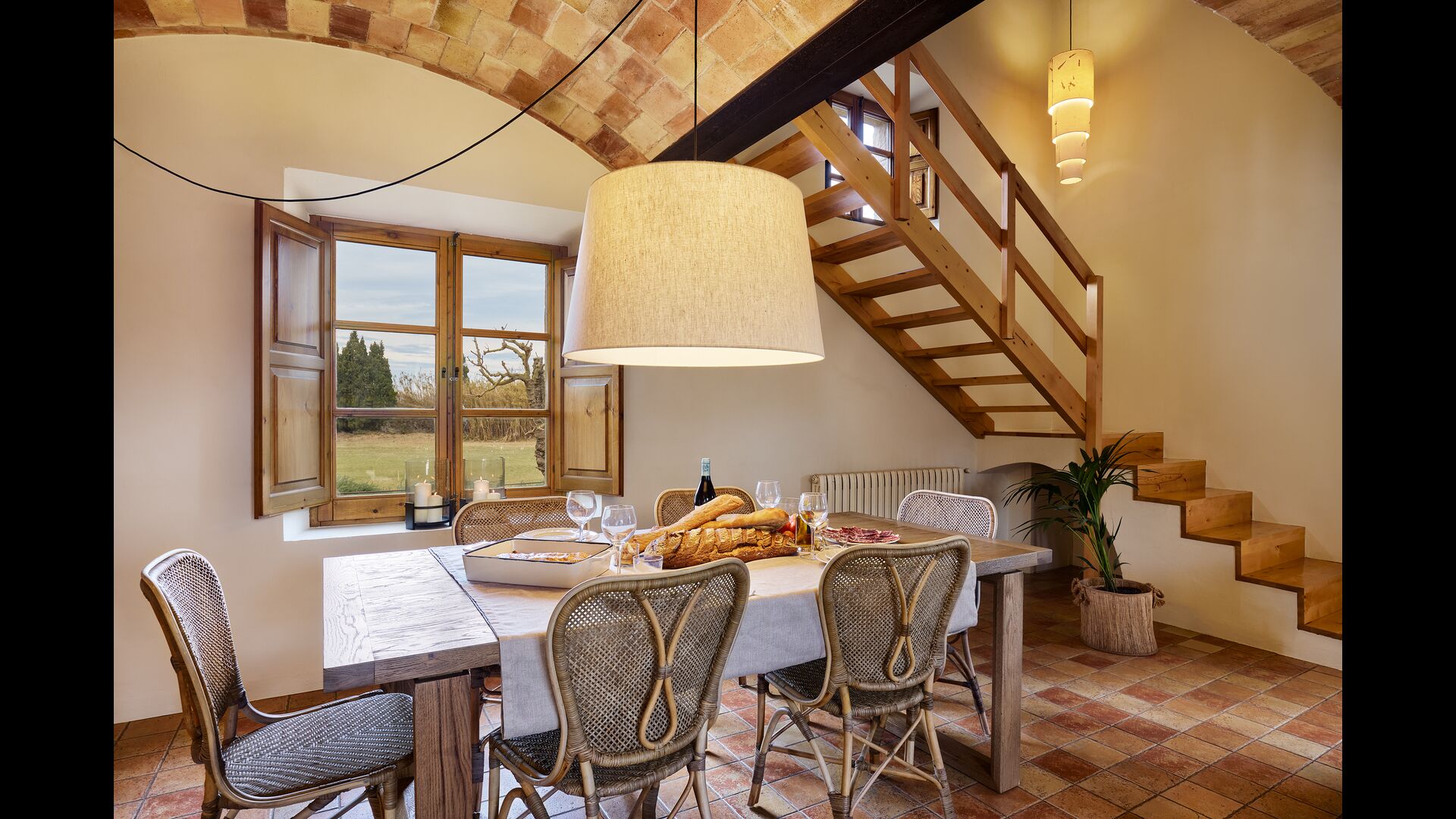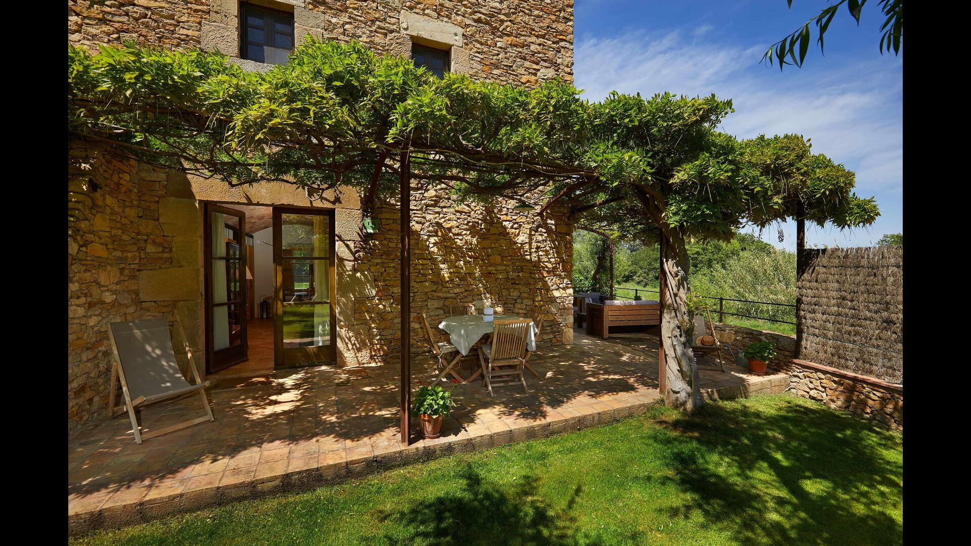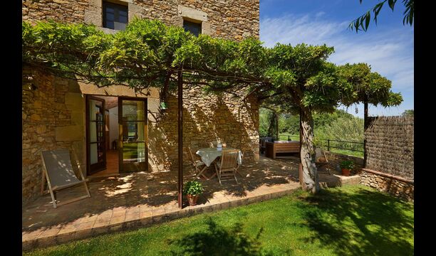 The lovely holiday apartment is located with the front facing the large garden. The house with its stone walls has a very authentic and rustic atmosphere. The apartment has a terrace, where you can enjoy your homemade meals during the warm Catalan evenings.
