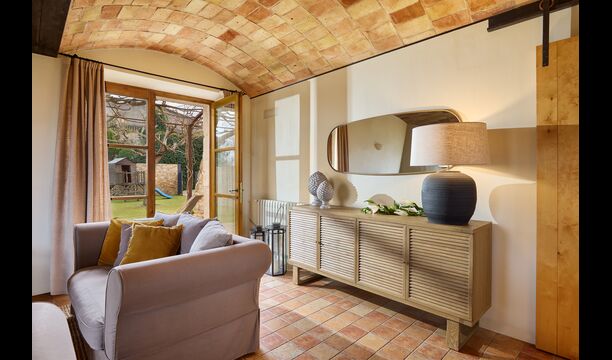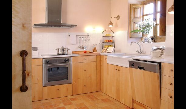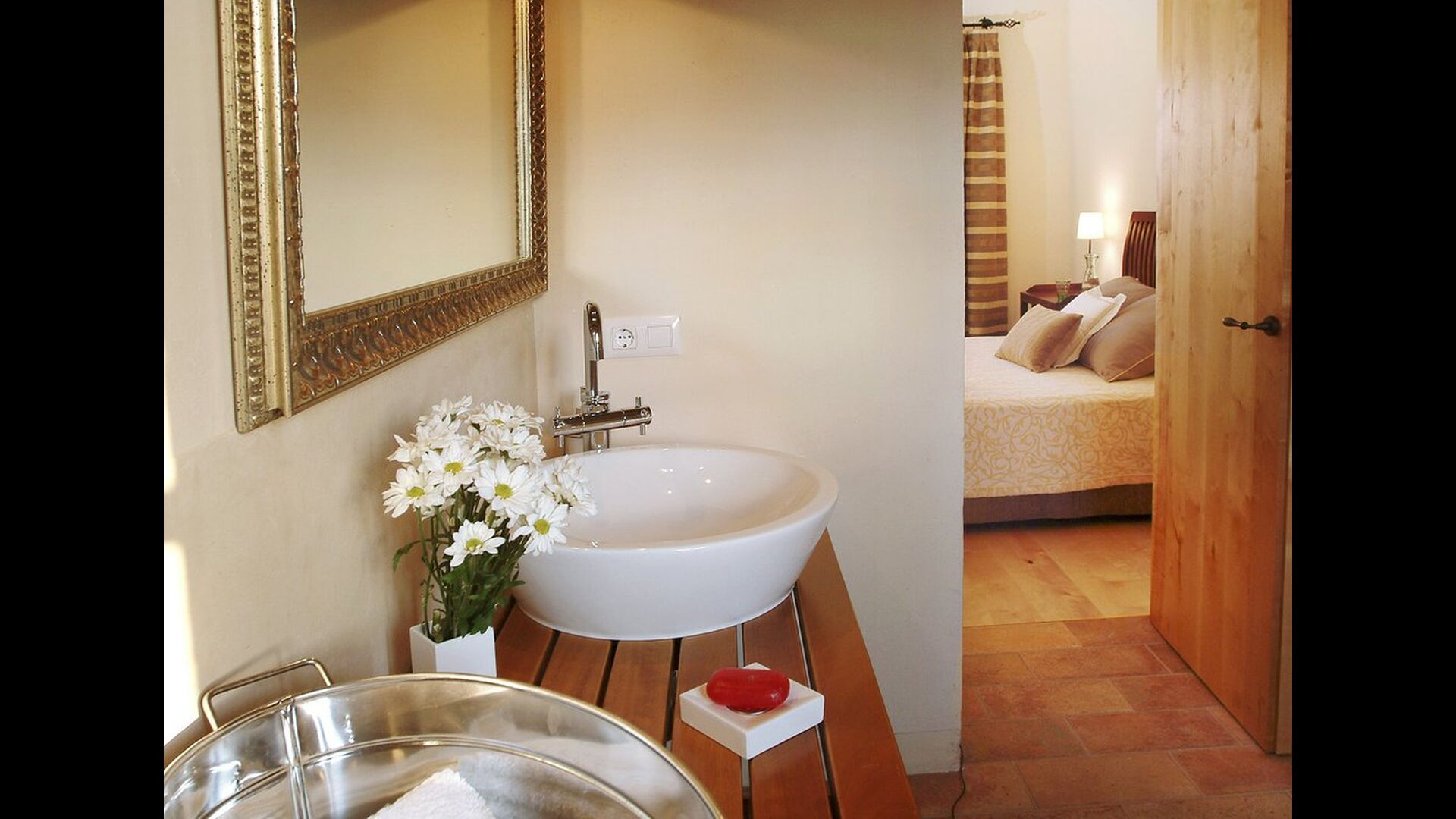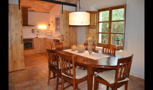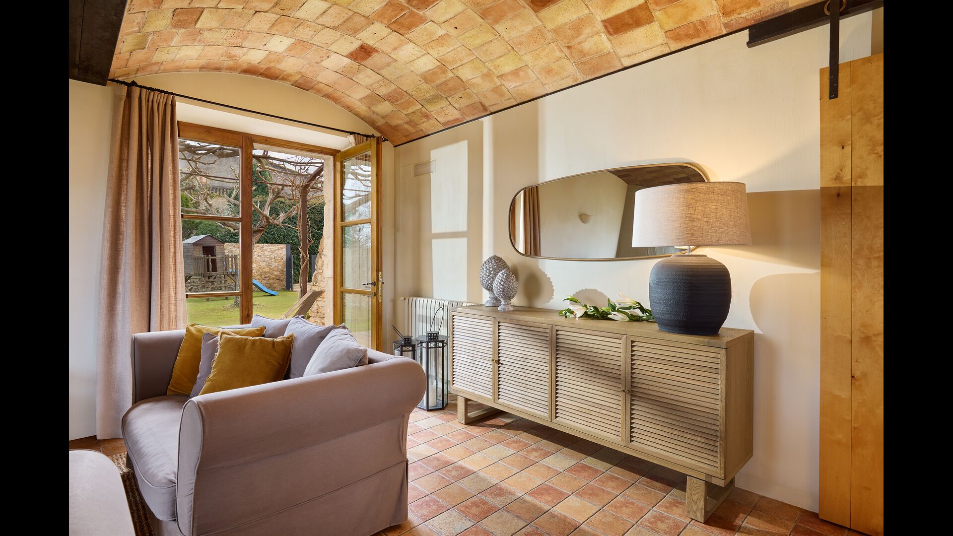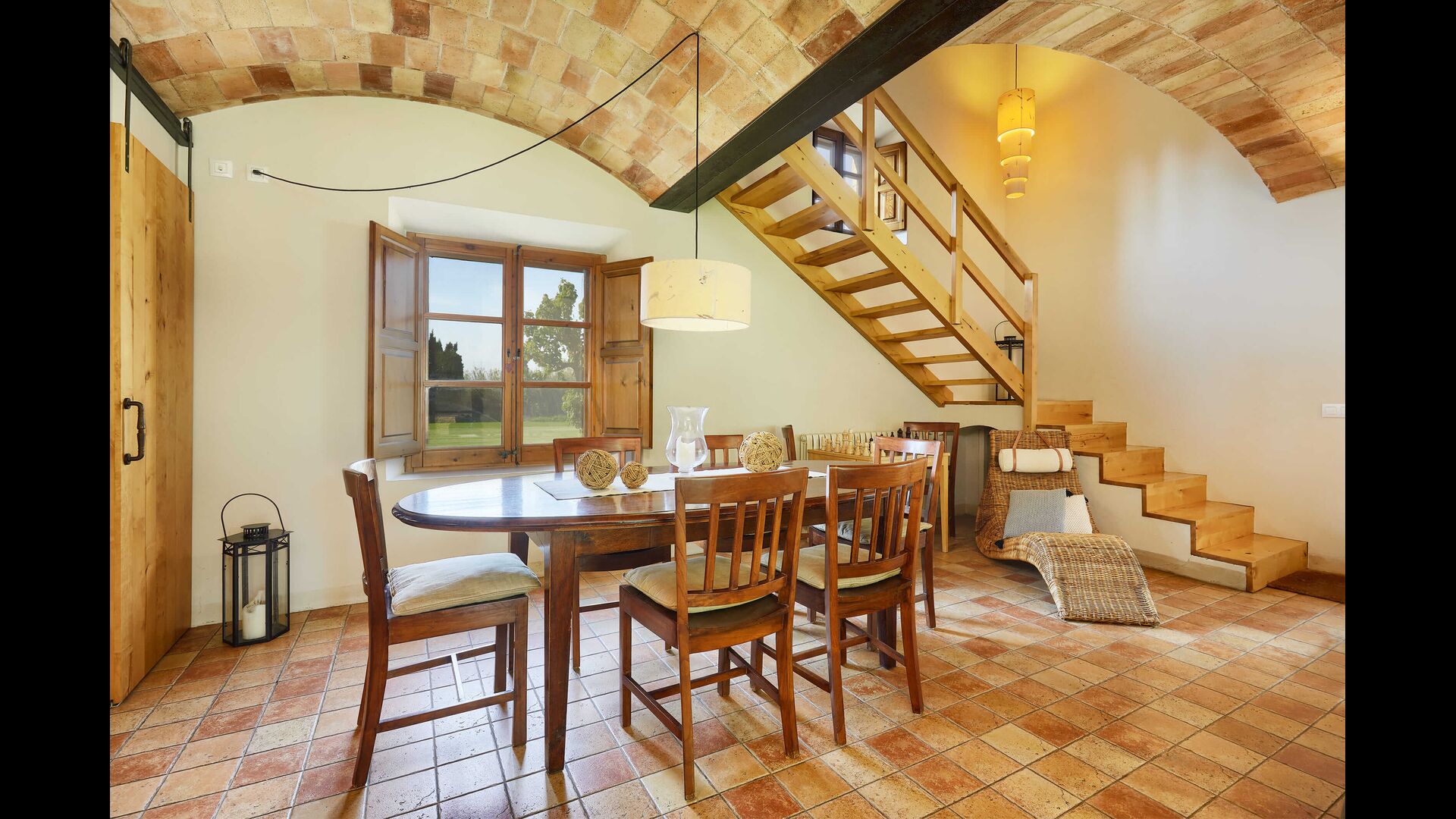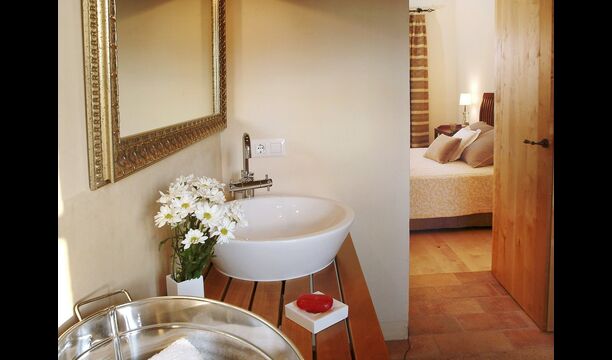 The lovely holiday apartment is located with the front facing the large garden. The house with its stone walls has a very authentic and rustic atmosphere. The apartment has a terrace, where you can enjoy your homemade meals during the warm Catalan evenings.
