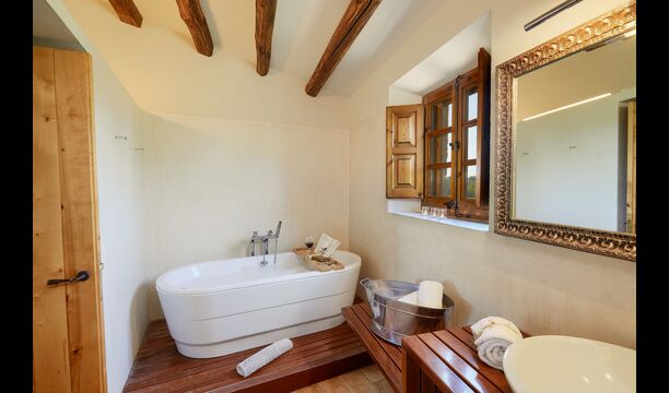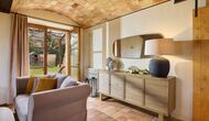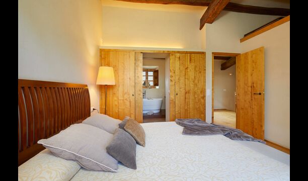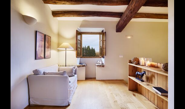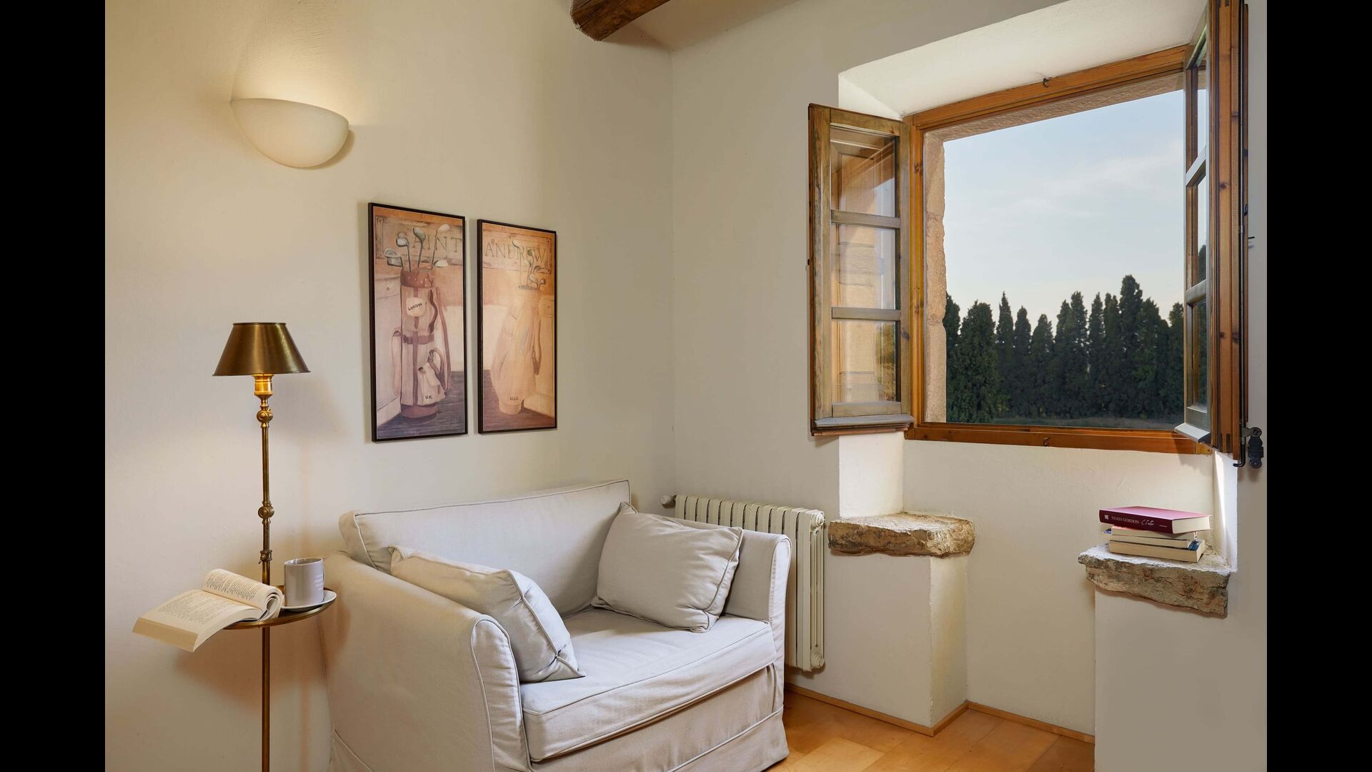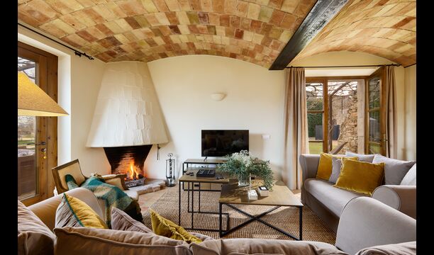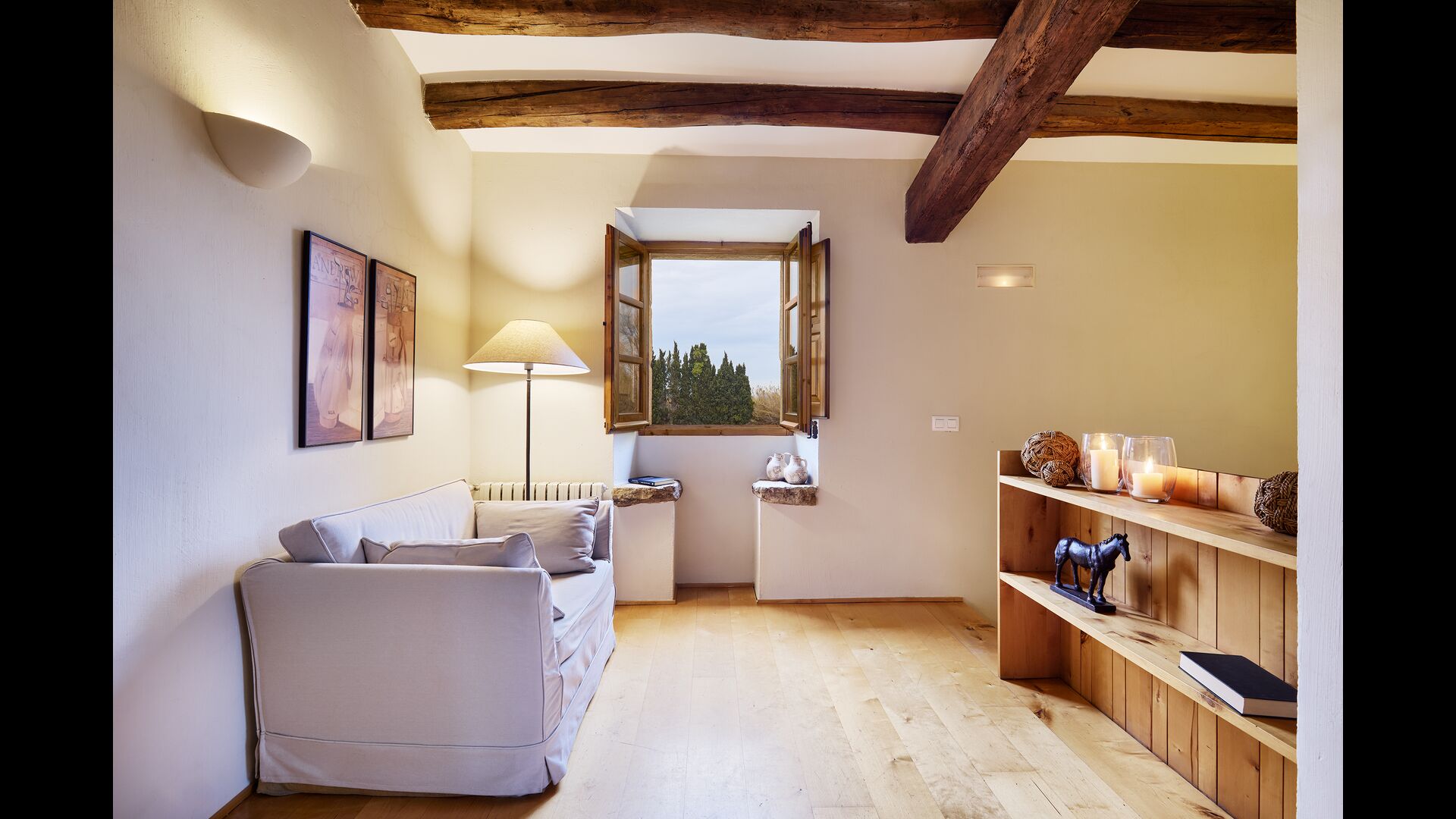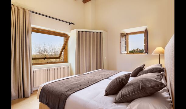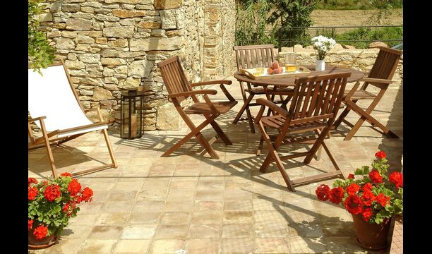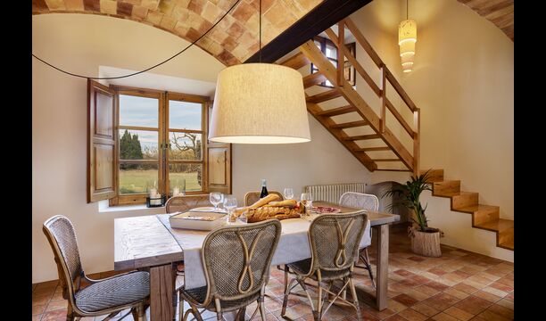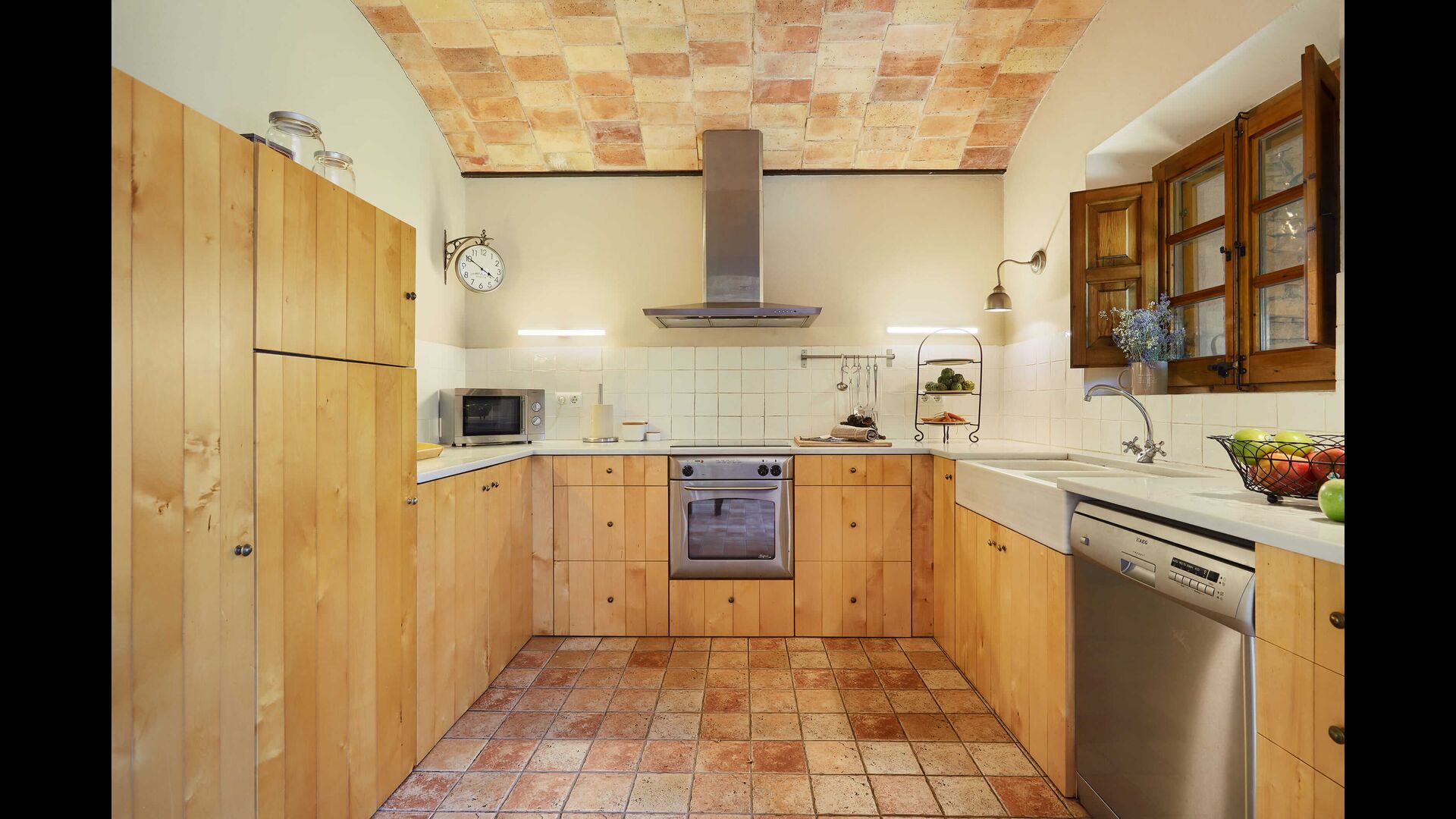 The lovely holiday apartment is located with the front facing the large garden. The house with its stone walls has a very authentic and rustic atmosphere. The apartment has a terrace, where you can enjoy your homemade meals during the warm Catalan evenings.