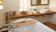 If you go inside, you are met by an apartment of very high quality, and it's not just the material. There is also a good atmosphere in the house. Central to the apartment is the living room as the natural meeting point. Here there is a cosy sofa corner, where you can watch TV or just be together. Furthermore , there is a nice dining table in the living room. Through two sliding doors, there is a large entrance to the kitchen, which is equipped with an oven, a dishwasher and many other necessities. The two bedrooms, located on the first floor, are like the rest of the apartment beautifully decorated. They each have a great and spacious en suite bathroom, one of them with a bathtub.