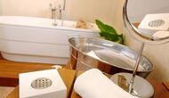 If you go inside, you are met by an apartment of very high quality, and it's not just the material. There is also a good atmosphere in the house. Central to the apartment is the living room as the natural meeting point. Here there is a cosy sofa corner, where you can watch TV or just be together. Furthermore , there is a nice dining table in the living room. Through two sliding doors, there is a large entrance to the kitchen, which is equipped with an oven, a dishwasher and many other necessities. The two bedrooms, located on the first floor, are like the rest of the apartment beautifully decorated. They each have a great and spacious en suite bathroom, one of them with a bathtub.