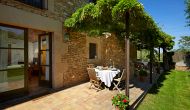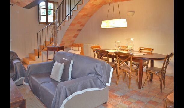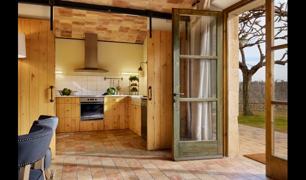 The lovely holiday apartment is located with the front facing the large garden. The house with its stone walls has a very authentic and rustic atmosphere. The apartment has a terrace, where you can enjoy your homemade meals during the warm Catalan evenings.