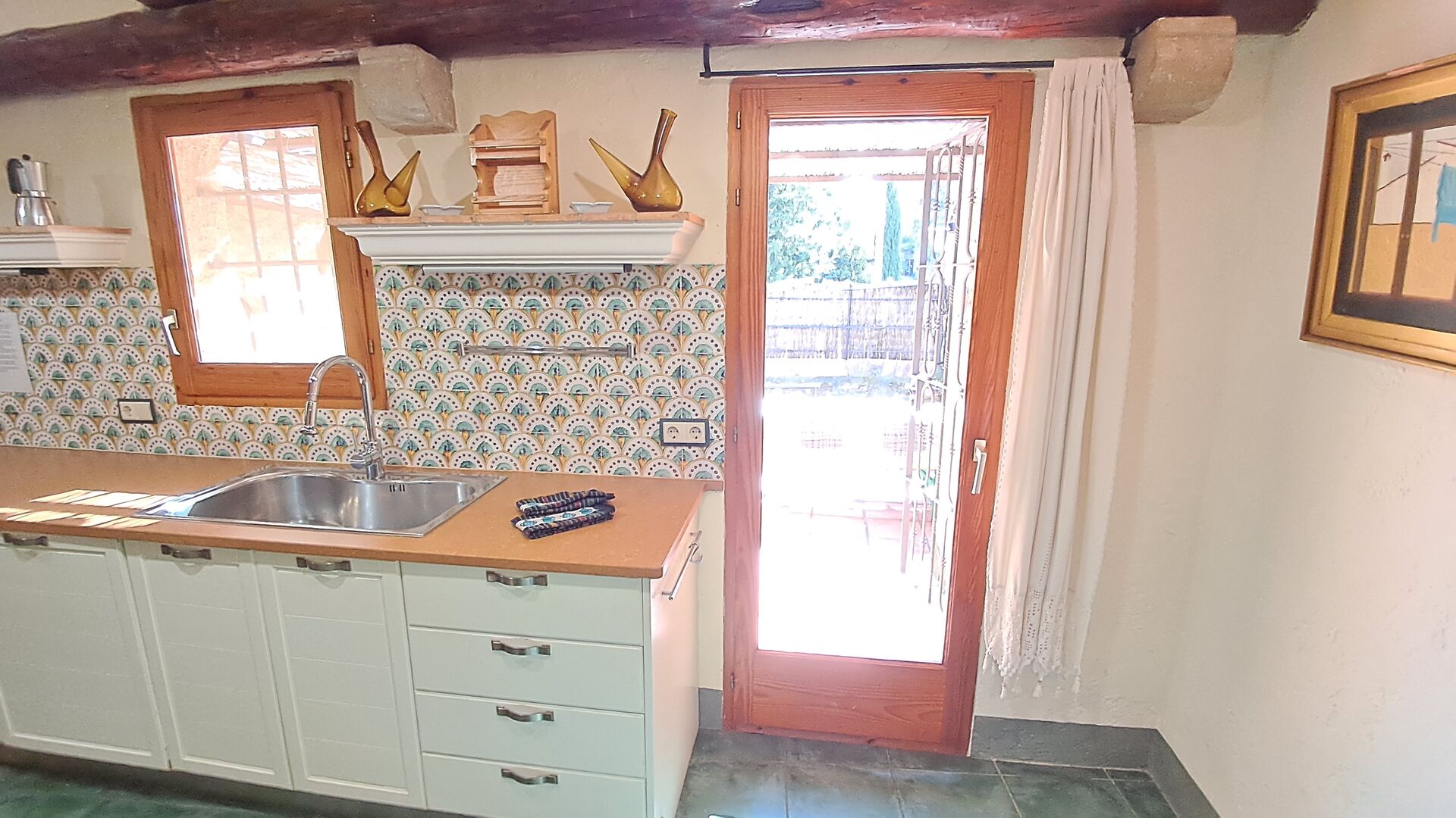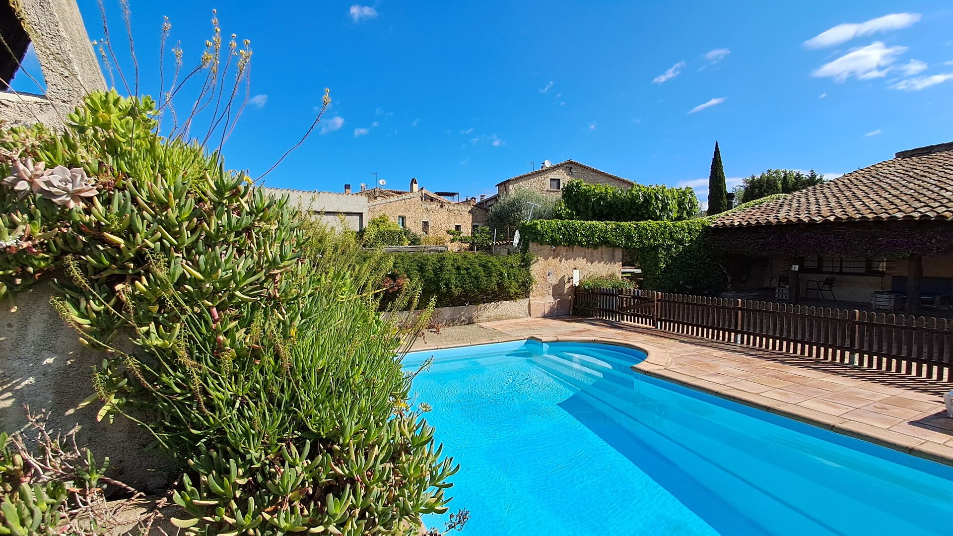 Can de Gato is located in a small village, ideally situated right between the beautiful regional capital of Girona, Figueres with the "Museo Teatro Dalí" and the beaches of Costa Brava, for instance in L'Escala -- about 20 minutes’ drive away. There are no services in the village, but in the next village 3 km. away, you will find a bakery, a restaurant, and a train station with direct trains to Girona and Barcelona. The nearest supermarket you find 6 km. away in Báscara.