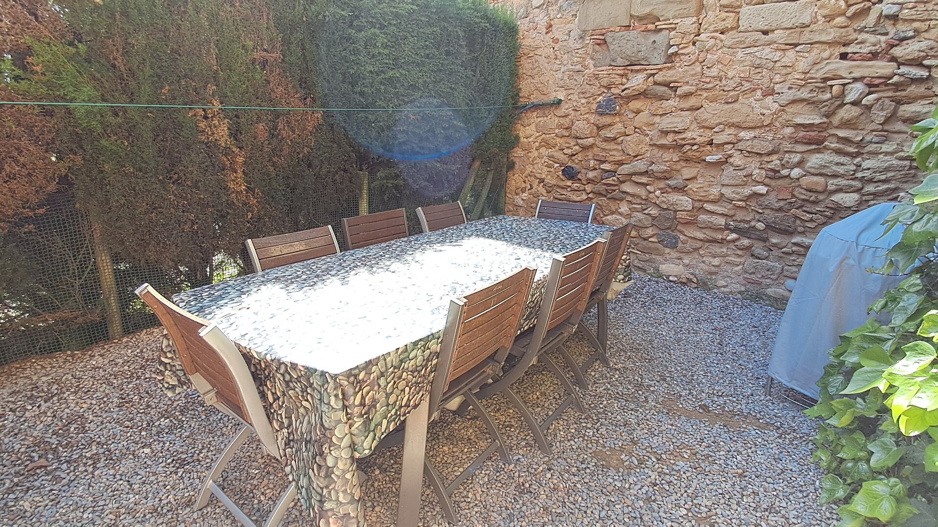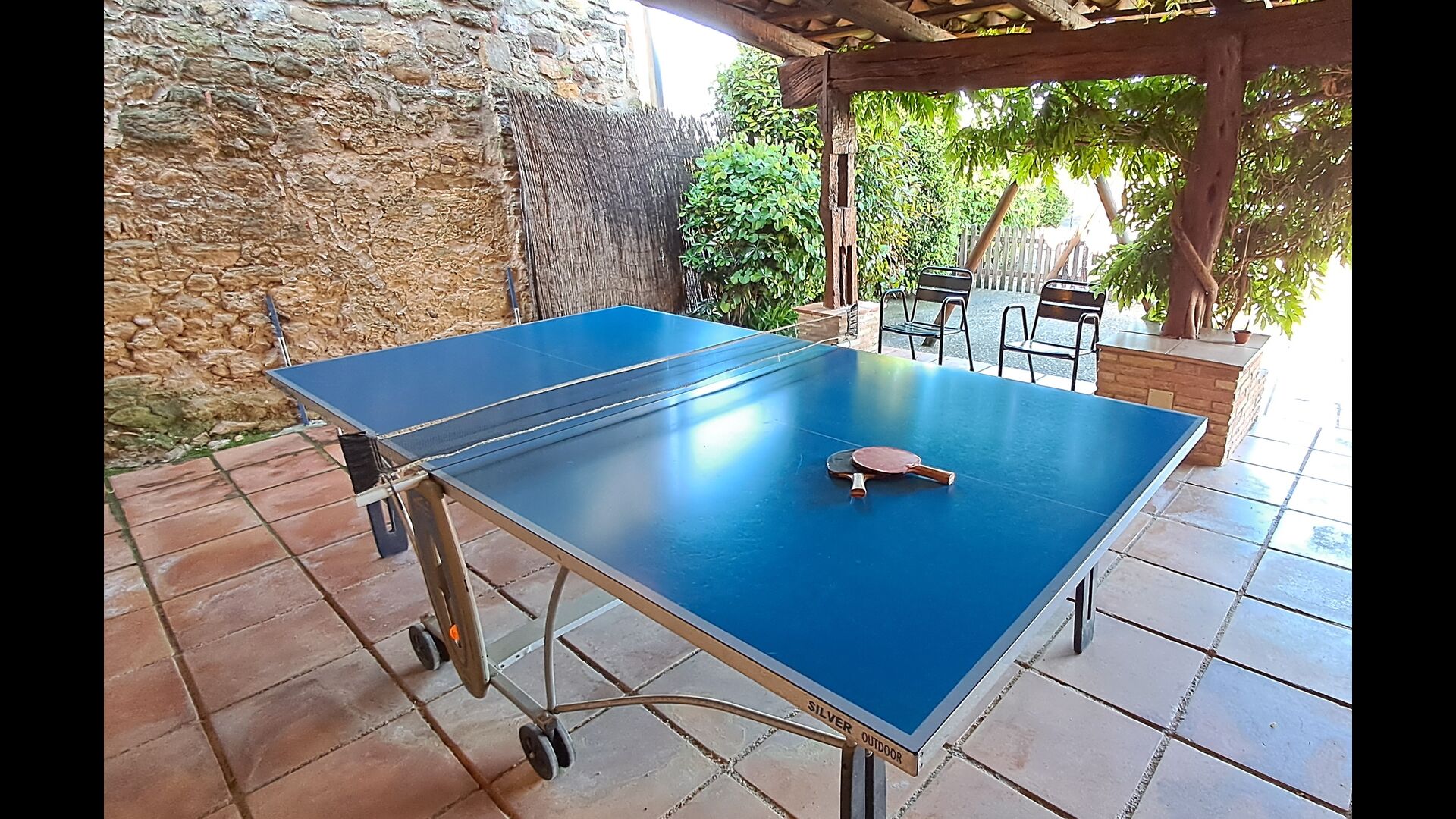 The garden is a large, entirely fenced, spacious area of 3100m2, with various trees and plants, and is shared between the different houses. In the garden you will find many activities/facilities.