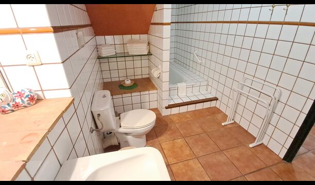 Moreover, there is a game room for the children to have fun in – coming with, among other things, a table football setup. Another communal facility is a washing machine and an ironing board for your clothes, and clothing pegs and a clothesline are included as well. Speaking of fabrics, the garden also has a hammock for you to laze around in, enjoying the warm summer weather in a gently rocking fashion.