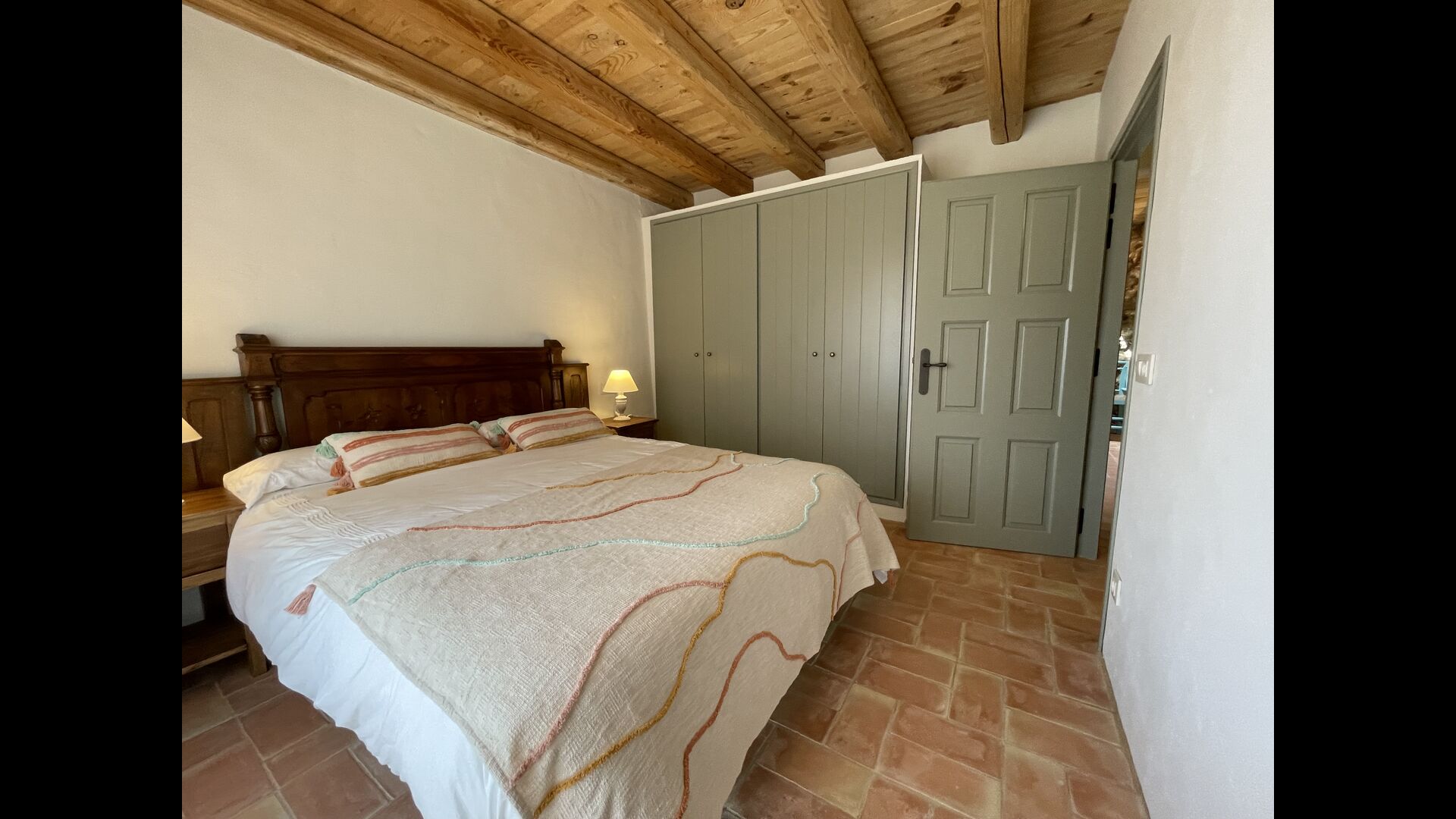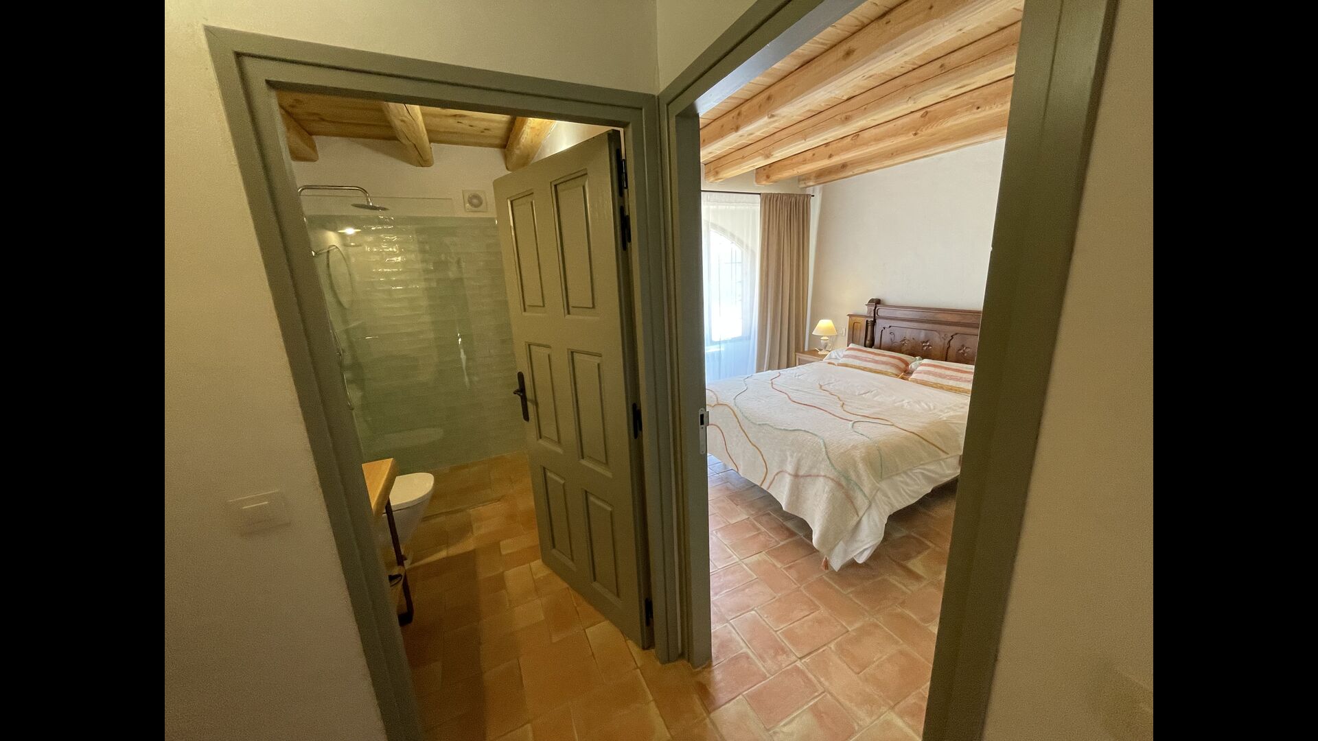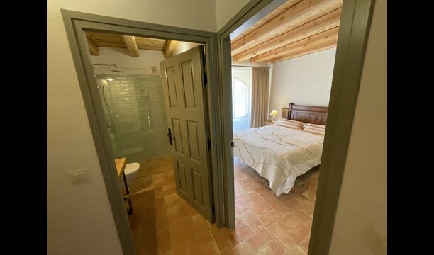 Moving inside, you’ll find the well-equipped, open kitchen and dining room to the right of the entrance and a bathroom along with a double room on your left. There’s also a spacious living room on the ground floor with a TV and access to the terrace outside. Upstairs, you’ll find the remaining 4 double rooms. In total, there are 3 bathrooms in the villa - 2 of them upstairs, and 1 on the ground floor.