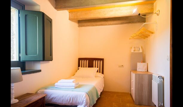 The apartment for 4 persons located on the ground floor of the main building to the right from the entrance. You pass a common activity-room before reaching the door of El Forn. The first room of El Forn is a beautiful living room with sofa and flatscreen TV, thus giving good opportunity to retire and relax. Further on there is a well-equipped kitchen with Nespresso, microwave, washing machine, oven, dishwasher, refrigerator and freezer.