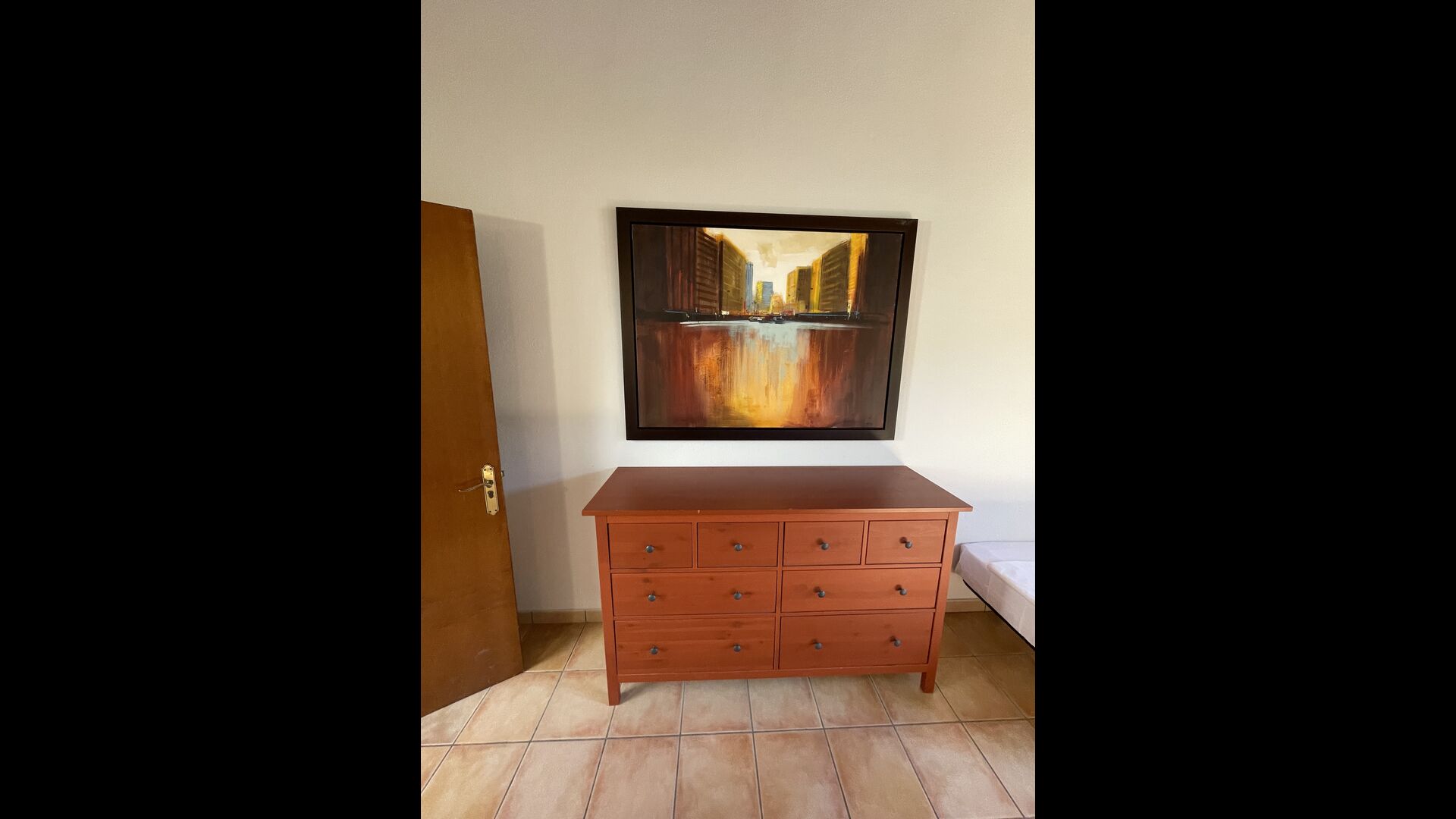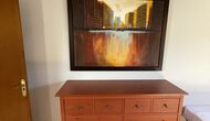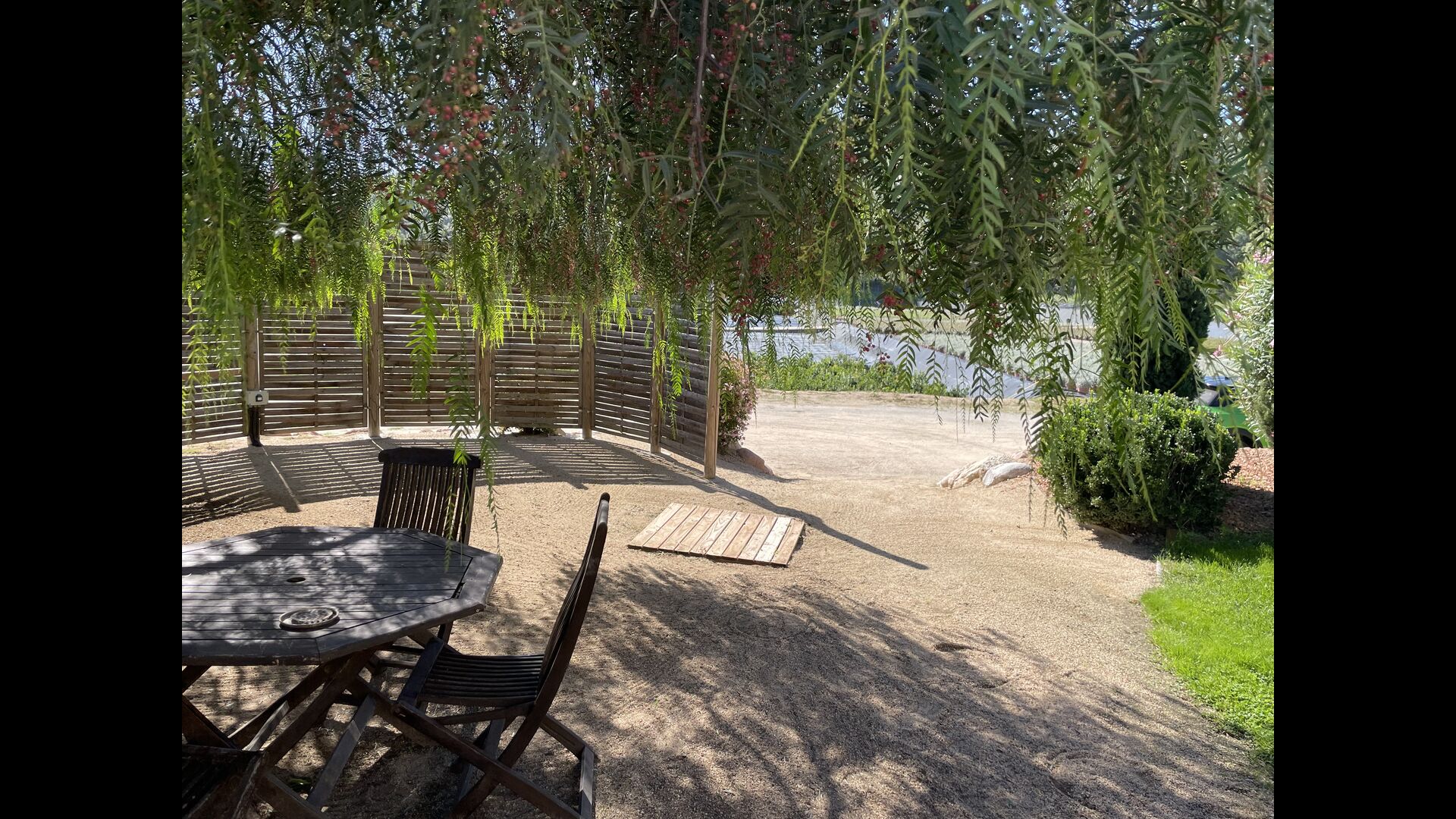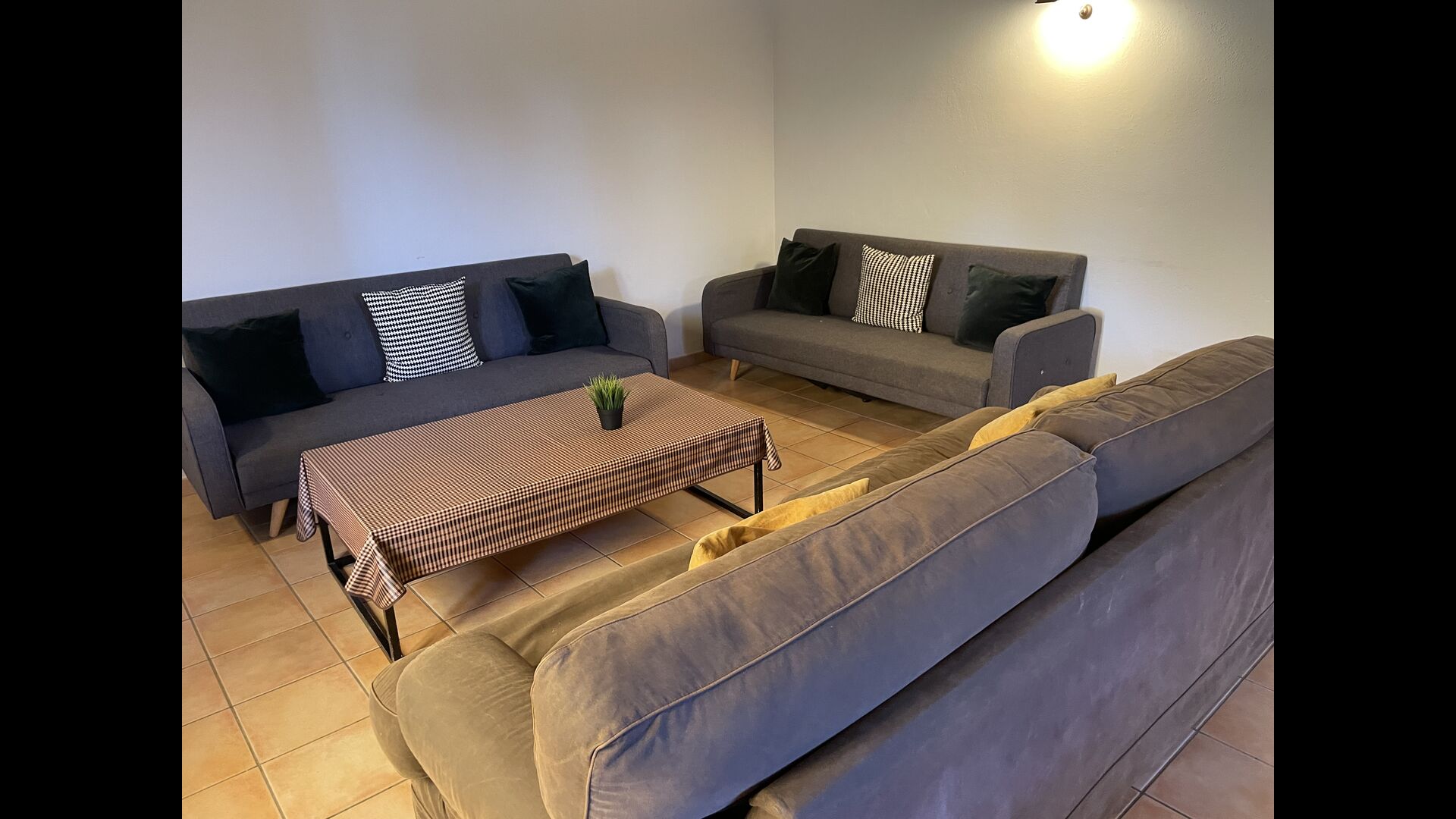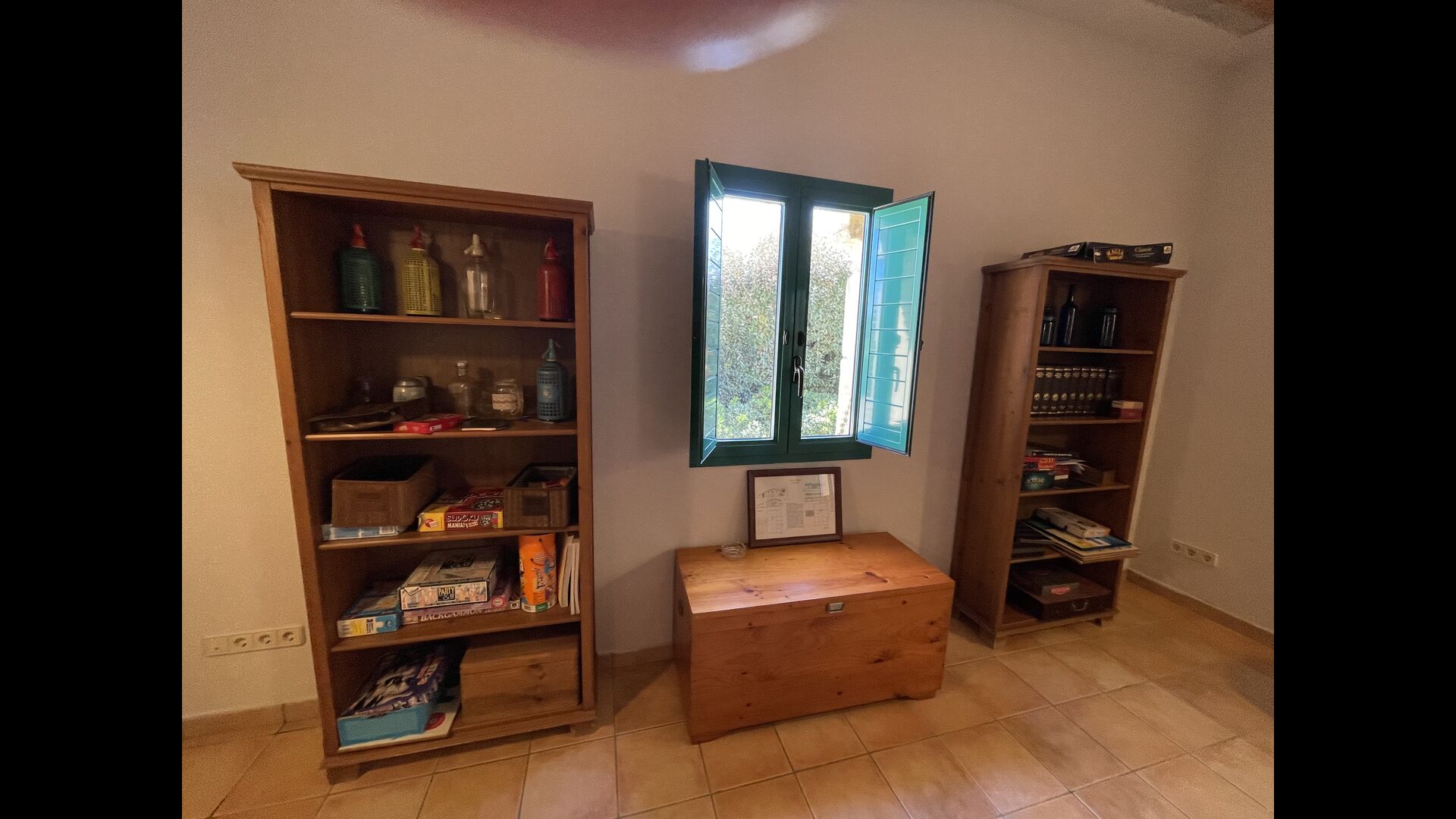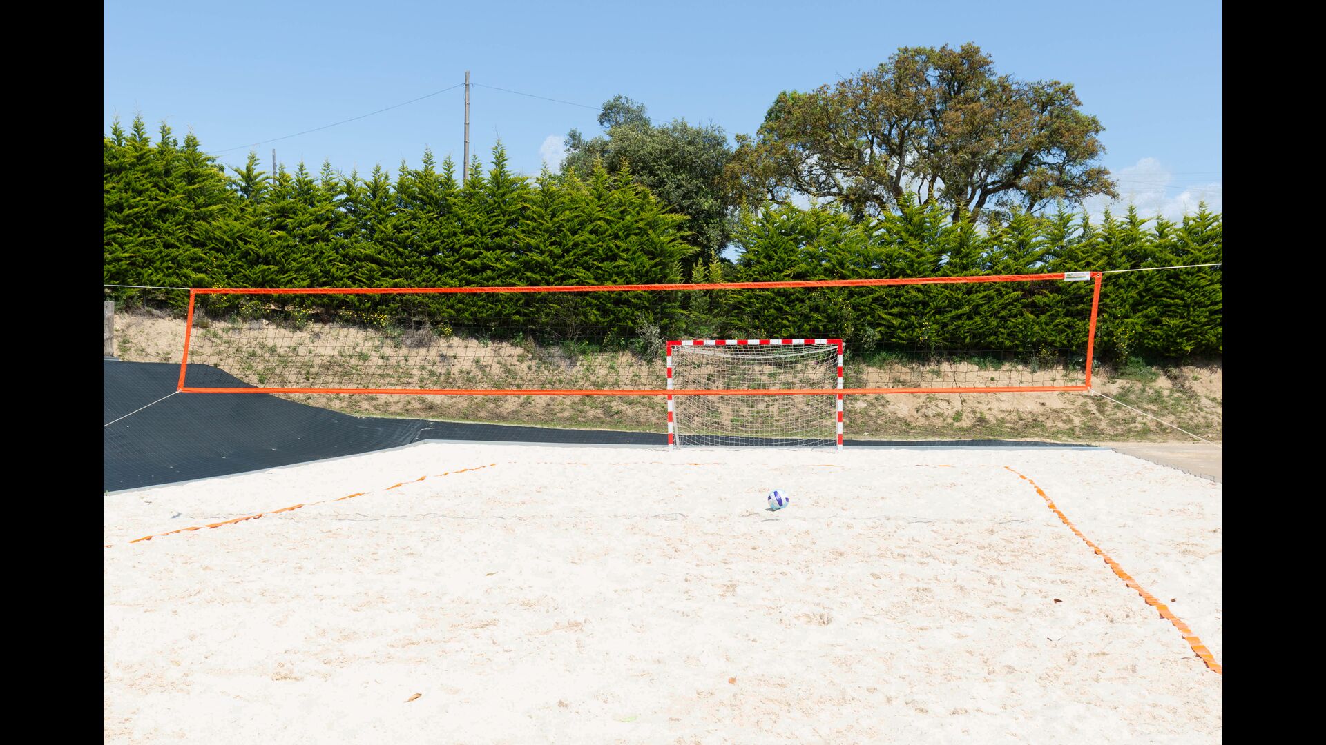 The large sitting room comes with a dining table and 3 sofas. There is also a TV. There is also the game room, containing table football, throwing darts and billiards, and in the garden, you will also find a table tennis setup. Plenty of things to keep the children – and adults - entertained! Also on the first floor you will find 2 bedrooms - both are double bedrooms.