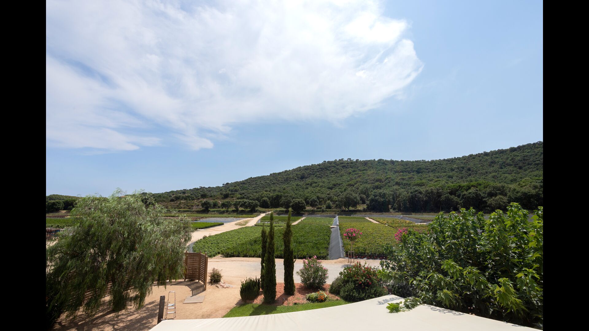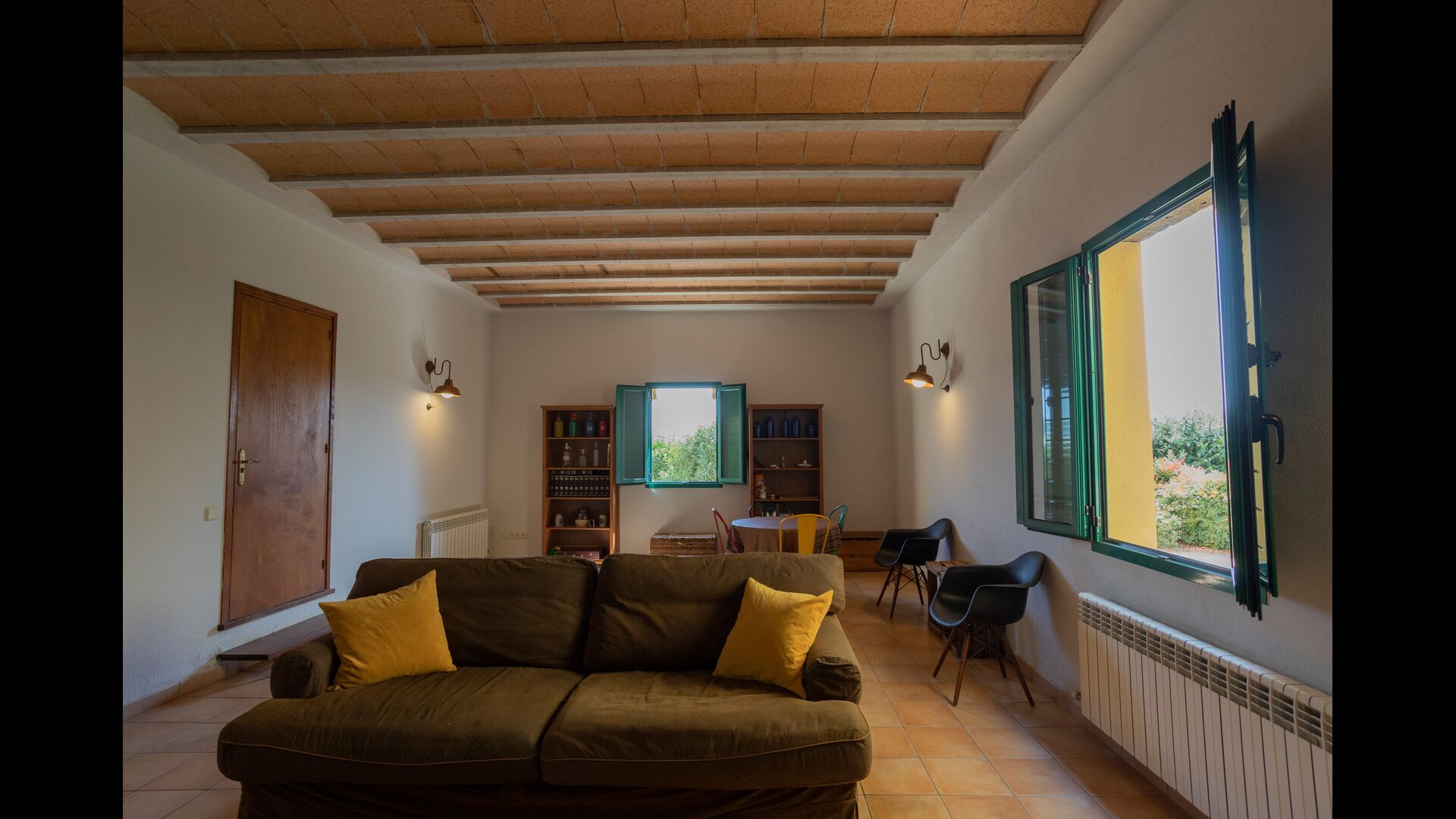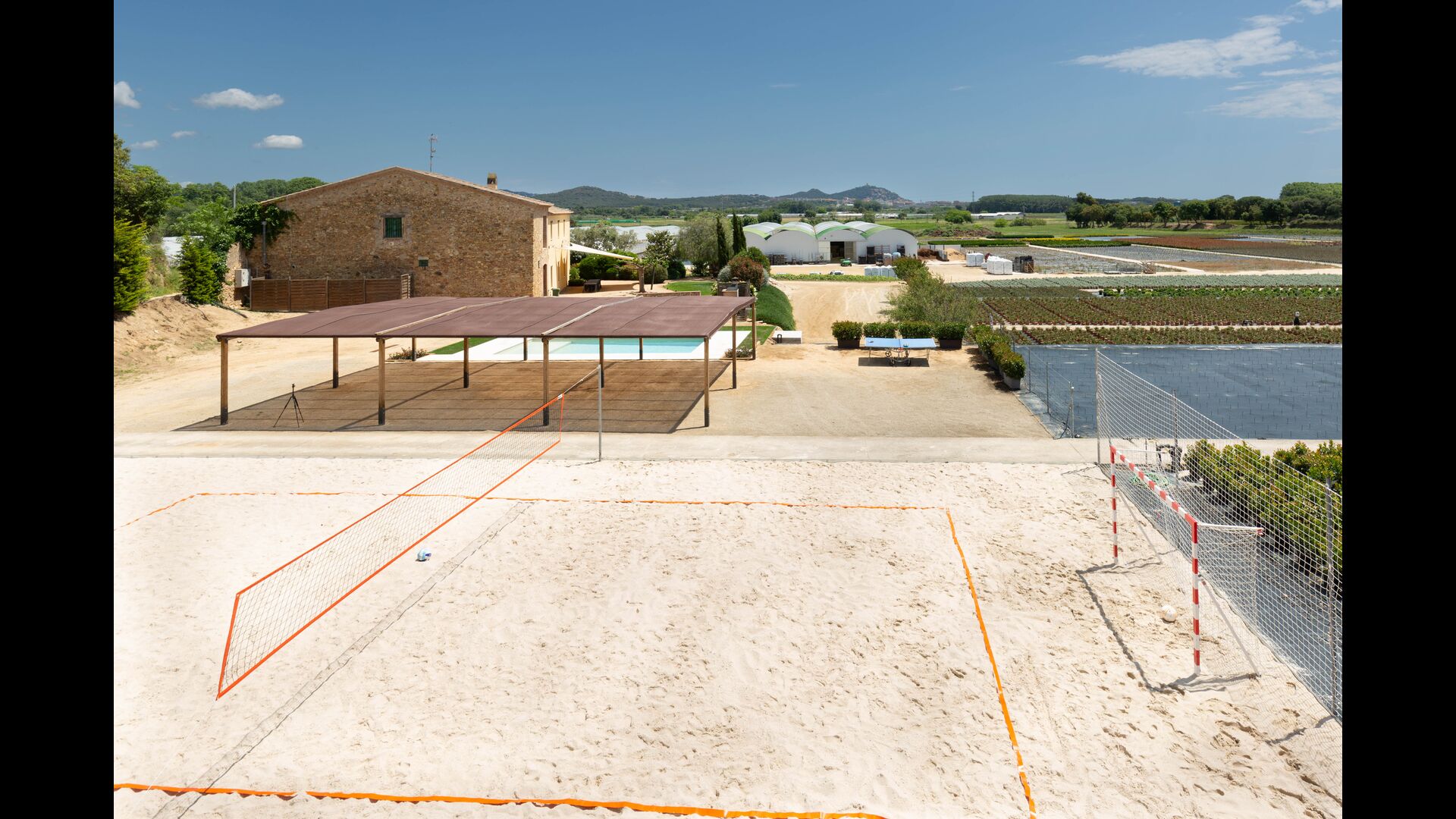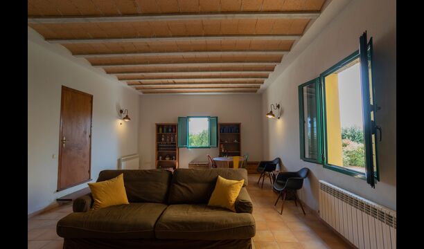Besides the fields with plants, the scenery from the house is abundant with many hills, filled with natural vegetation and containing many hiking trails/routes, making you feel peacefully isolated, as if you’re living in a small pocket of activity surrounded by the beautiful, remote Catalan countryside. But you are not as far away from everything as you may think; the beaches of Costa Brava are less than 7 km. away, and you have various big villages with a lot of services close by - the closest in long walking distance of 2,2 km.