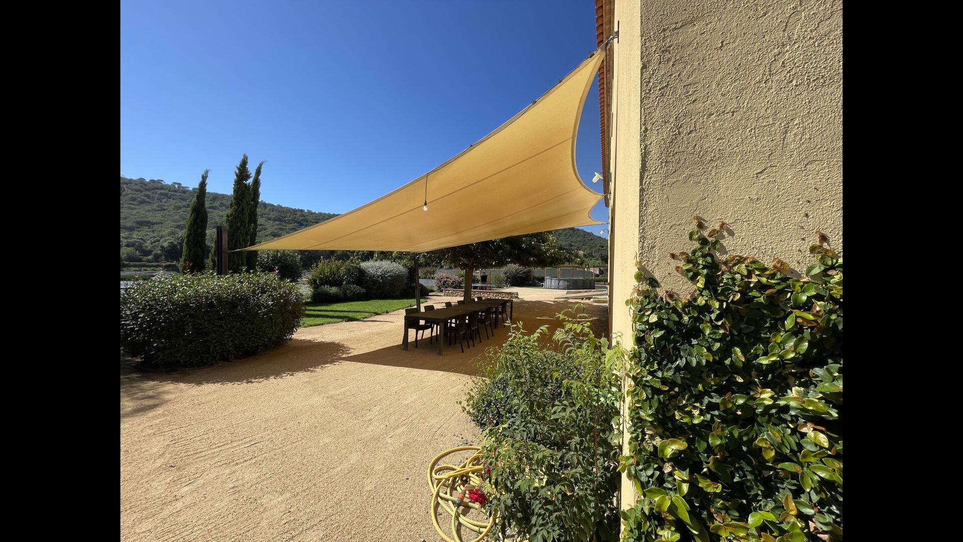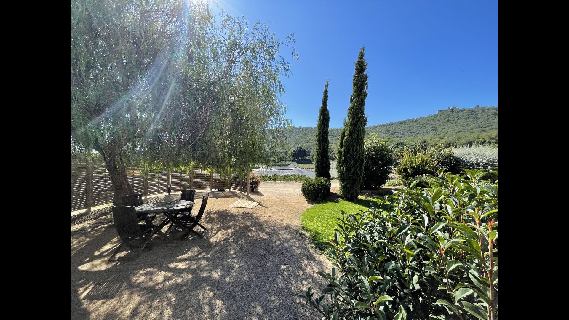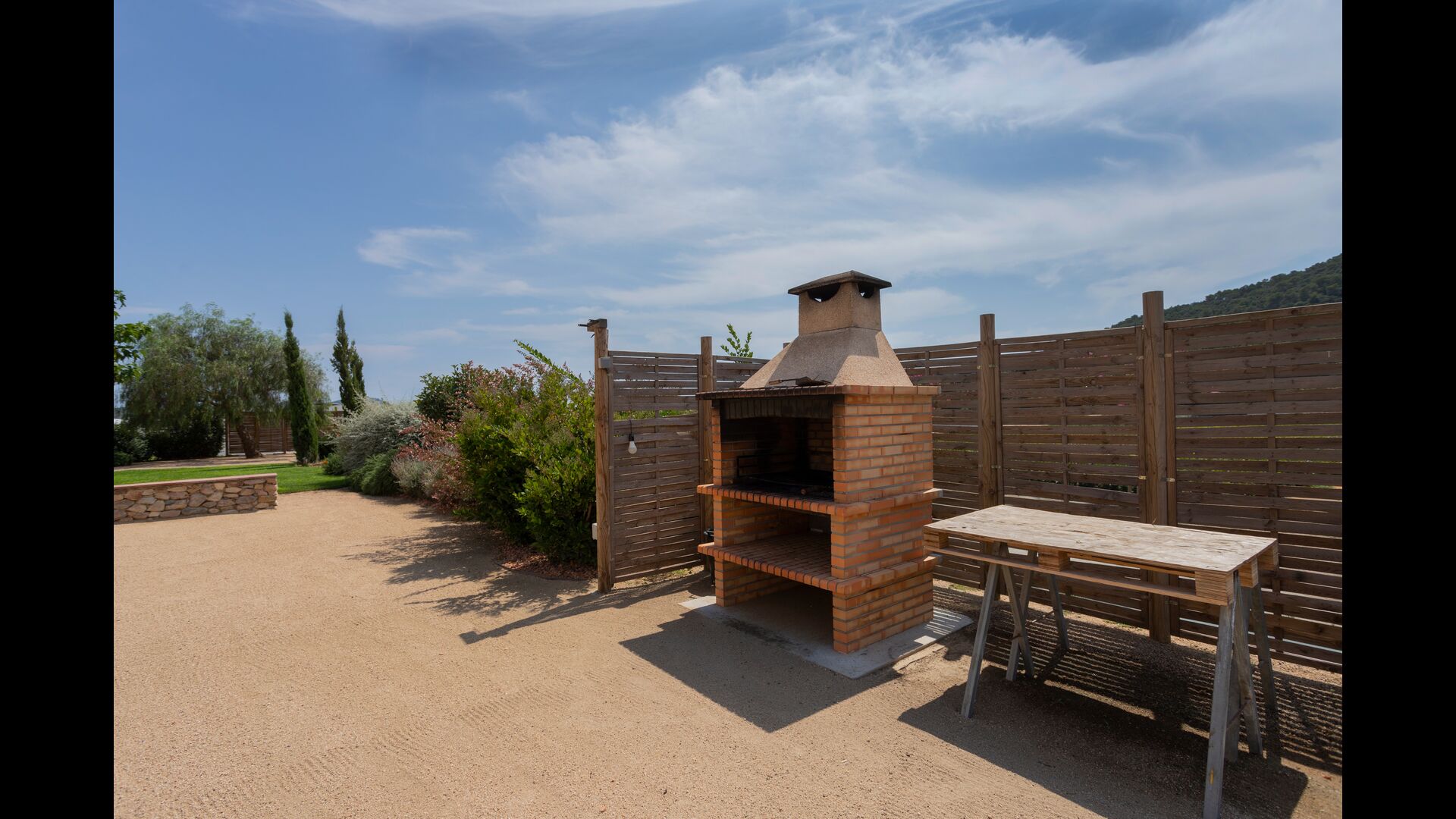 Besides the fields with plants, the scenery from the house is abundant with many hills, filled with natural vegetation and containing many hiking trails/routes, making you feel peacefully isolated, as if you’re living in a small pocket of activity surrounded by the beautiful, remote Catalan countryside. But you are not as far away from everything as you may think; the beaches of Costa Brava are less than 7 km. away, and you have various big villages with a lot of services close by - the closest in long walking distance of 2,2 km.