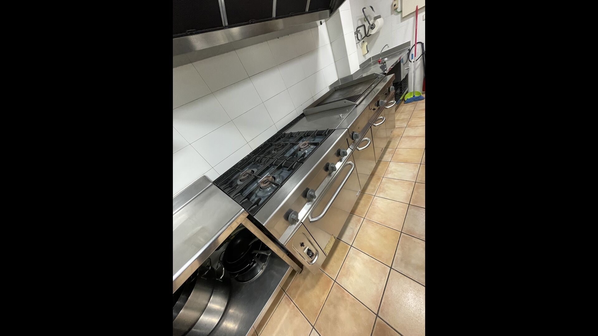 On the ground floor, you find the sitting room, the kitchen, and the game room. The kitchen is industrial, so it is very well equipped with an extra fridge, a dishwasher, a lot of cooking utensils and other useful facilities.