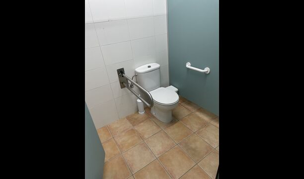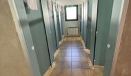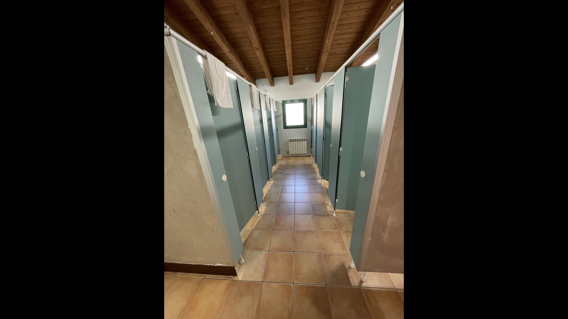You will also find one of the three bathrooms on the ground floor - its hostel layout still evident. There are 3 toilet stalls, 3 shower stalls, and 3 sinks.