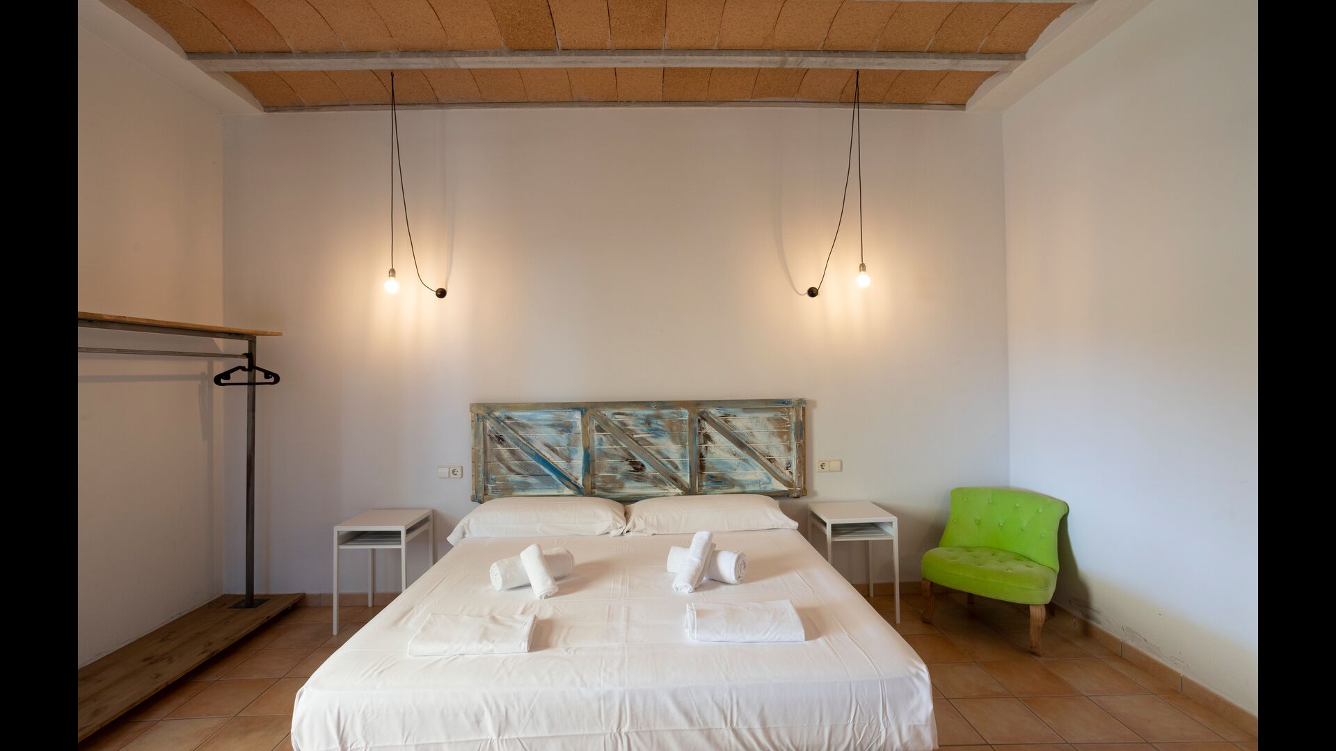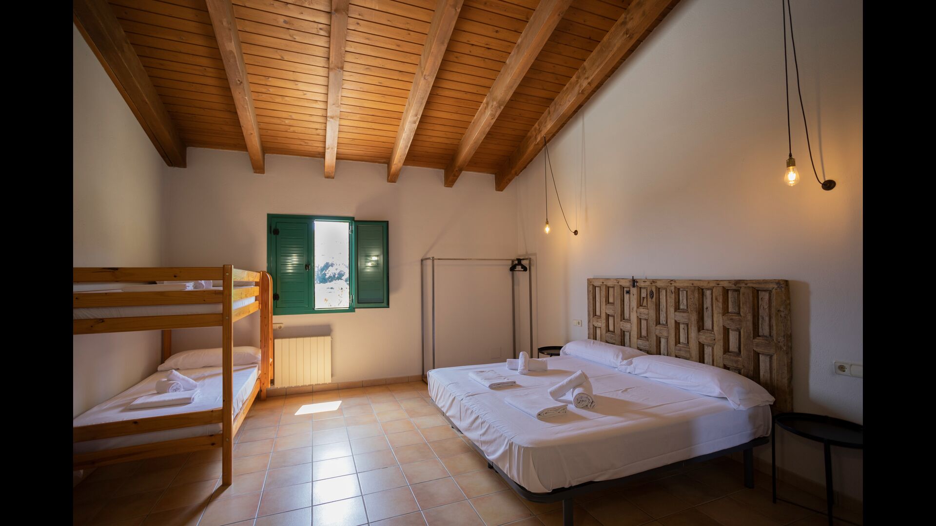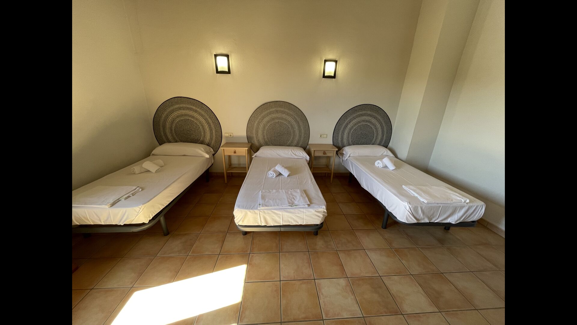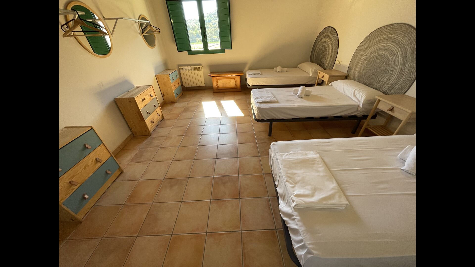 1 double bedroom with one additional single bed (ideal for parents with 1 small child); 2 rooms with 2 single beds and 1 bunk bed each; 1 room with 3 single beds, 1 room with 2 bunk beds, and 1 room with 3 bunk beds.