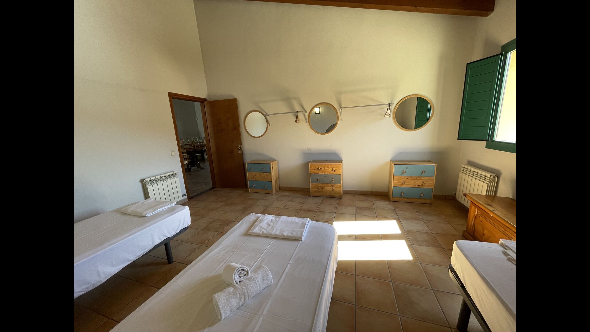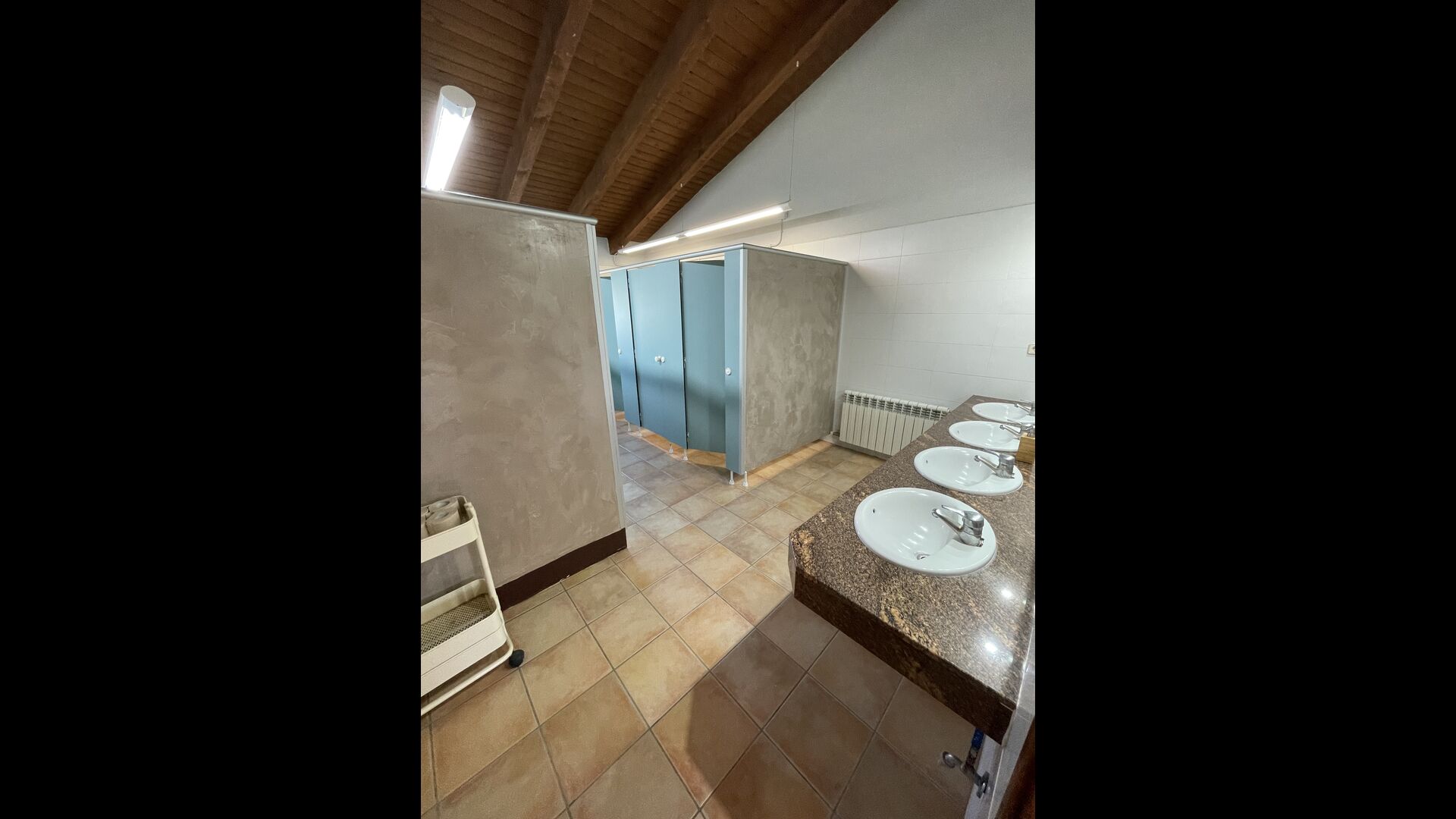 The bathrooms are still “camping style” bathrooms. There are 3 of them in total, two of them with 4 toilets stalls, 4 shower stalls and 4 sinks, and one bathroom with 3 instead of 4 of the aforementioned facilities, so you will have plenty of bathroom facilities if you find the layout agreeable. If you're looking for a spacious house to make into your home base from where you can easily explore and access the wonders of Catalonia, this house might just be for you!