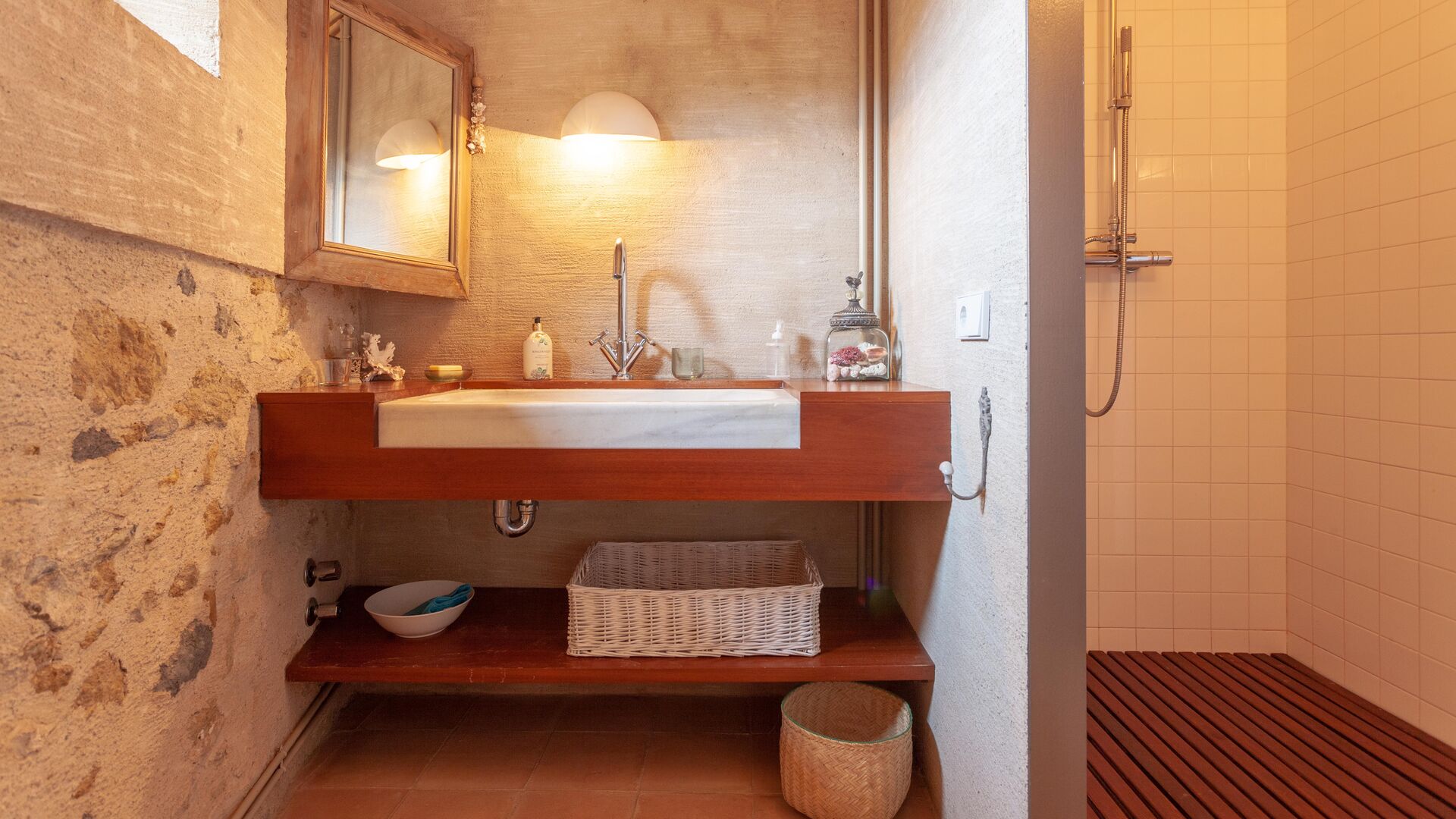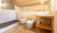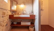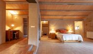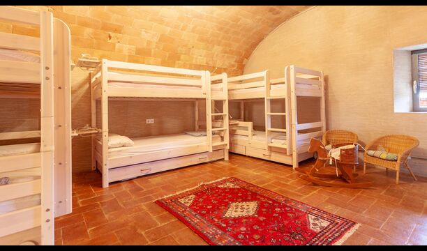 This floor also features five bedrooms: three double bedrooms, one twin bedroom and one bedroom with three bunk beds for up to six children, as well as two bathrooms with showers.