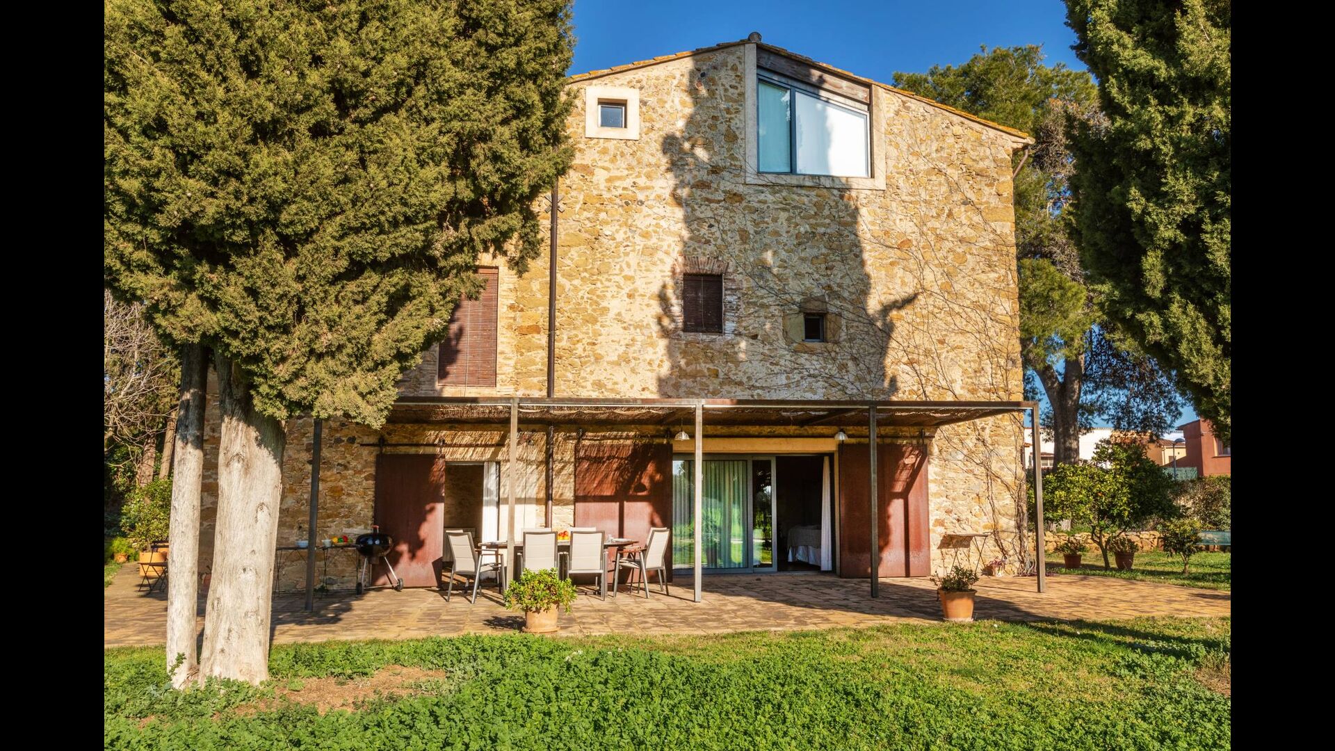 Outdoors, the private swimming pool and several porch and terrace areas provide ideal spaces for relaxing, dining and enjoying the open countryside views and the peaceful atmosphere of the Empordà.