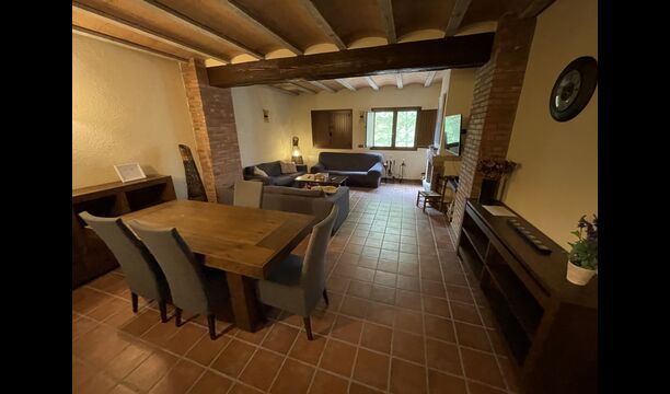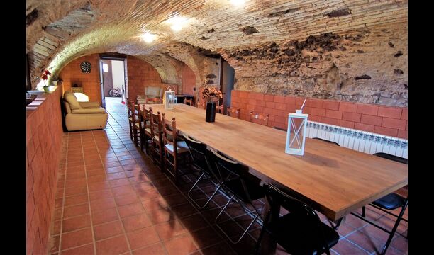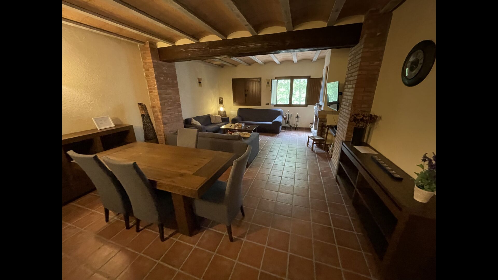 From the other side of the house, where there is also a lawn, there is entrance to Masia de Serrén I, where there is a larger dining room, a large and well-equipped kitchen and a living room. There is also a toilet. A beautiful staircase leads up to the first floor, where the house's other 7 bedrooms and 3 bathrooms are located.