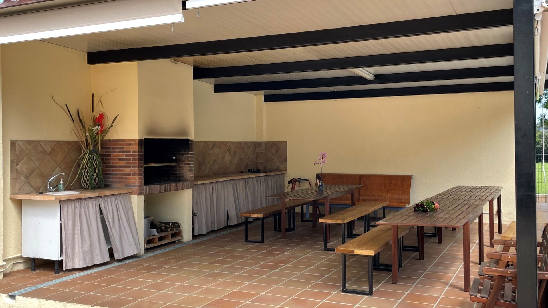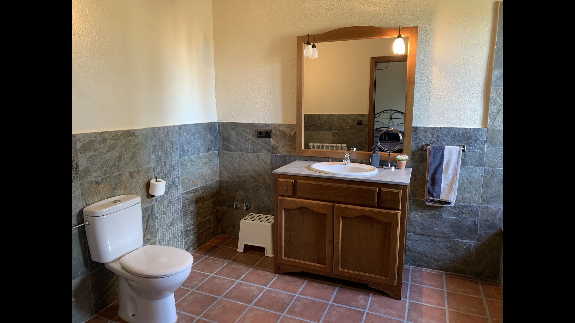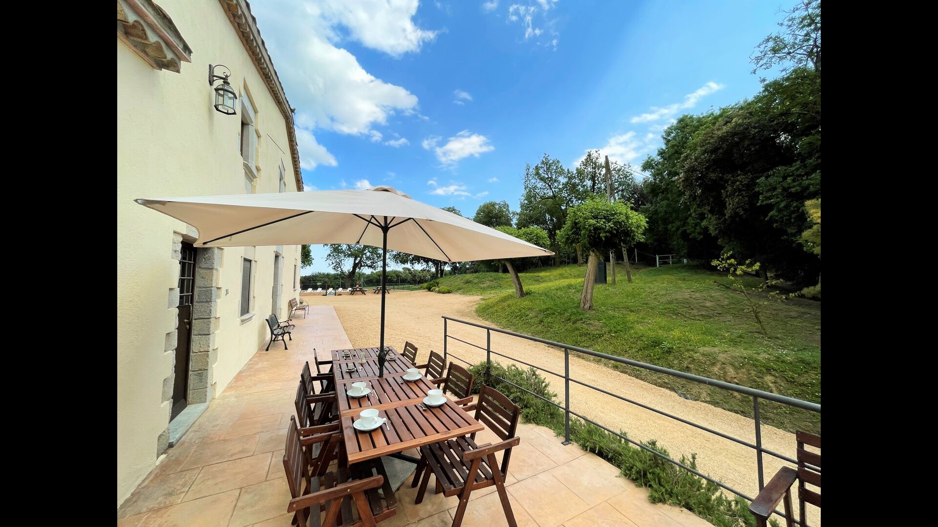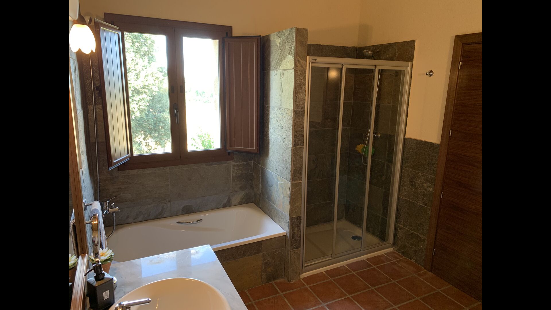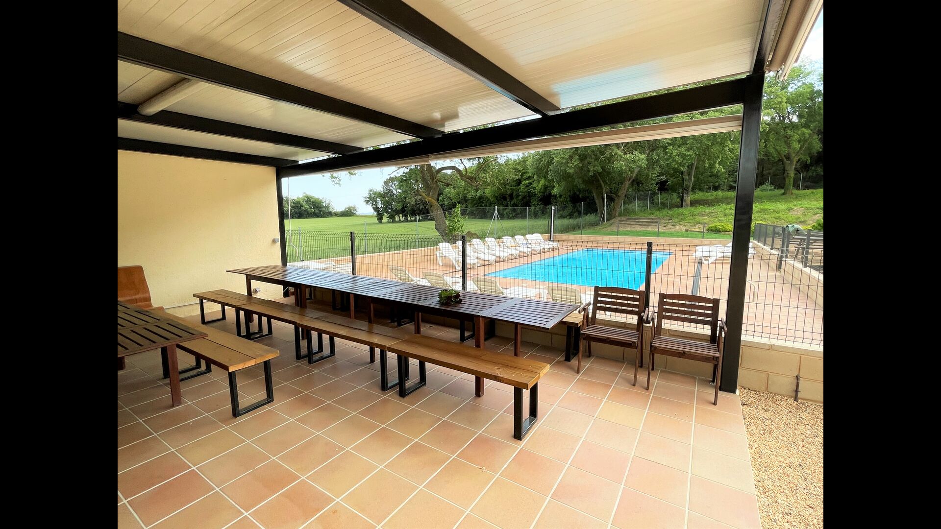 The outdoor areas are perfect for relaxing. The large swimming pool has plenty of sunbeds and at the end of the pool there is a covered terrace with barbecue and views of the swimming pool. There is a further terrace area at the exit from the house, so you can also eat a little closer to the kitchen if you wish, or you can enjoy the morning sun with a cup of coffee while there is life in the house.