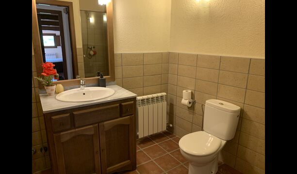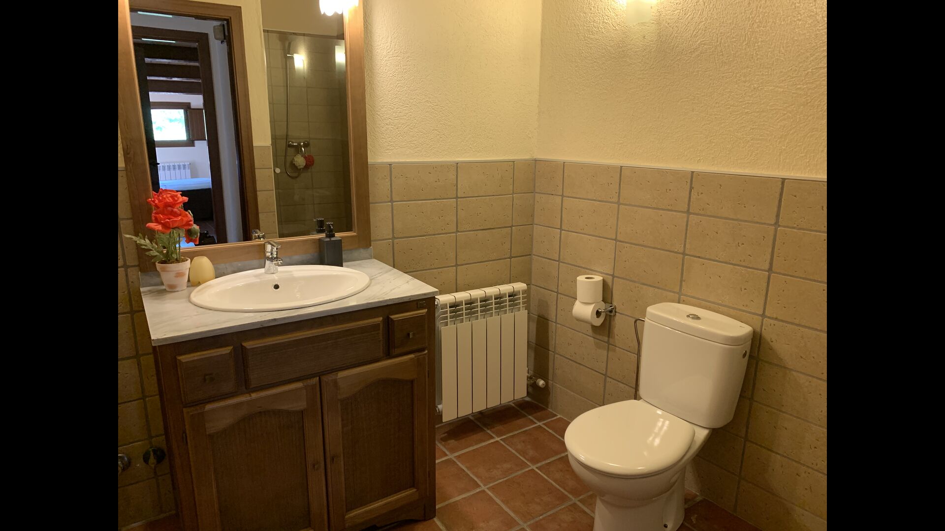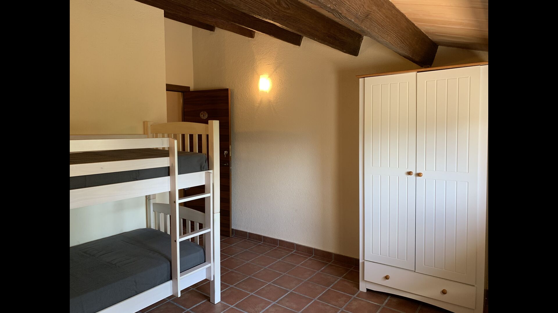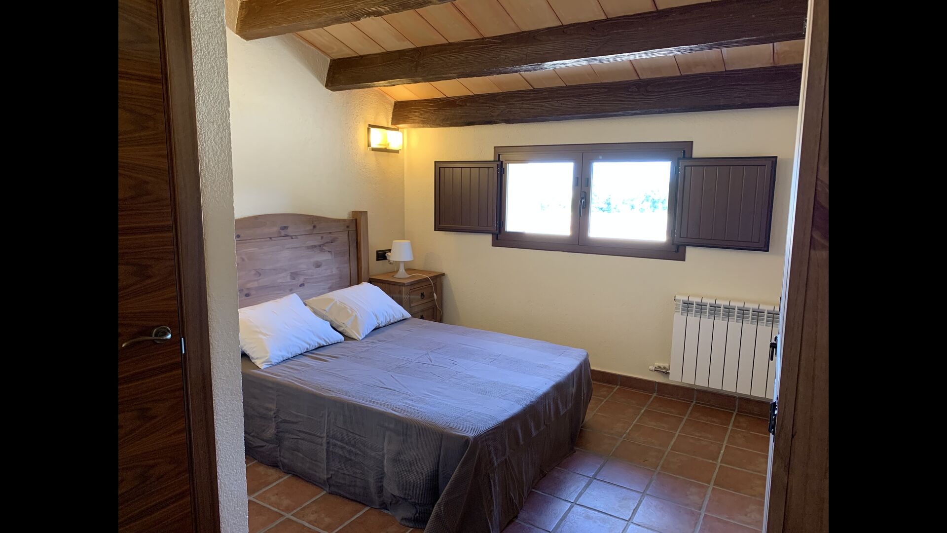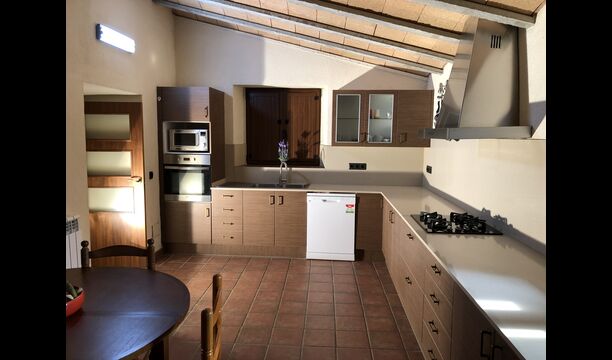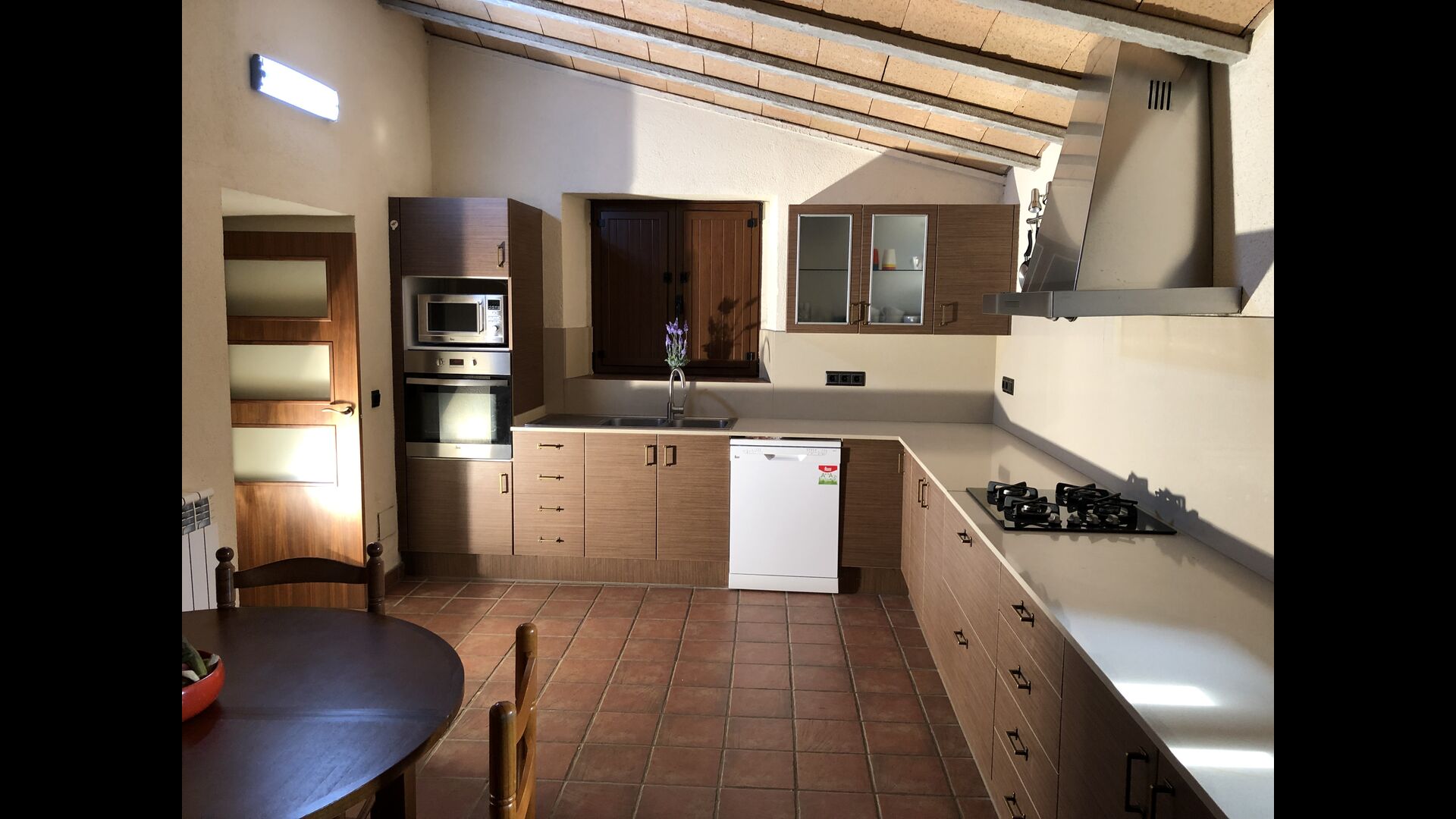 This kitchen is located in the part of the house called Masia de Serrén II, which is a completely independent unit with its own entrance. The kitchen is well equipped with refrigerator, freezer, microwave, nespresso and more, and with direct access to a dining room and as mentioned exit to the terrace in front of the house. On the other side of the entrance hall are two double rooms which share a bathroom.