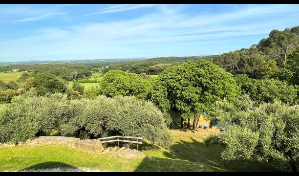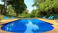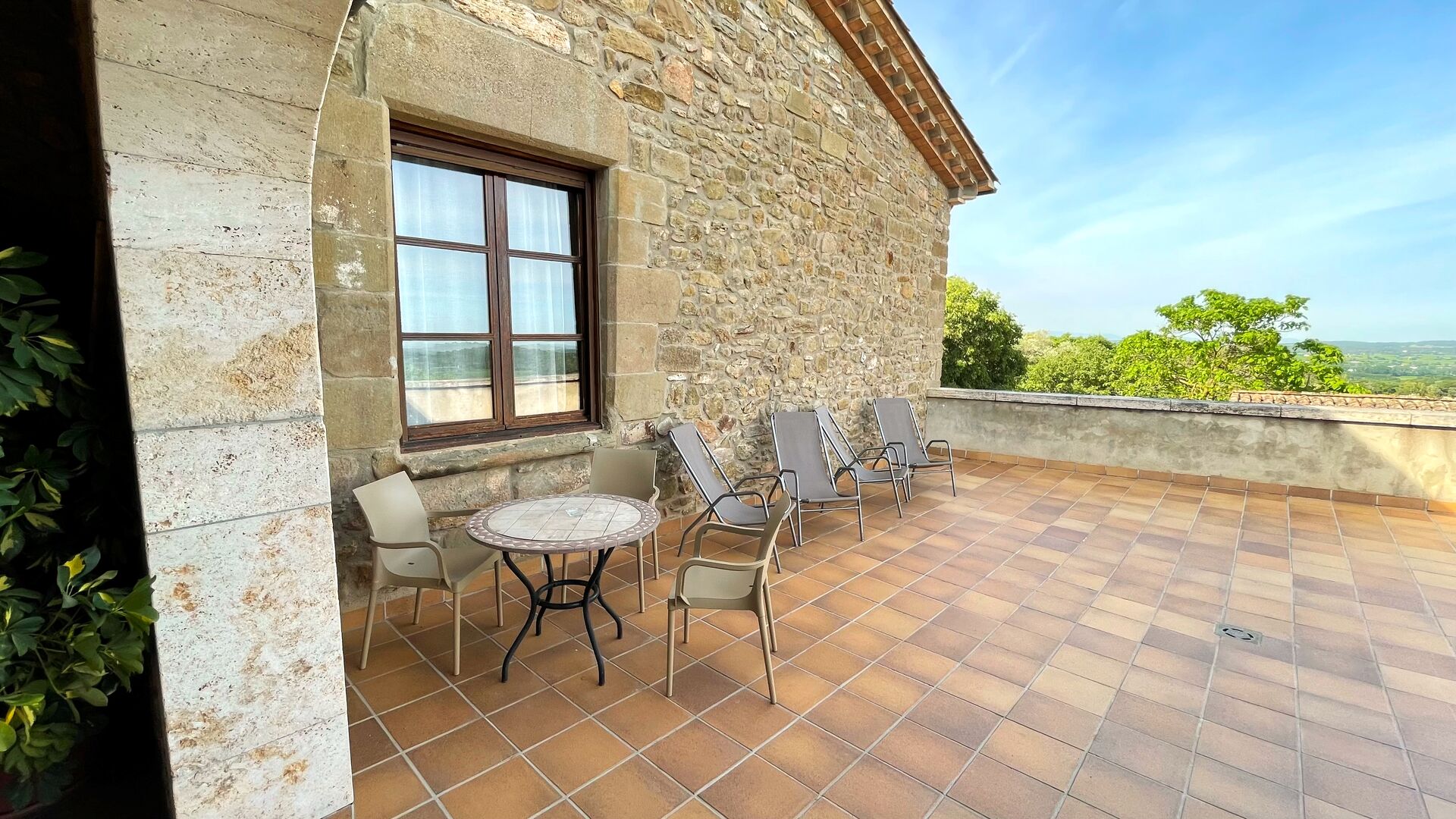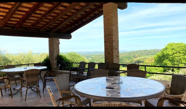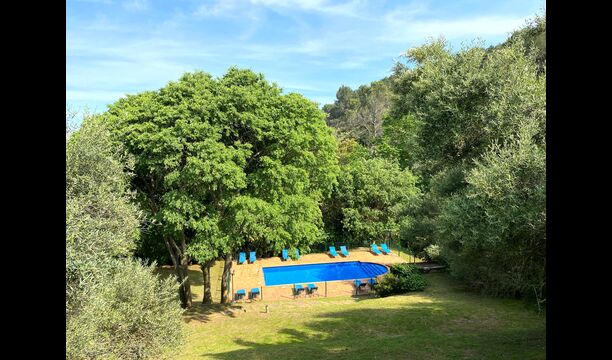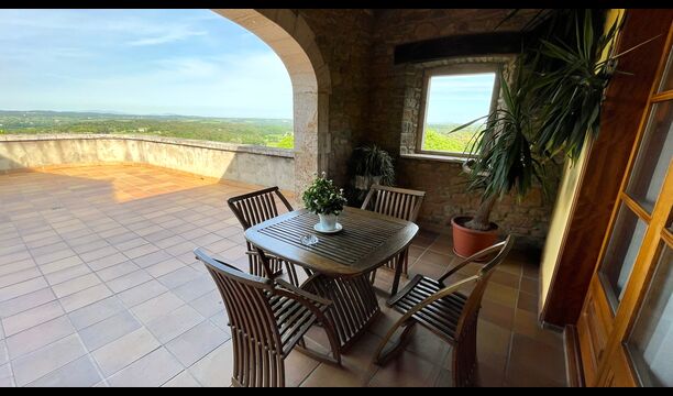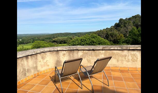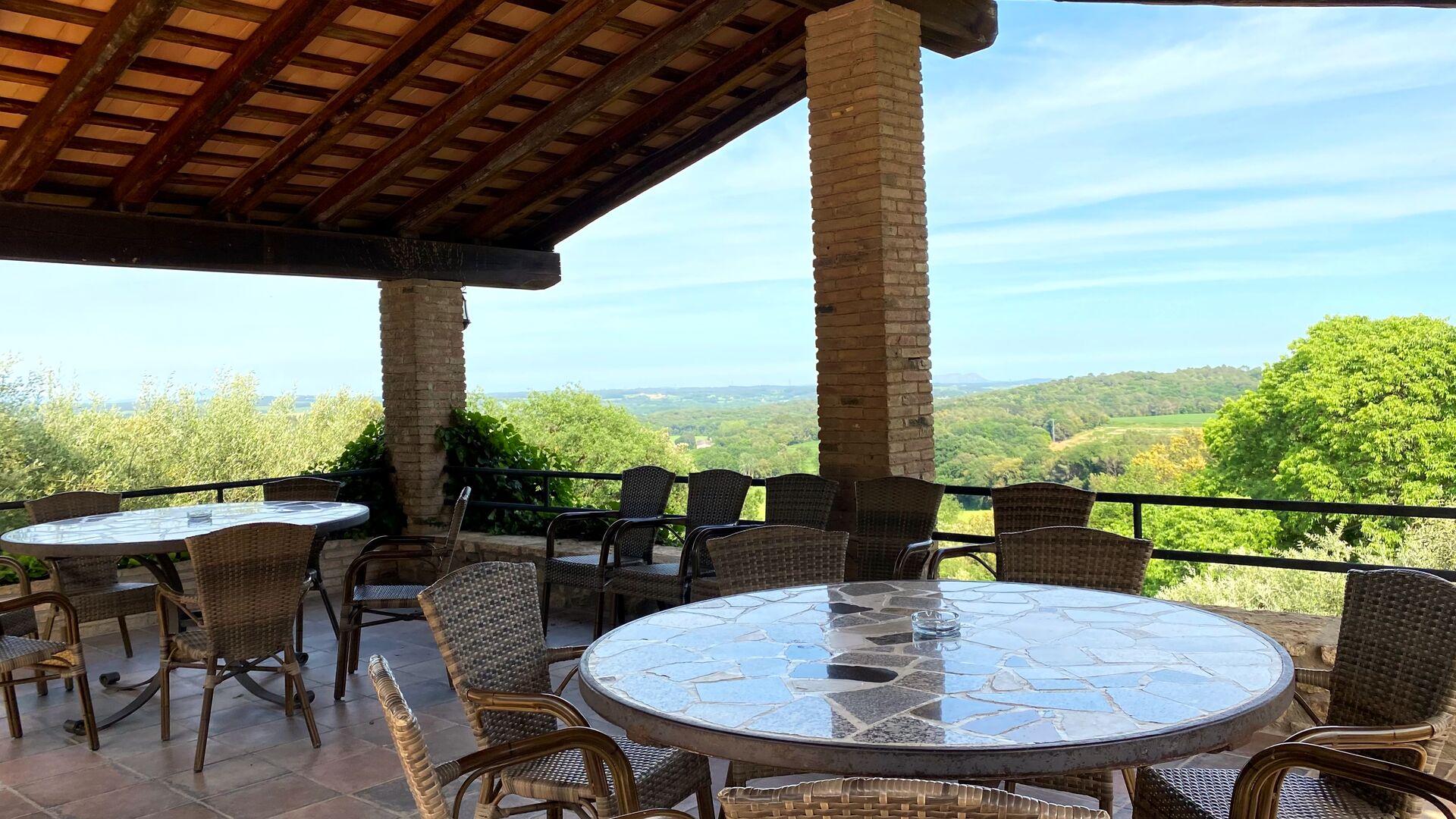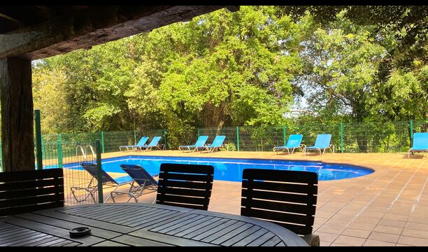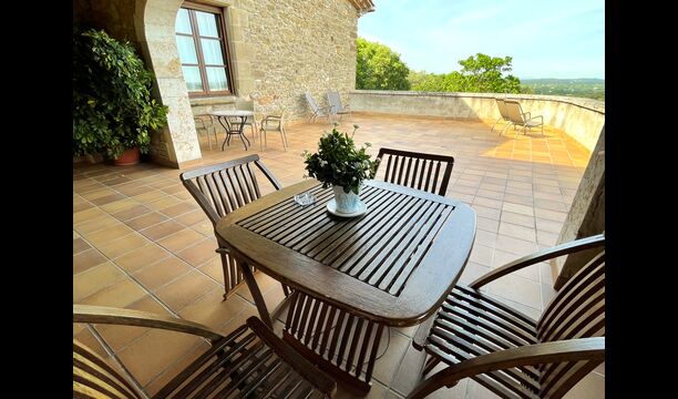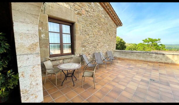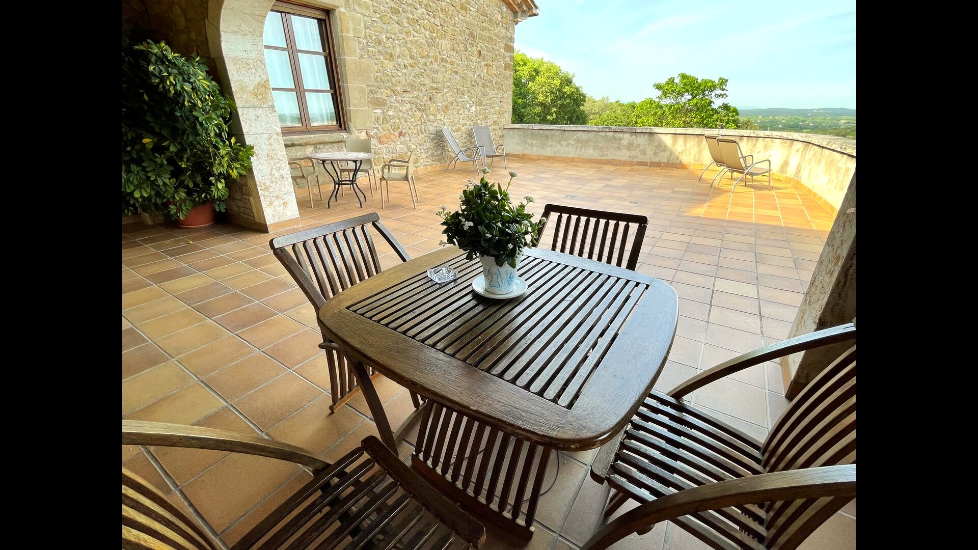 Upon arrival at the Masia Tapirs large courtyard, with views over an incredibly beautiful, open landscape, you sense immediately that the house is very unique. Here is a 10.000m2 beautiful garden, a private olive grove, a 1000m2 beautifully decorated house, four terraces and a fantastic pool area with a divine view. By the swimming pool are also toilets and changing rooms. Masia Tapir serves an an incredible base for a large holiday group, on an unforgettable holiday in Catalonia!