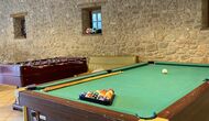 Downstairs, there is an activity room with table tennis, billiards and table football and a depot room with 3 washing machines and 3 cots and a high chair, which can be set up if necessary.