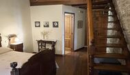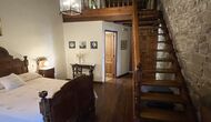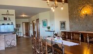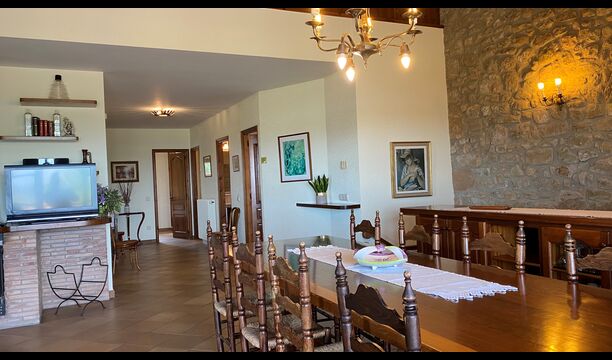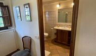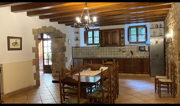 From the other side of the house, also on first floor , you enter the unit “Exida”. The first room is a big common room with a double dining table, a toilet. There is a dining area and another fully equipped kitchen with dishwasher, oven, hot plates, microwave etc. As decoration, the old oven build in the wall to make bread has been preserved.